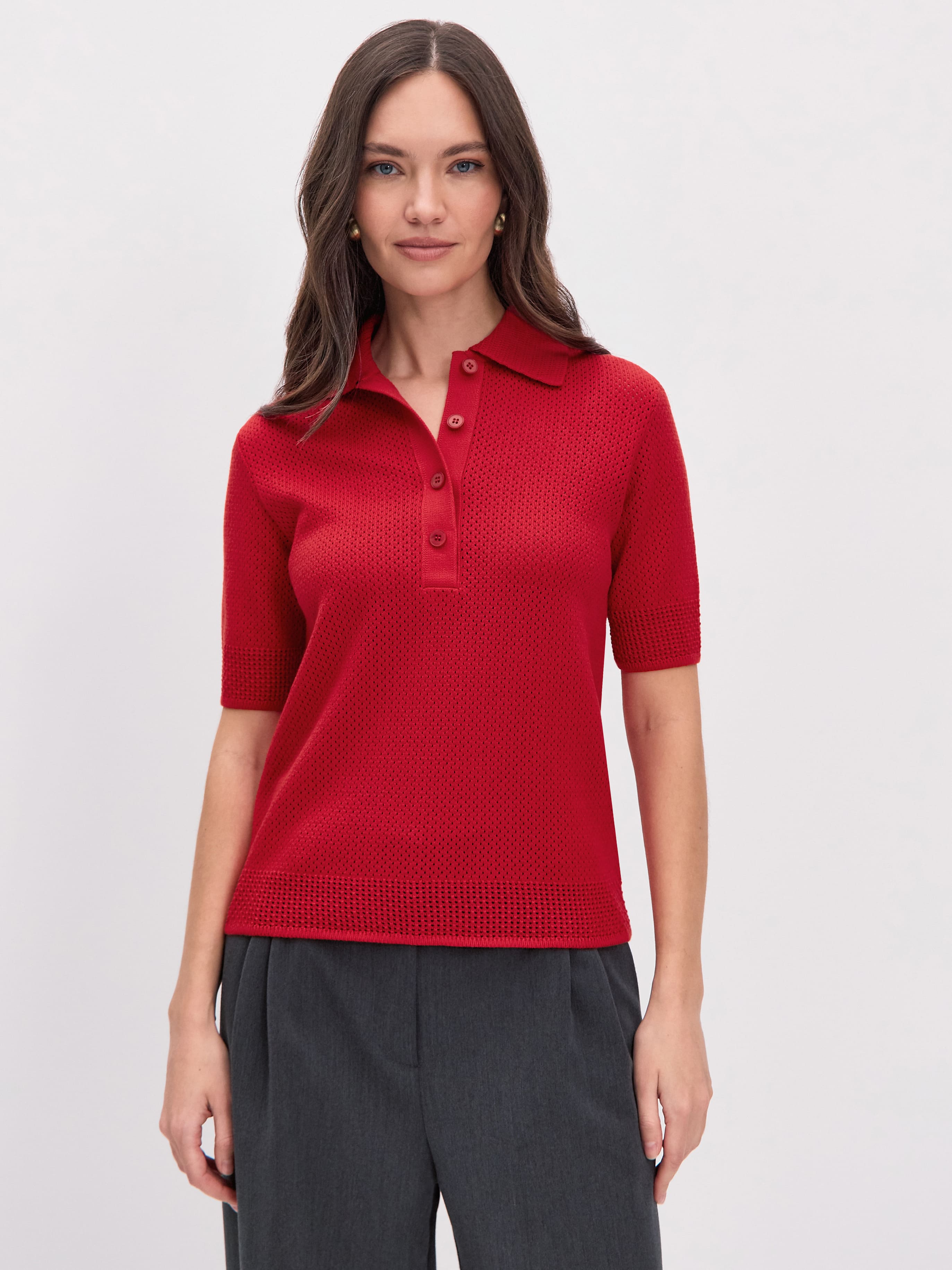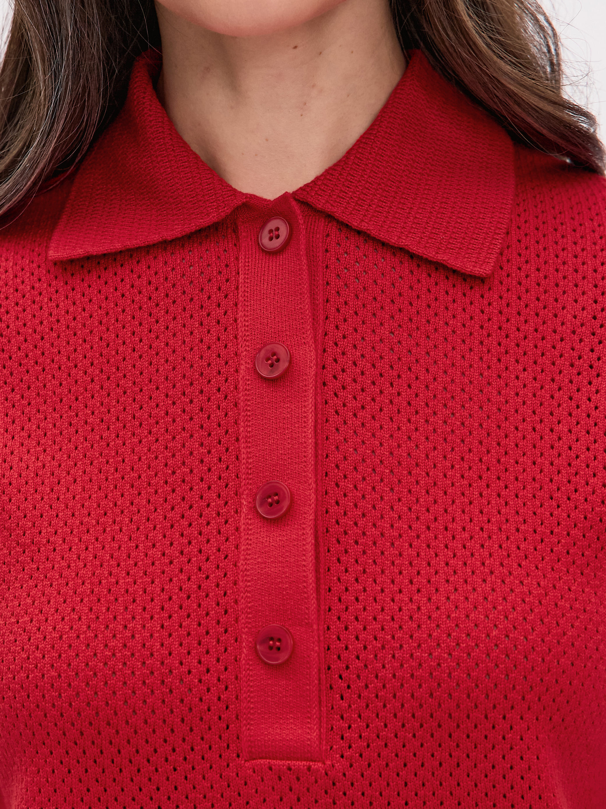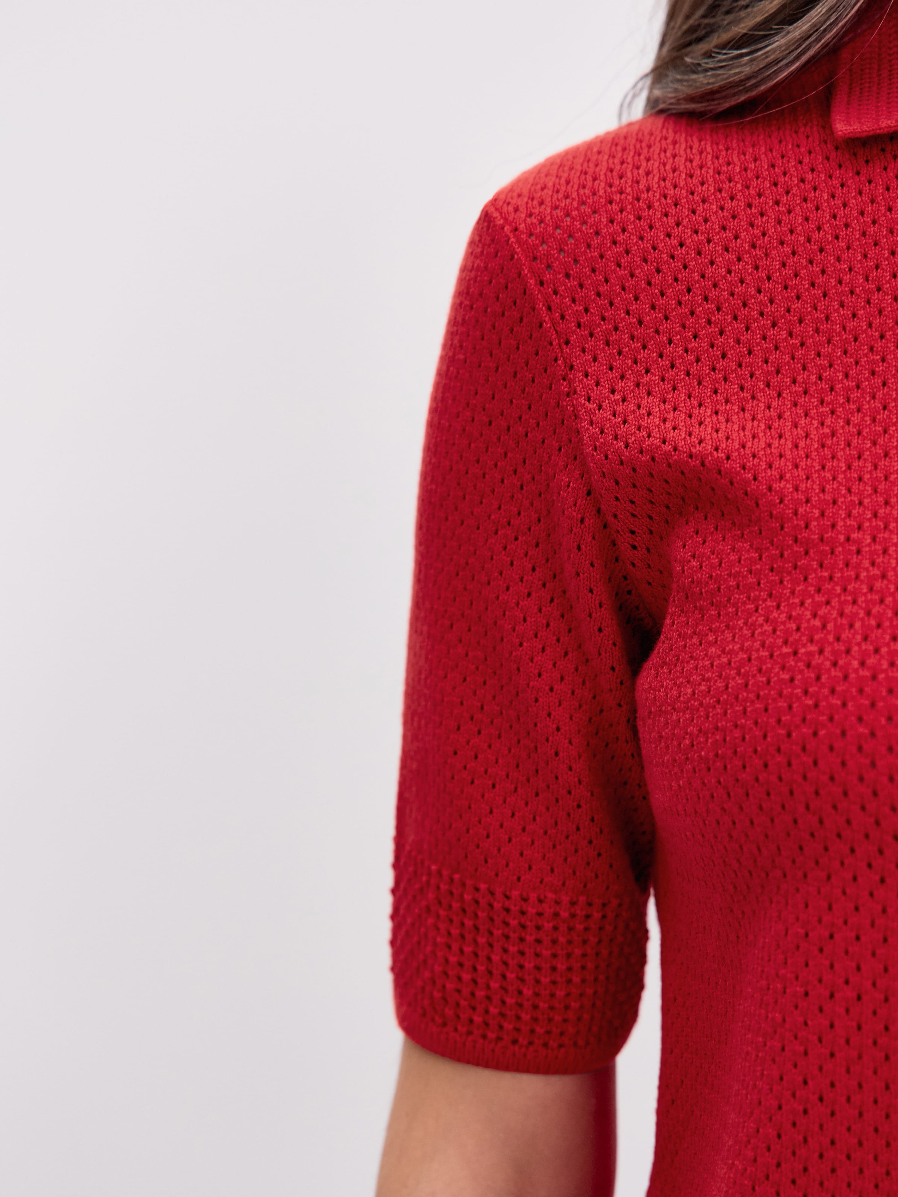 Нежное вязаное поло с хлопком и невесомой вискозой. Изюминка модели – аккуратная перфорация. Каждая трикотажная ячейка работает как проводник воздушных капсул, бережно охлаждающих тело. Уютный джемпер для летнего отпуска и морских прогулок. Мягкий трикотаж защитит от активного солнца, бриза и перегрева. Рифмуется с любым низом из круизной коллекции 99colorspace – вискозными юбками или пластичными хлопковыми палаццо.