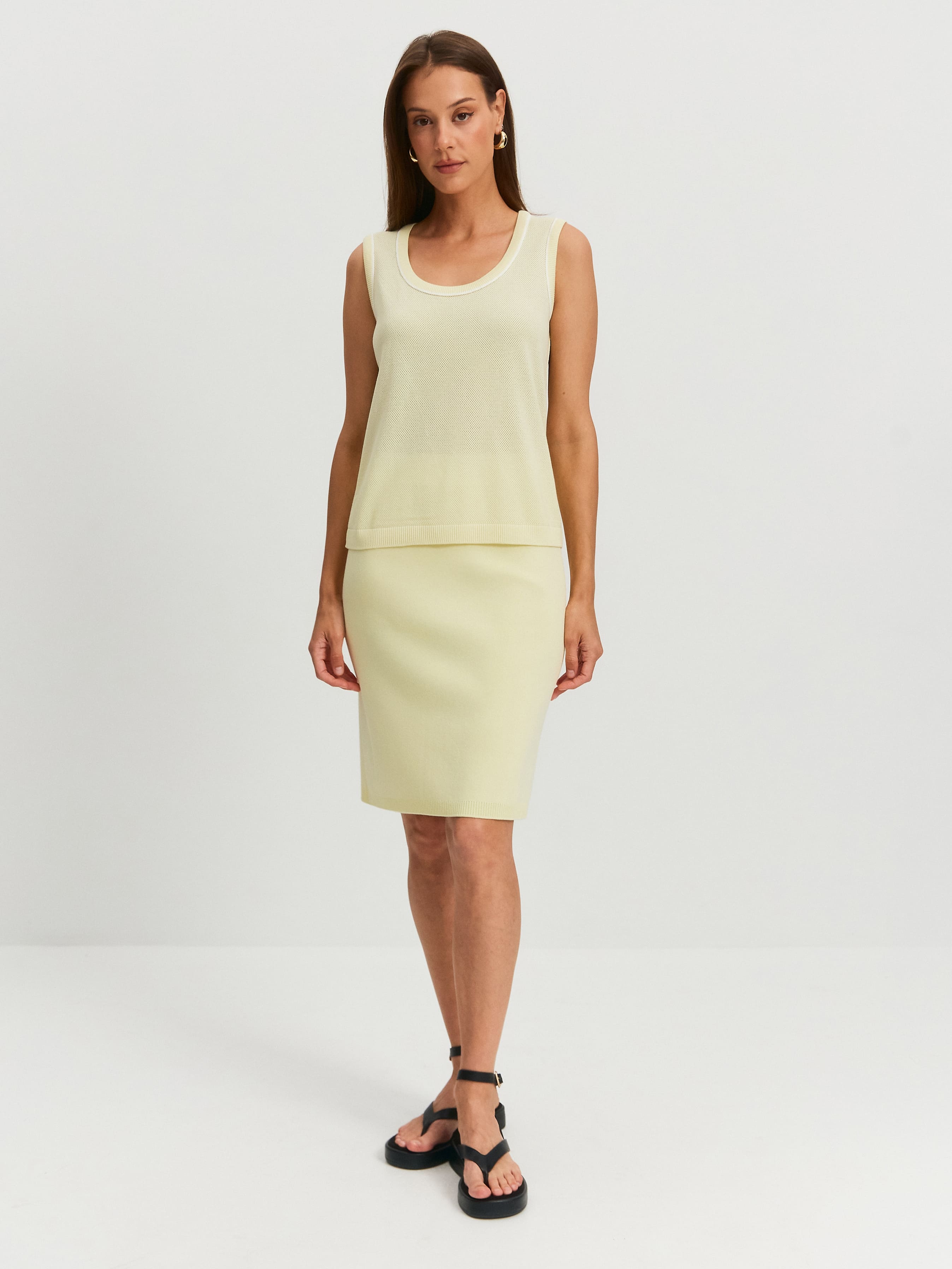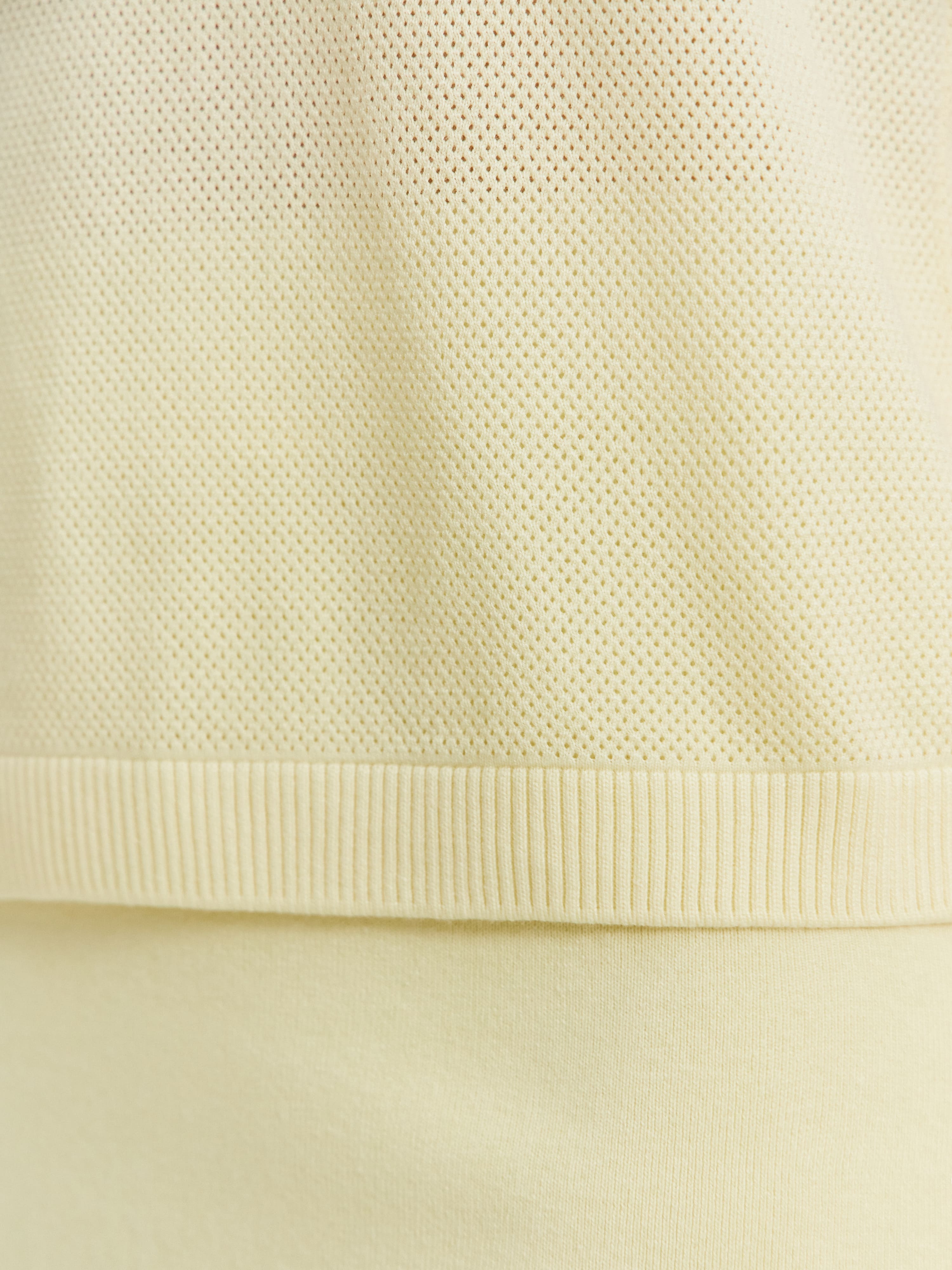 Авторская модель джемпера, образы с которой мгновенно считываются как уникальные. Главное средство выразительности здесь – объемный шнуровидный узор. Сквозь верхнюю часть рисунка отчетливо просматривается сетчатое переплетение основы. Модель свободного кроя, прекрасно вписывается в любые летние стилизации за счет натурального состава. Трикотаж полноценно дышит и охлаждает разгоряченную кожу, благодаря сочетанию тонкого хлопка и вискозы.
