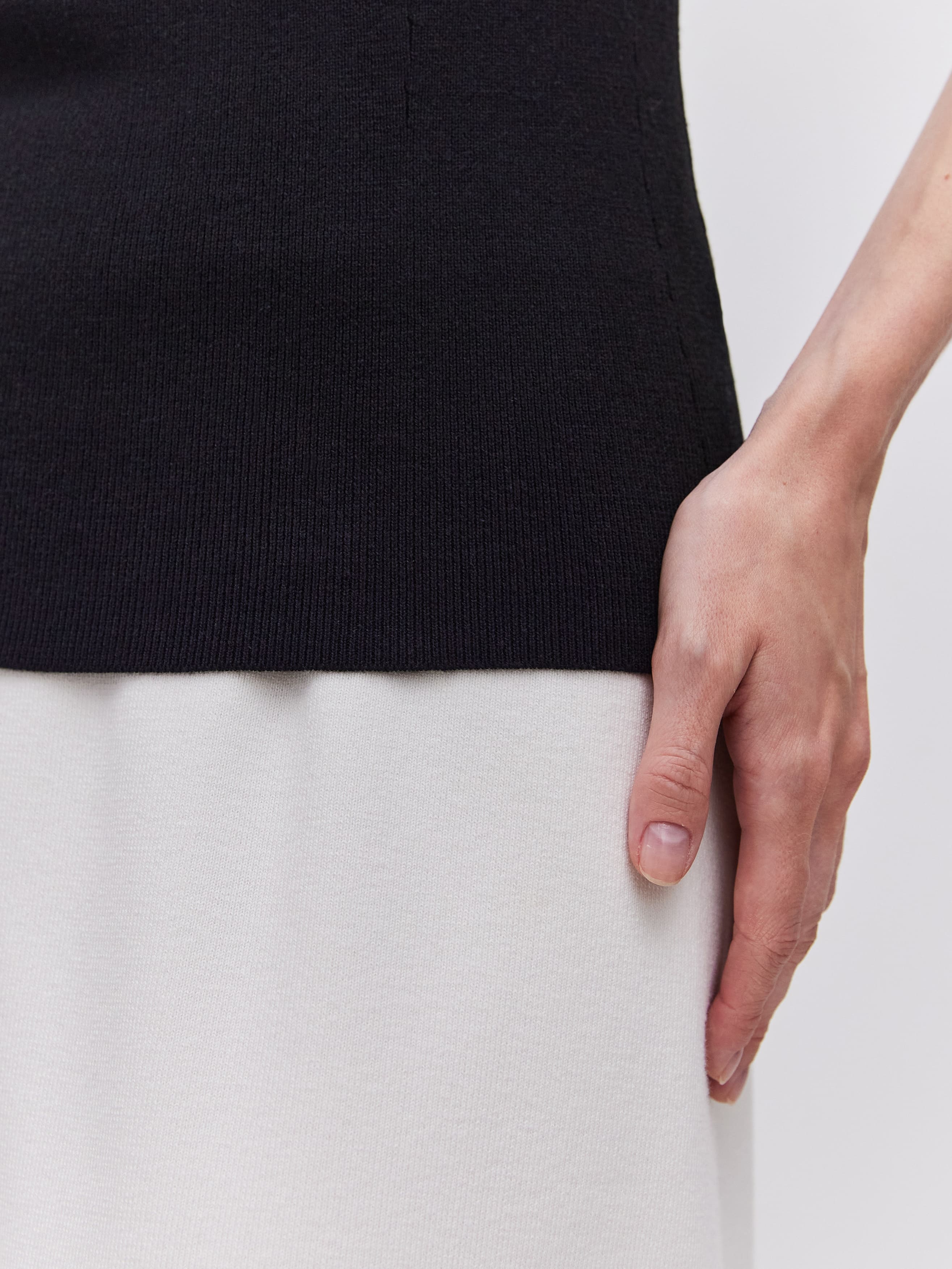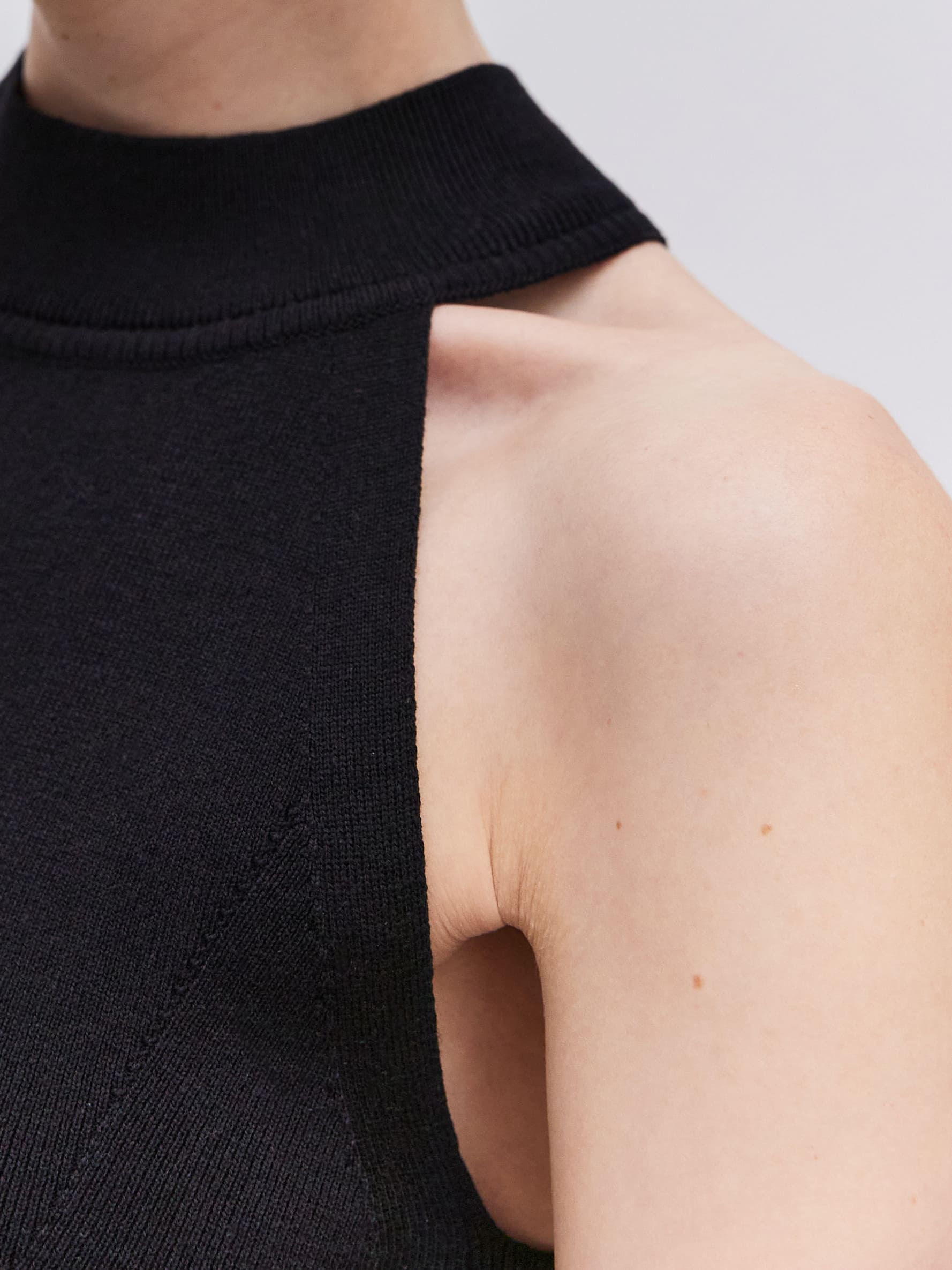 Чтобы вам не пришлось искать правильный нижний слой под пиджаки и жакеты MONONAME, мы создали его. Фантастически облегающий топ с американской проймой и немного дерзким характером! Модель сексуально открывает плечи и акцентирует внимание на плавной линии рук. Приятно-шелковистым топик делает сочетание уютного хлопка и чувственной вискозы. Телу под таким трикотажем всегда хватает воздуха – он легко проходит сквозь натуральные волокна и так же свободно выходит обратно. Носить в тандеме с нашими укороченными жакетами весной и без них – летом!