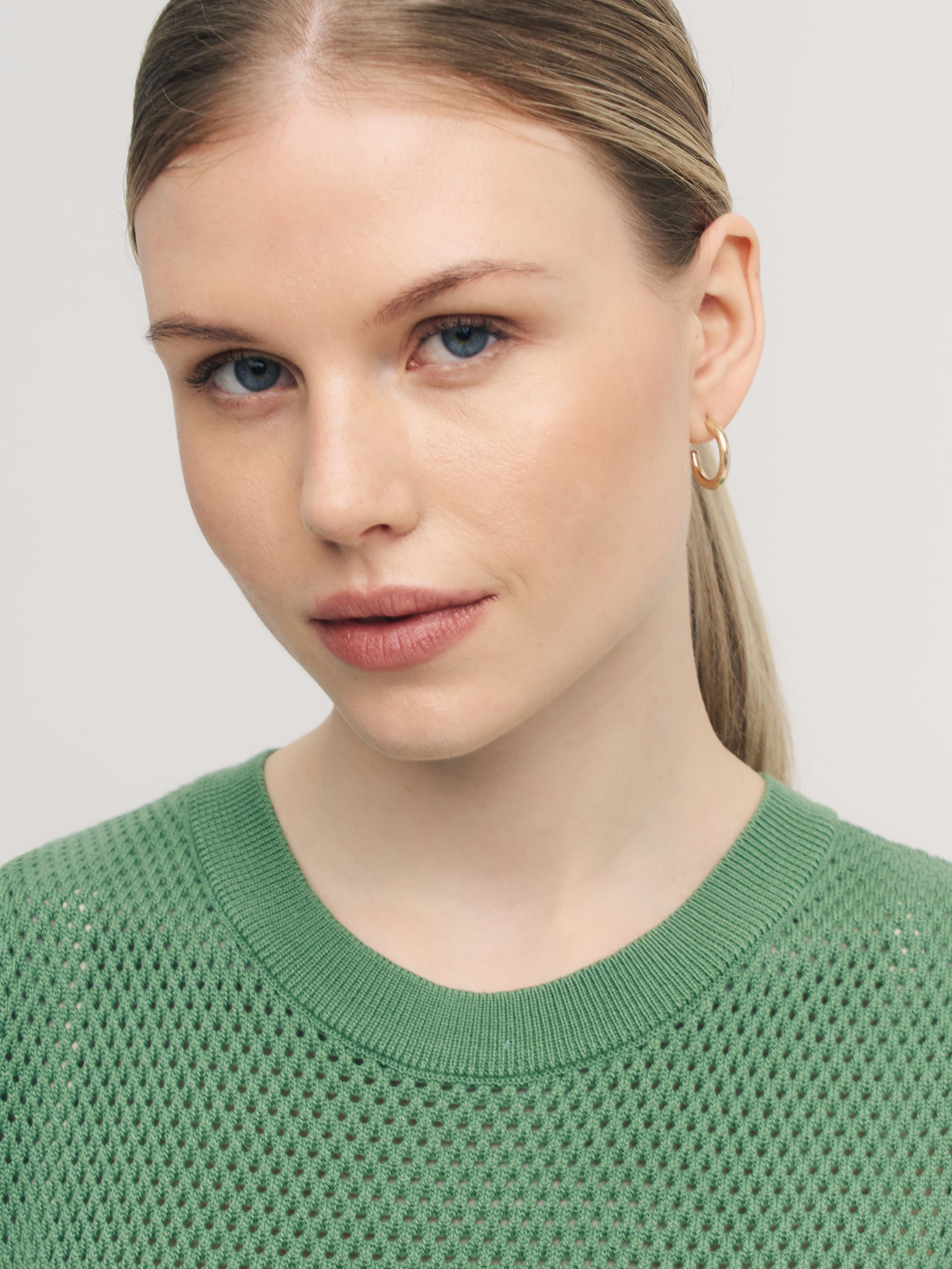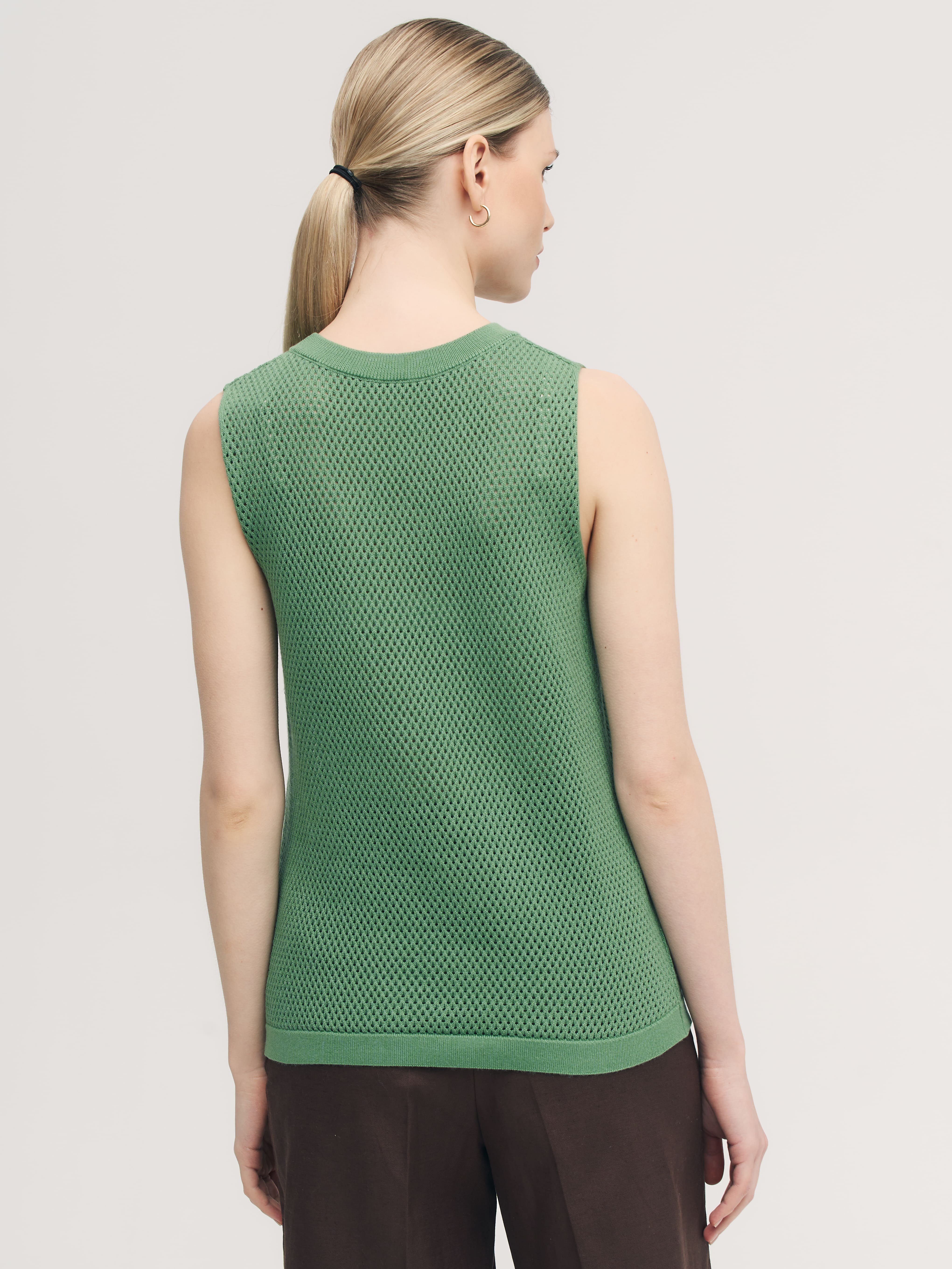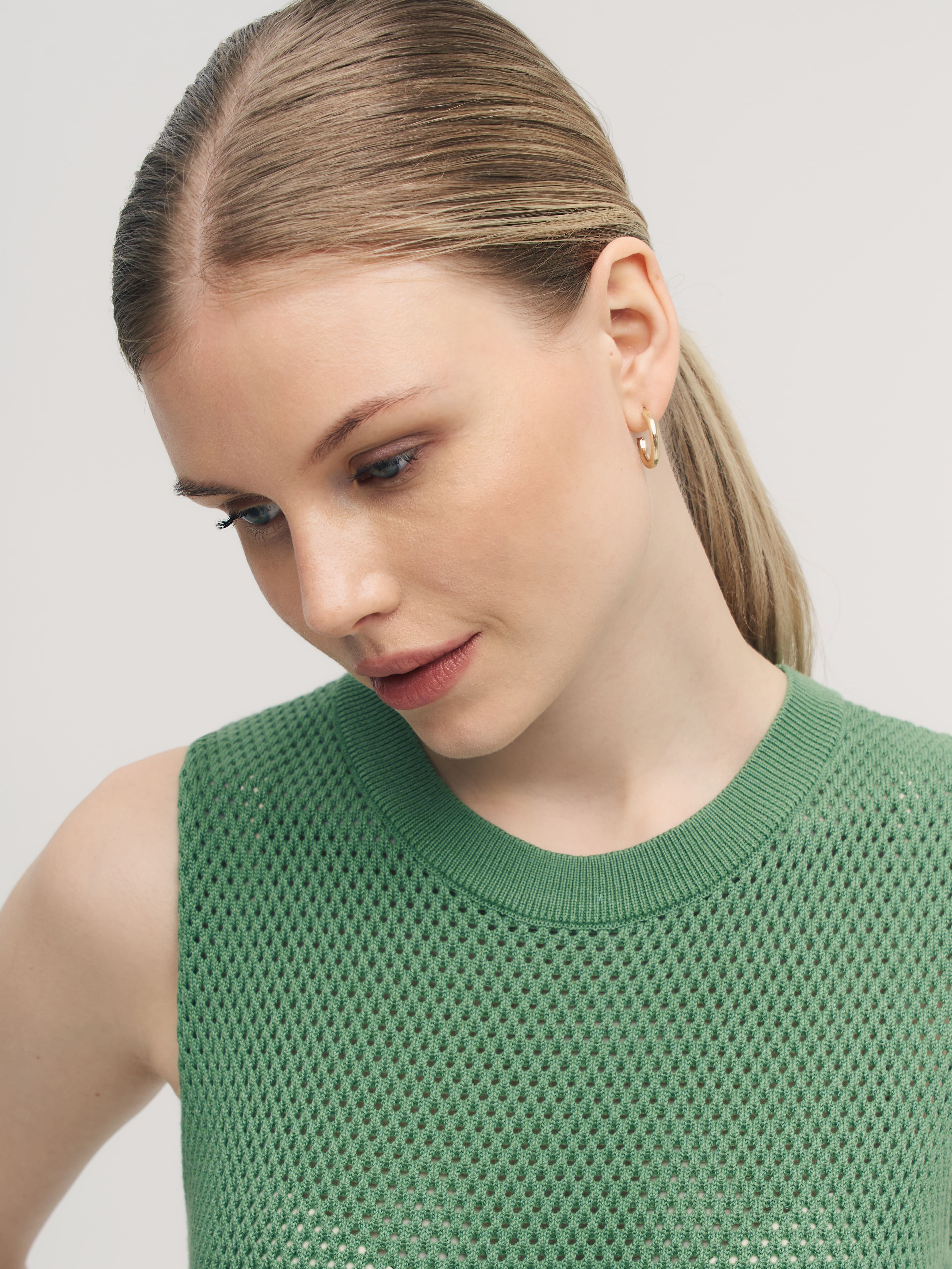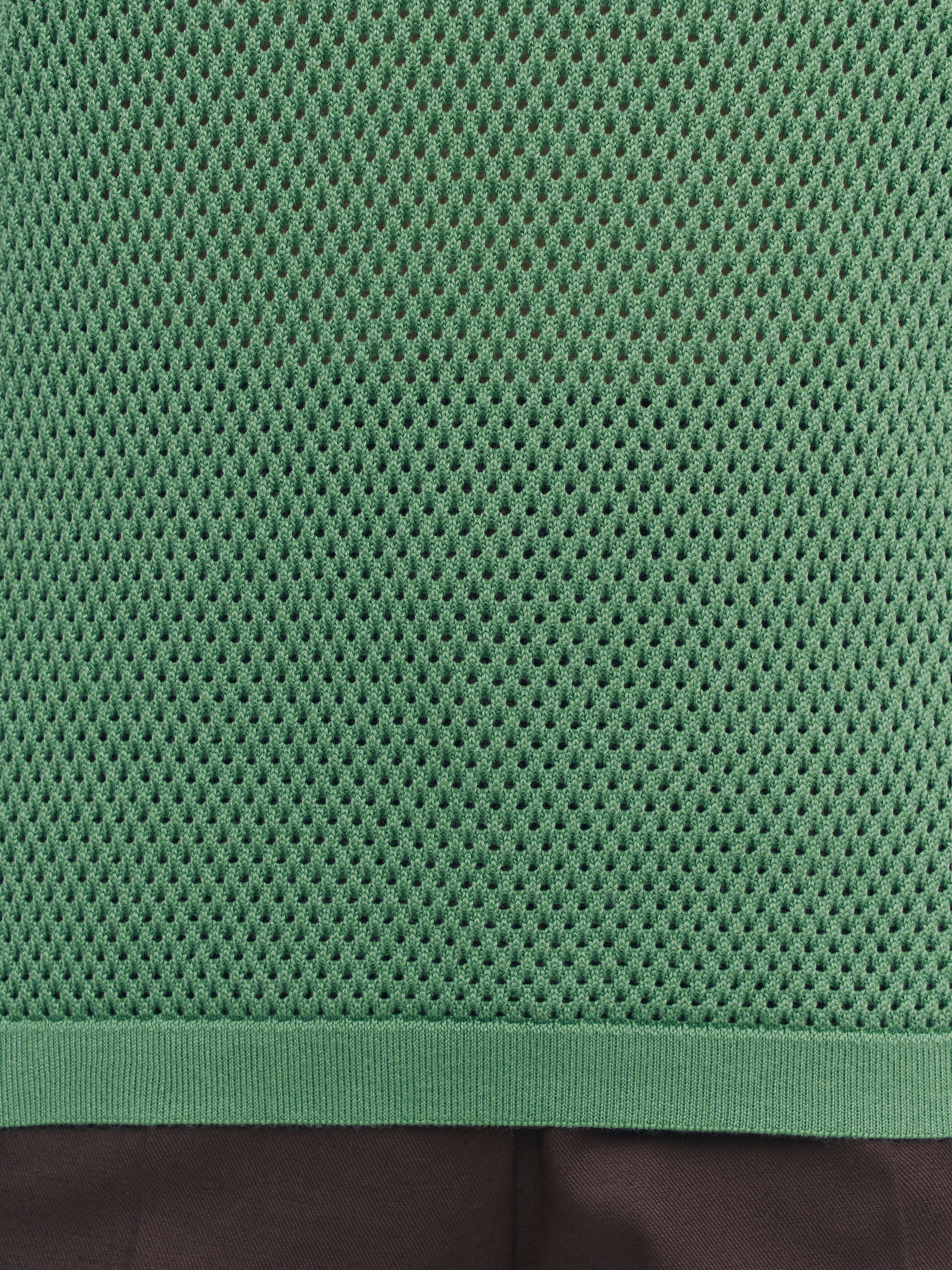 Закрытый хлопковый топ для поклонниц воздушных сеточек, ажурных техник и сдержанной перфорации. Прекрасен сам по себе и не нуждается в декоративных элементах. Эталонная однородность и симметрия узора. Смотреть на сотни аккуратных ячеек, объединенных в нежнейший трикотаж, можно бесконечно. Базовая составляющая летней капсулы, которая мягко подчеркнет загар и будет дышать каждой петелькой. Оптимальный нижний слой под весенние кардиганы 99colorspace.