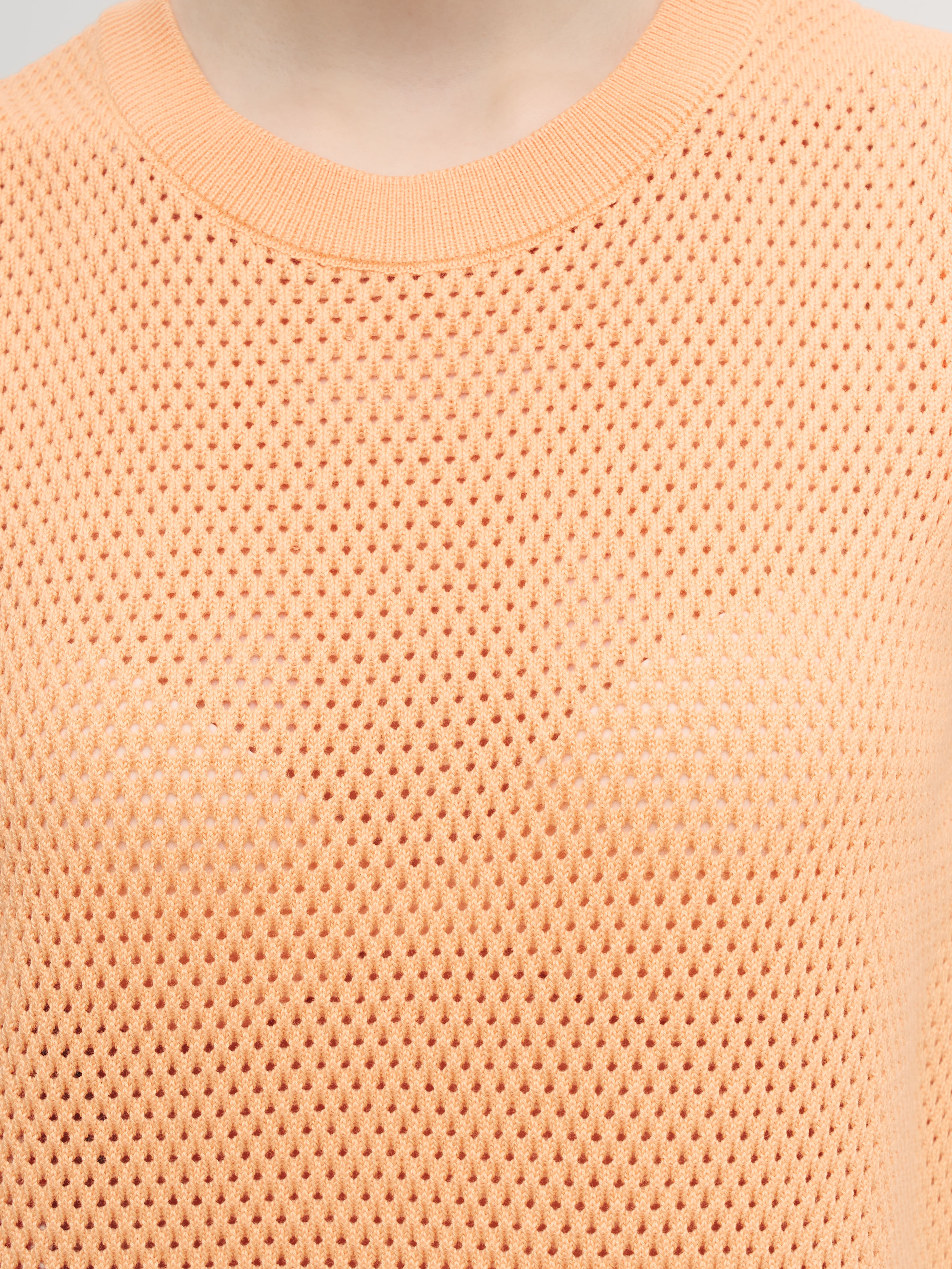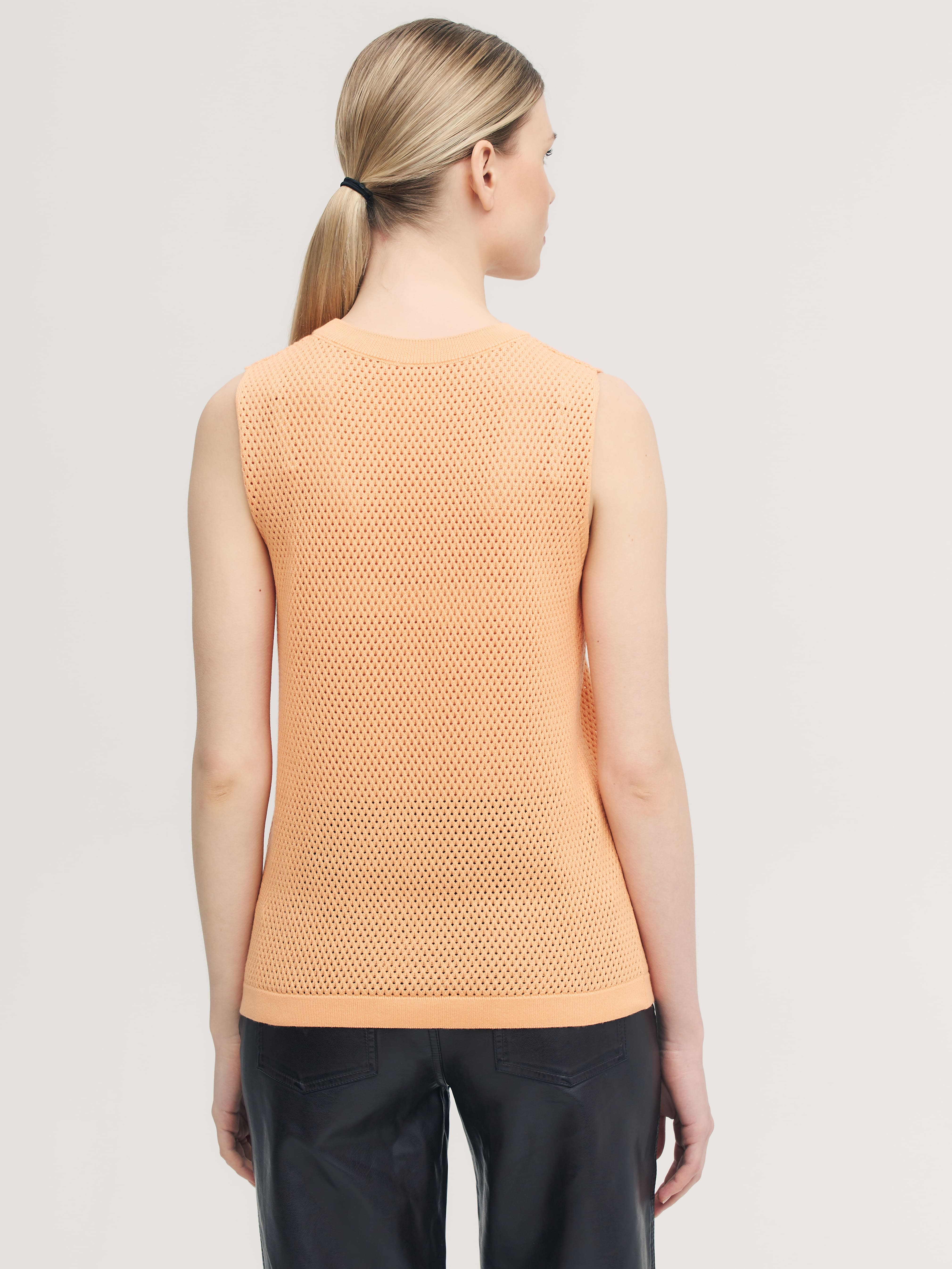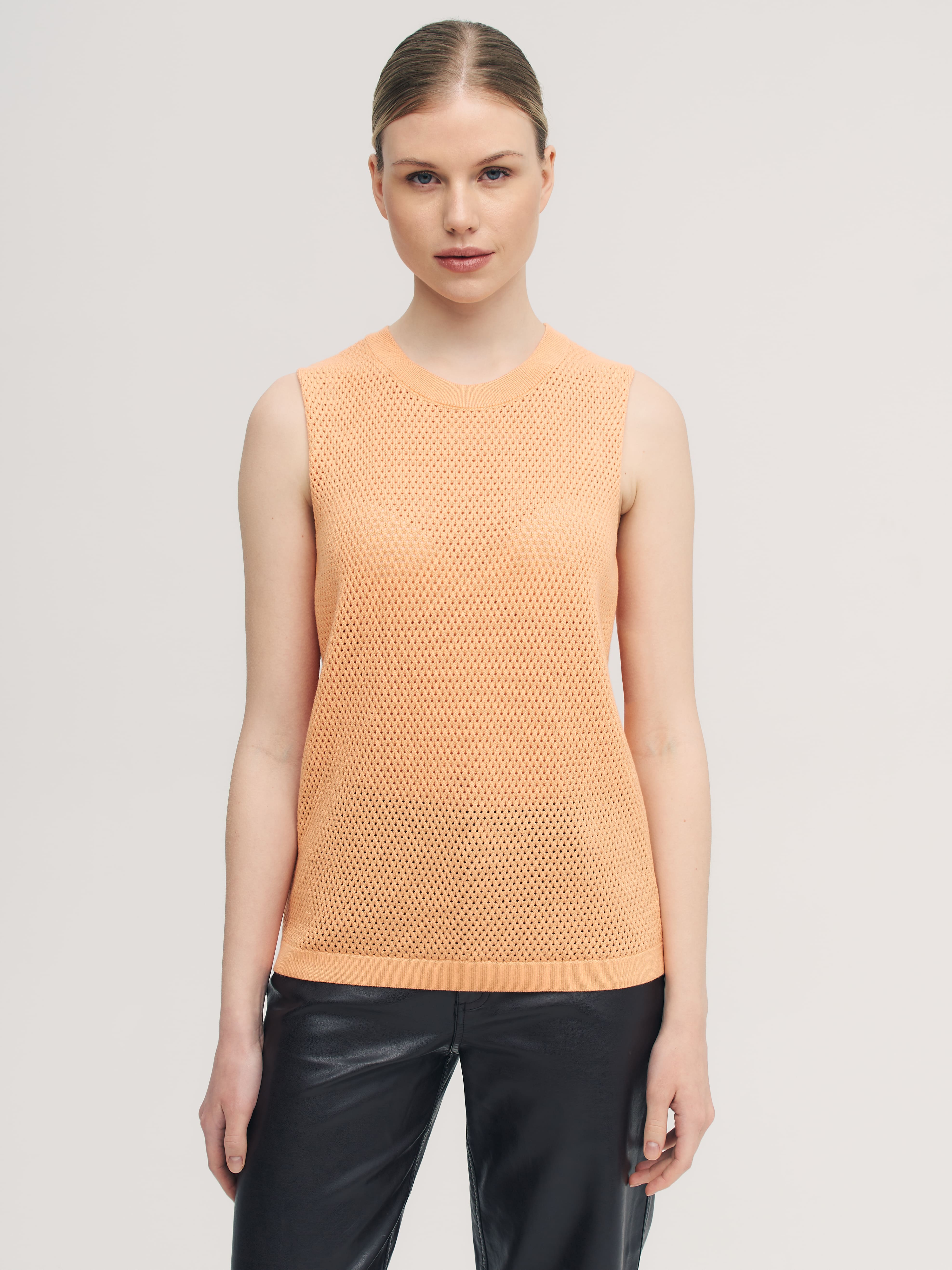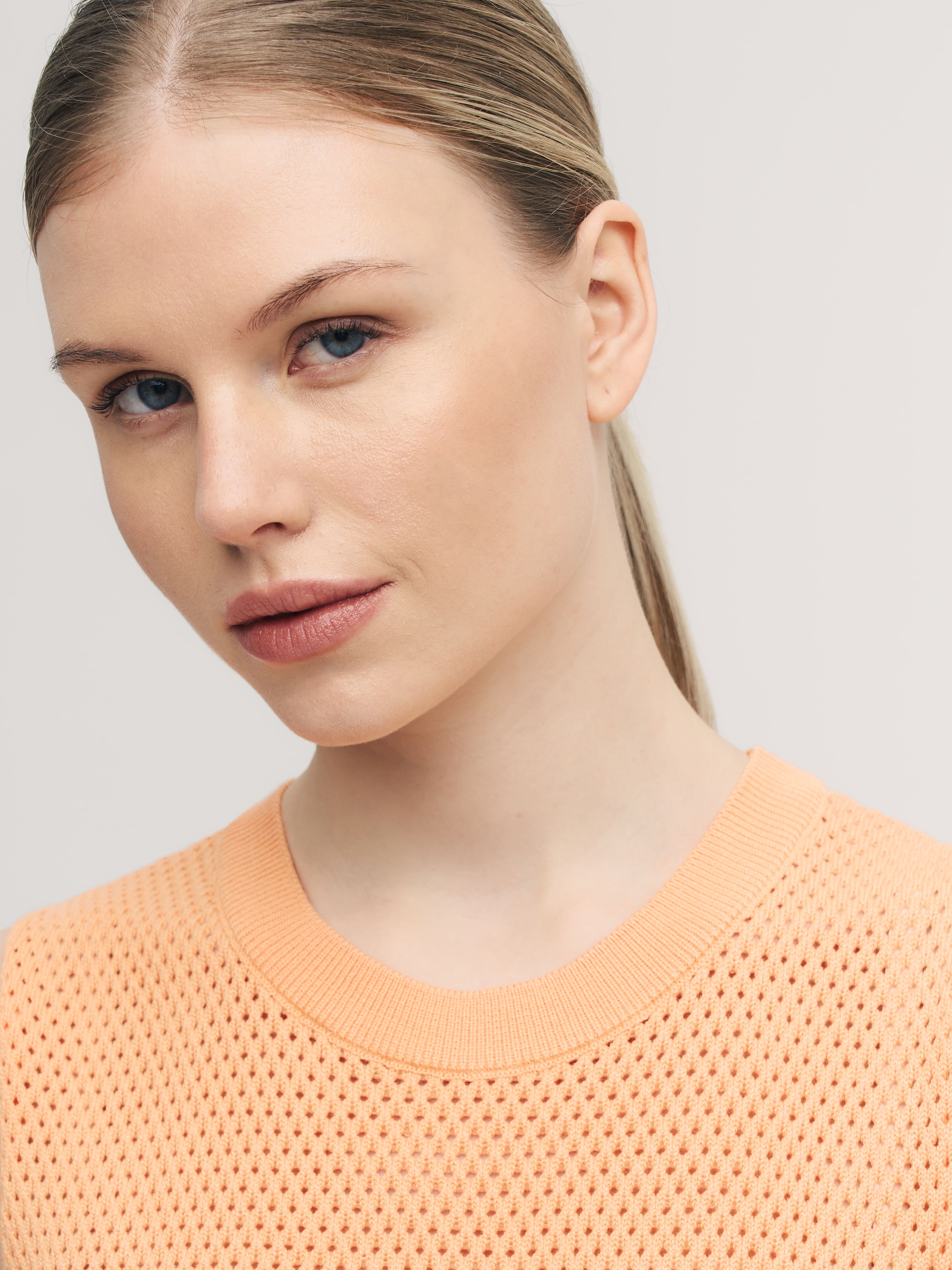 Закрытый хлопковый топ для поклонниц воздушных сеточек, ажурных техник и сдержанной перфорации. Прекрасен сам по себе и не нуждается в декоративных элементах. Эталонная однородность и симметрия узора. Смотреть на сотни аккуратных ячеек, объединенных в нежнейший трикотаж, можно бесконечно. Базовая составляющая летней капсулы, которая мягко подчеркнет загар и будет дышать каждой петелькой. Оптимальный нижний слой под весенние кардиганы 99colorspace.