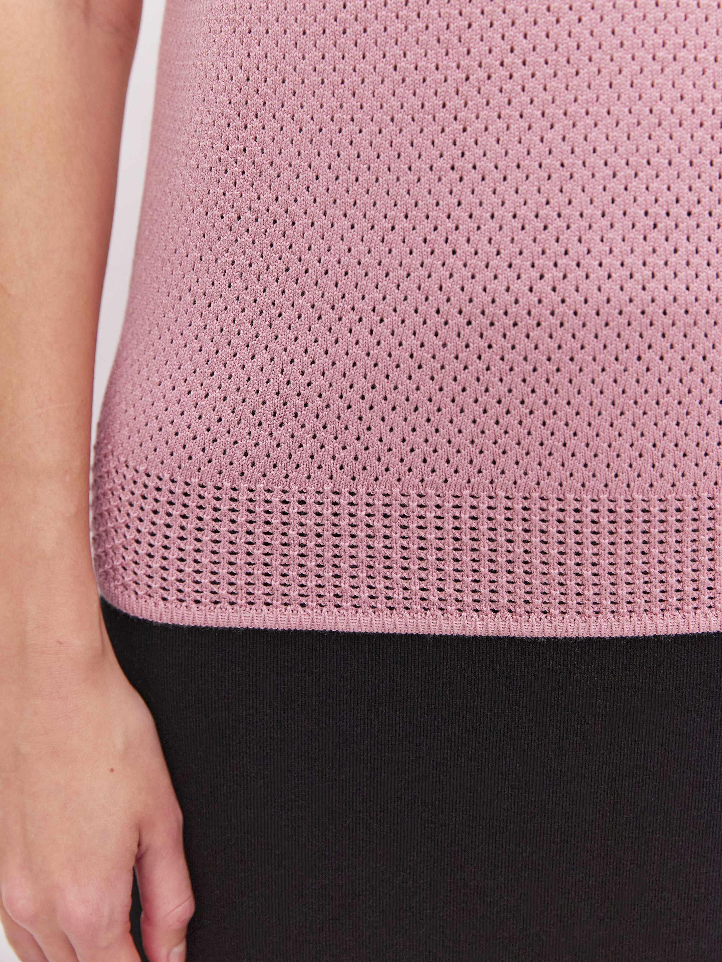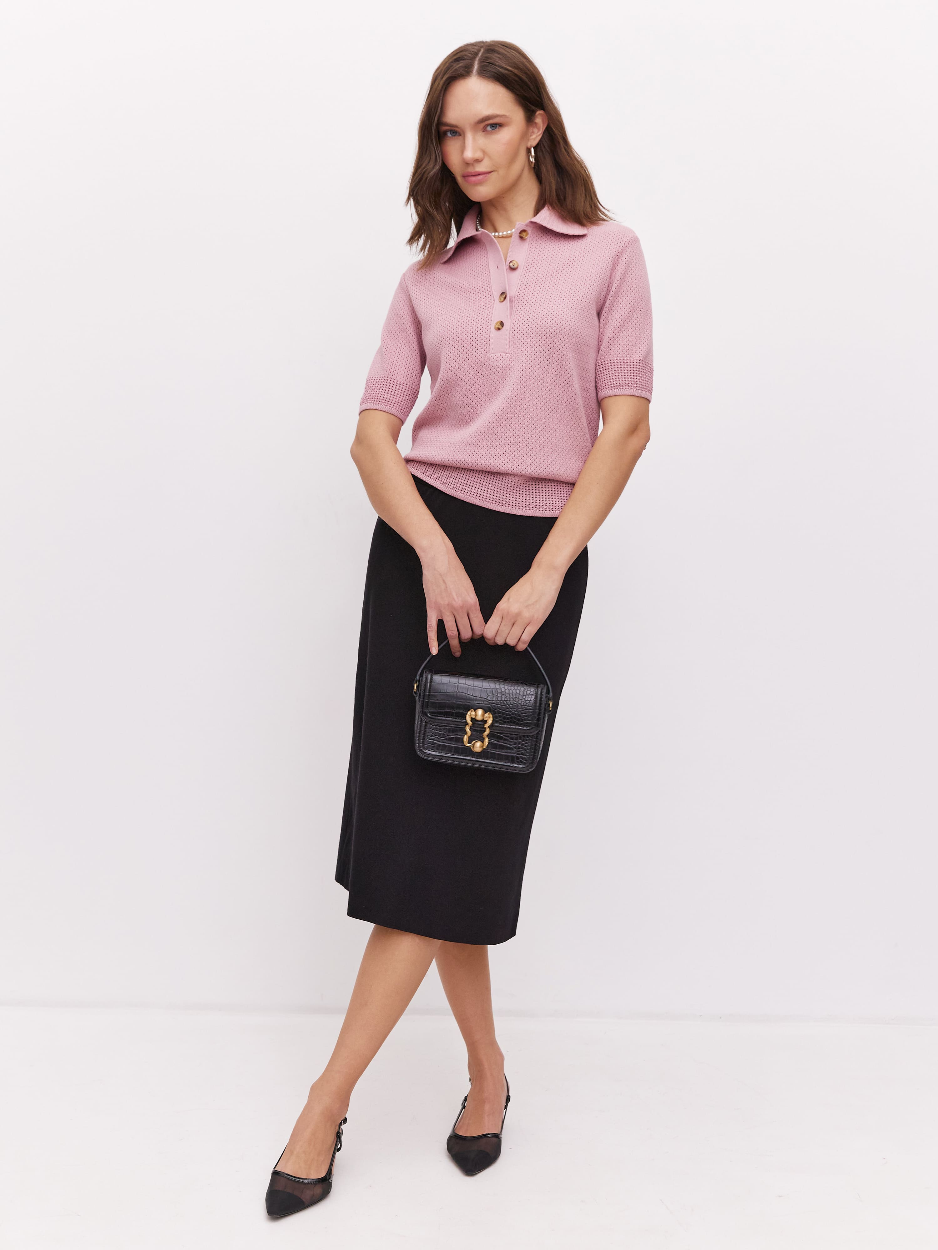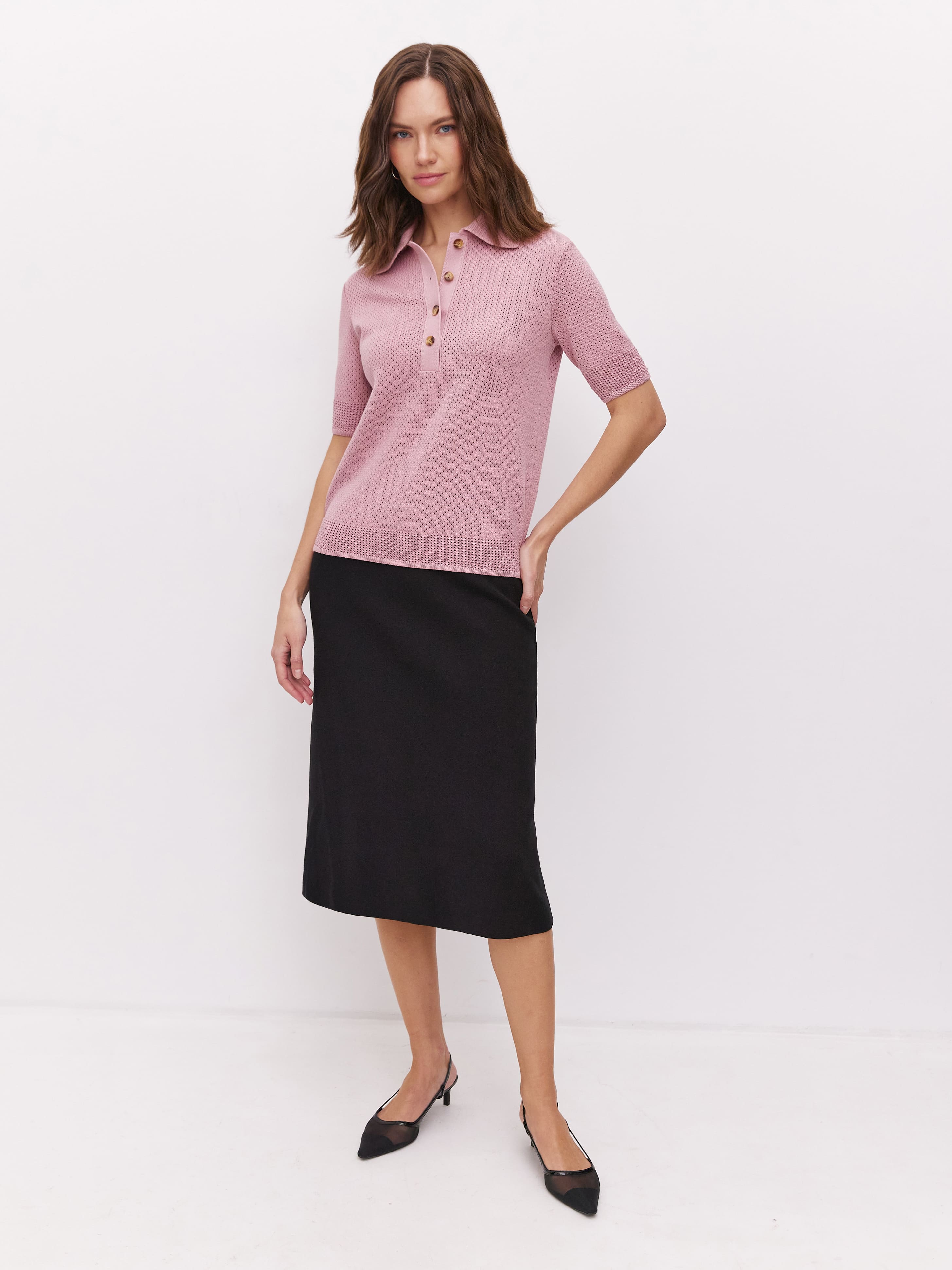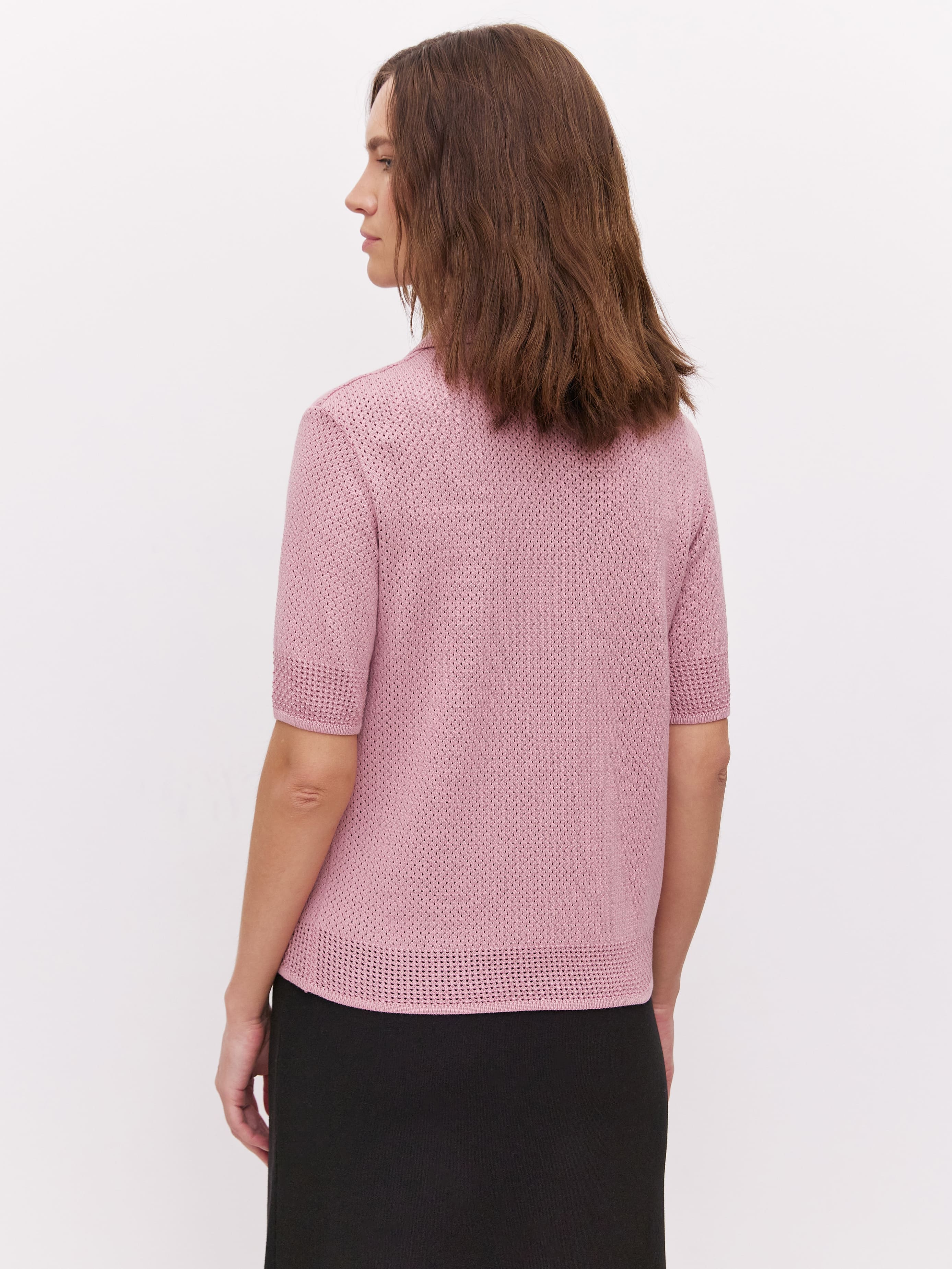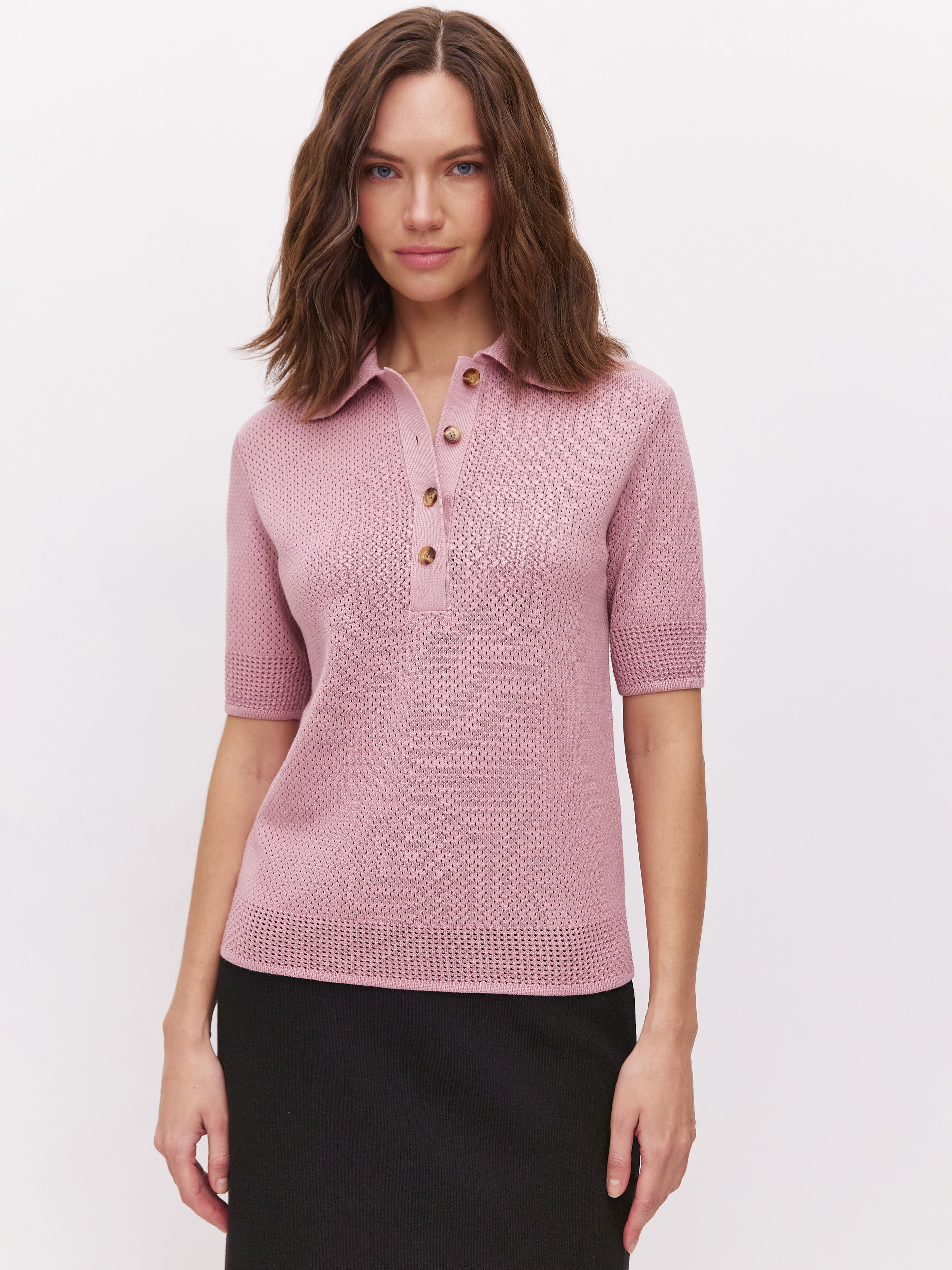 Нежное вязаное поло с хлопком и невесомой вискозой. Изюминка модели – аккуратная перфорация. Каждая трикотажная ячейка работает как проводник воздушных капсул, бережно охлаждающих тело. Уютный джемпер для летнего отпуска и морских прогулок. Мягкий трикотаж защитит от активного солнца, бриза и перегрева. Рифмуется с любым низом из круизной коллекции 99colorspace – вискозными юбками или пластичными хлопковыми палаццо.