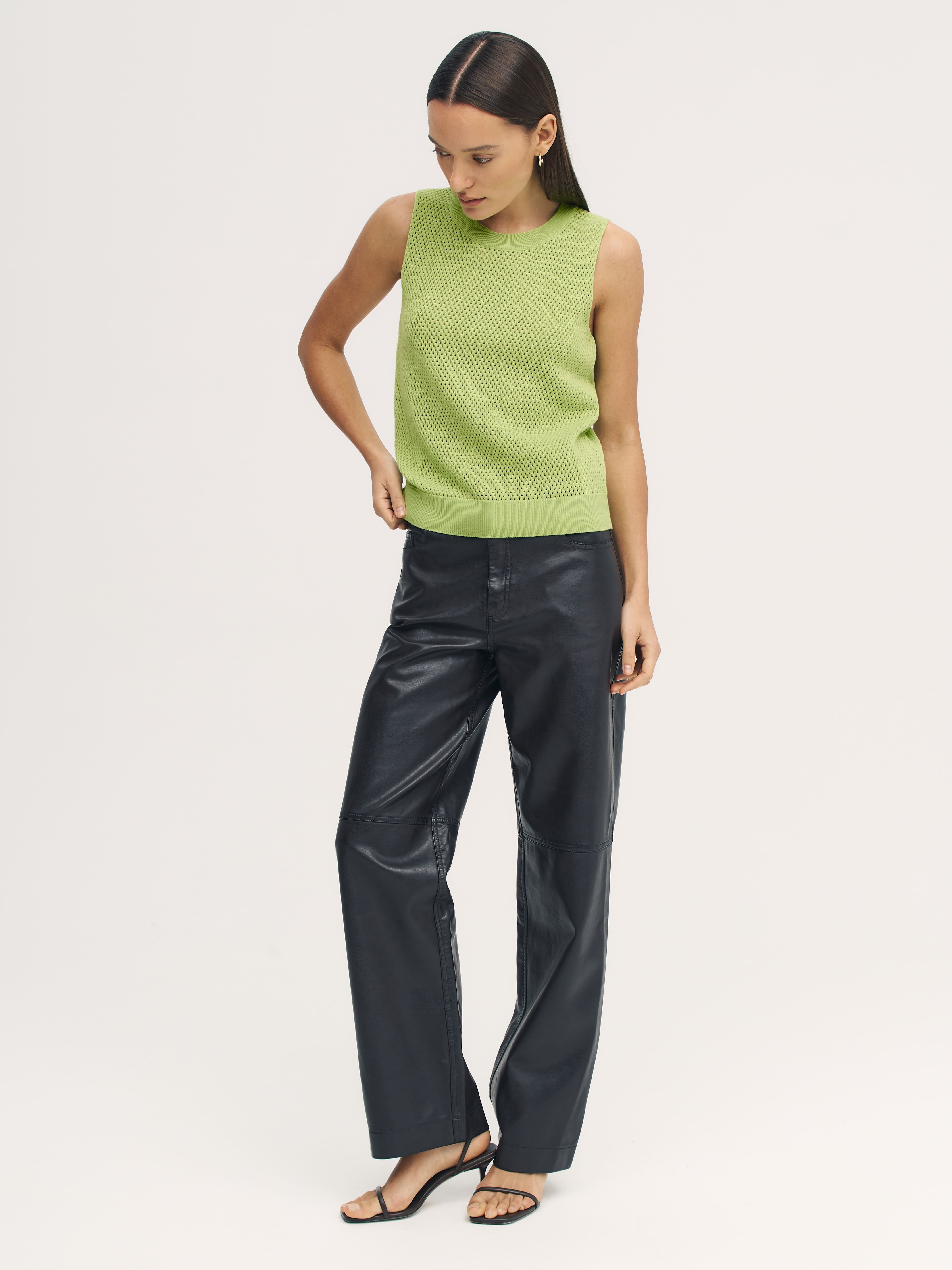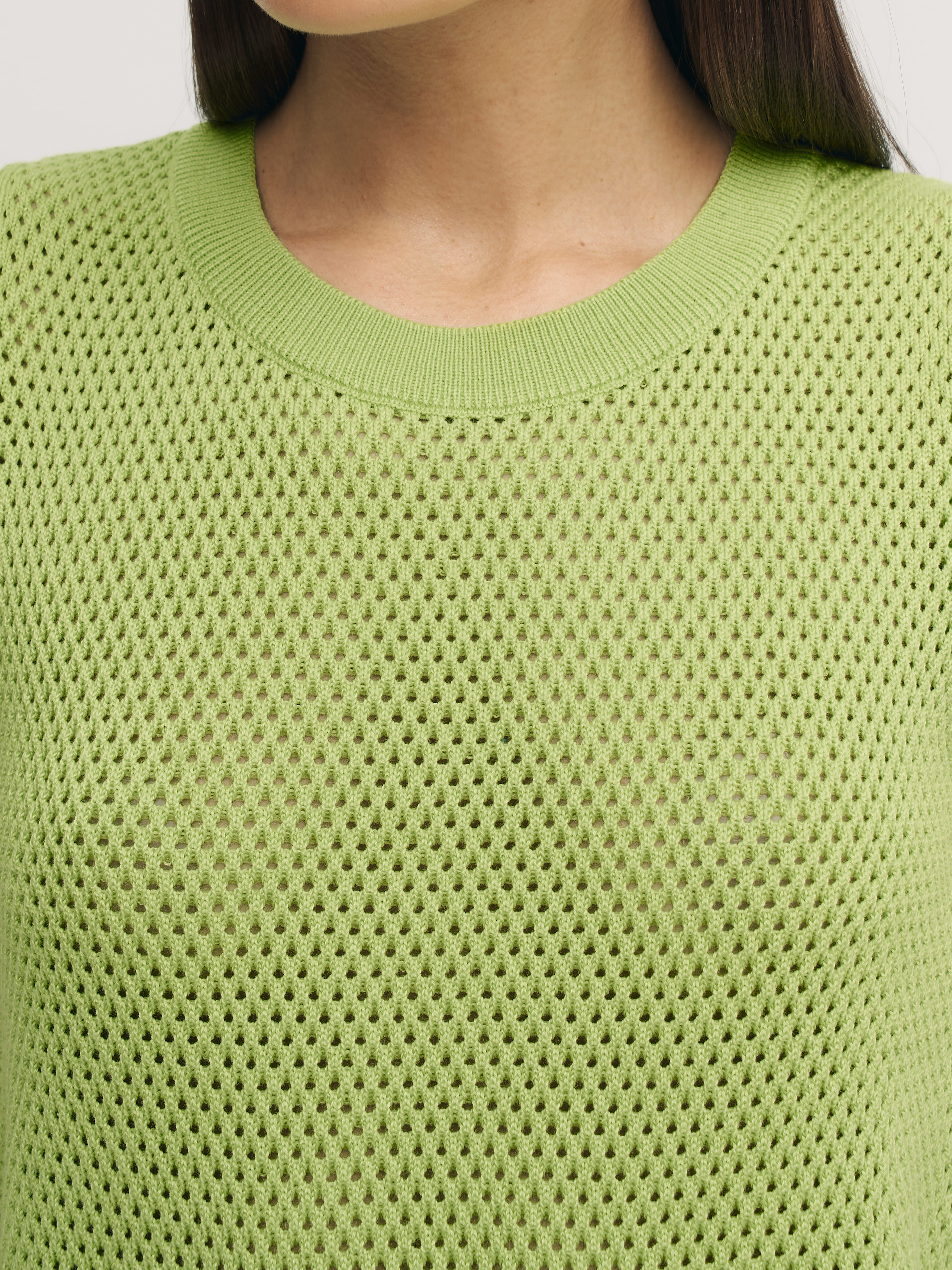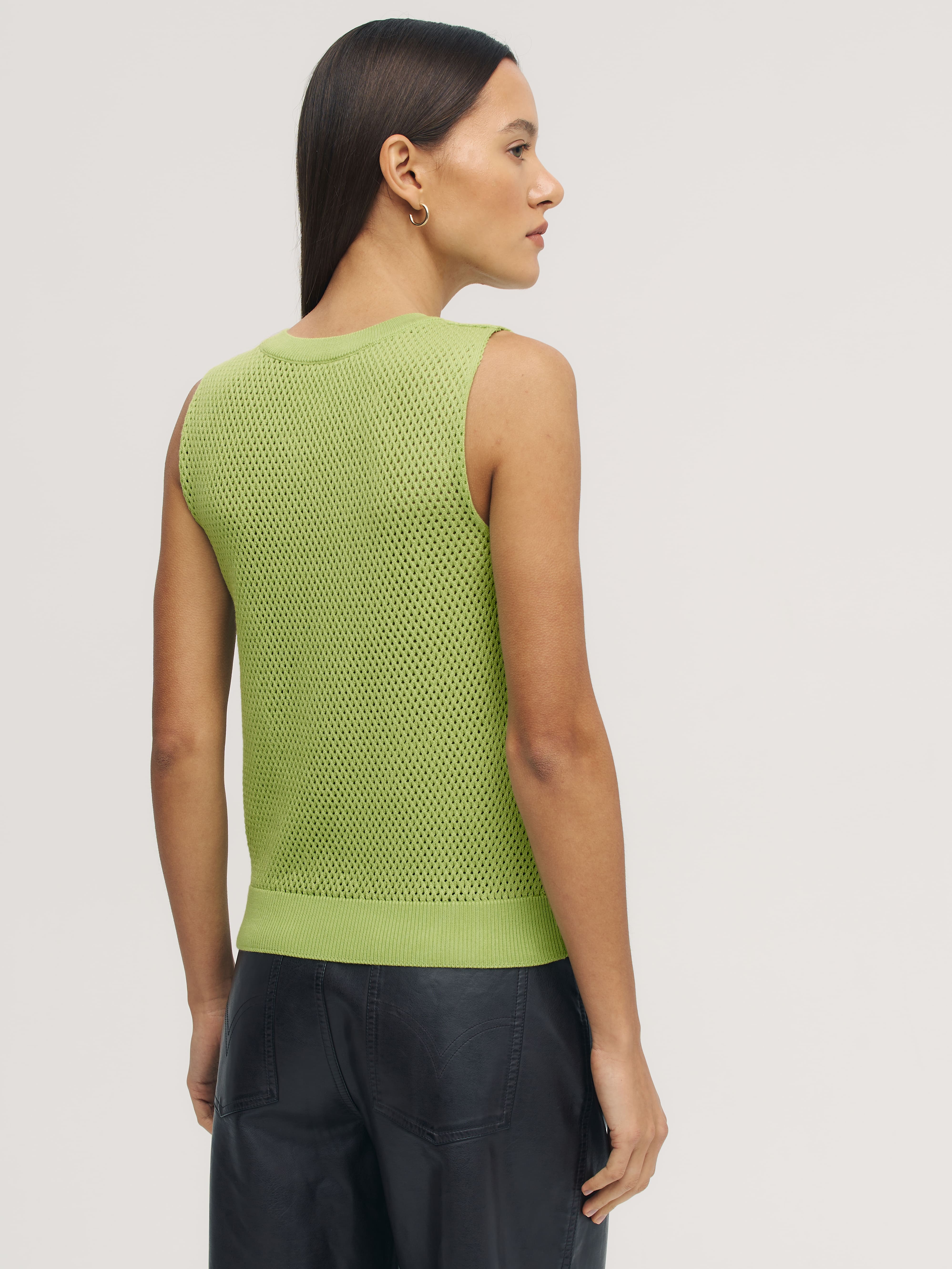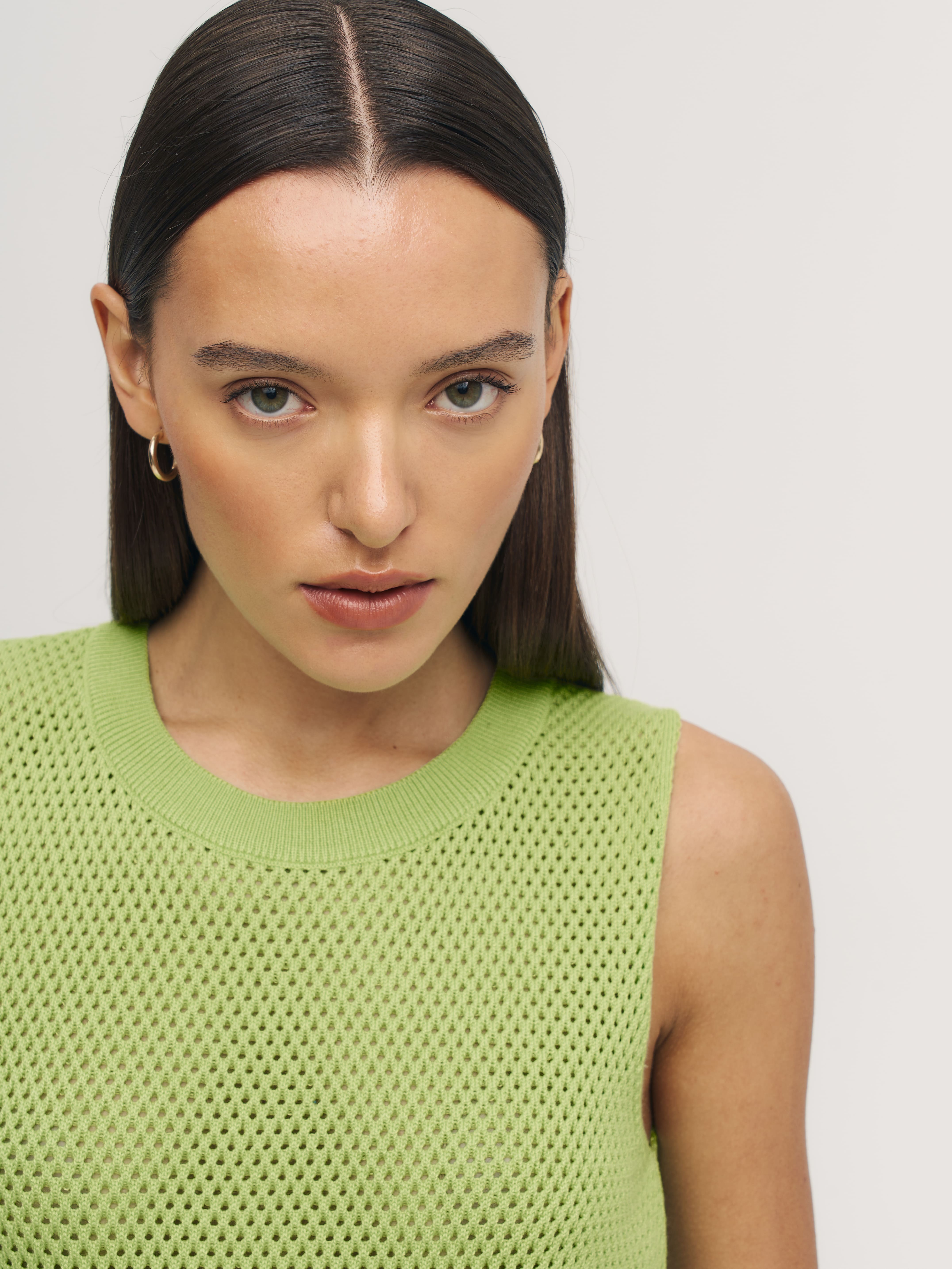 Ваш пропуск в лето – трикотажный перфорированный топ из натурального хлопка-премиум. Выделяется на фоне текстильных маечек сетчатой текстурой и способностью моделировать сексуальный силуэт без облегания. Максимальные дышащие характеристики при минимальном просвечивании. Резинка по нижнему краю позволит скорректировать длину посадки под себя. Идеальные пары образует со свободными круизными брюками и юбками-миди из весенней коллекции 99colorspace. Прекрасен в качестве нижнего слоя под плотные осенние жакеты.