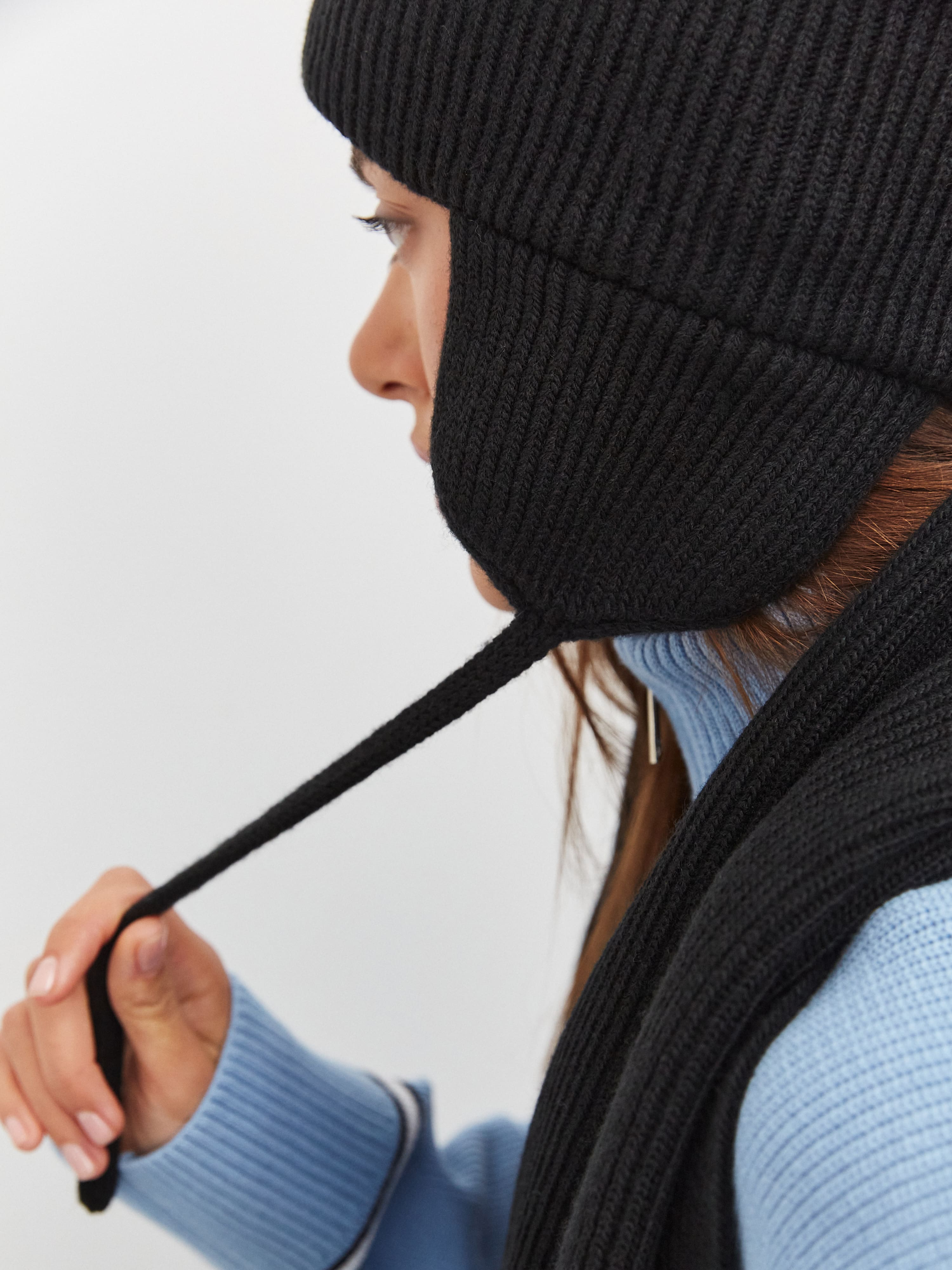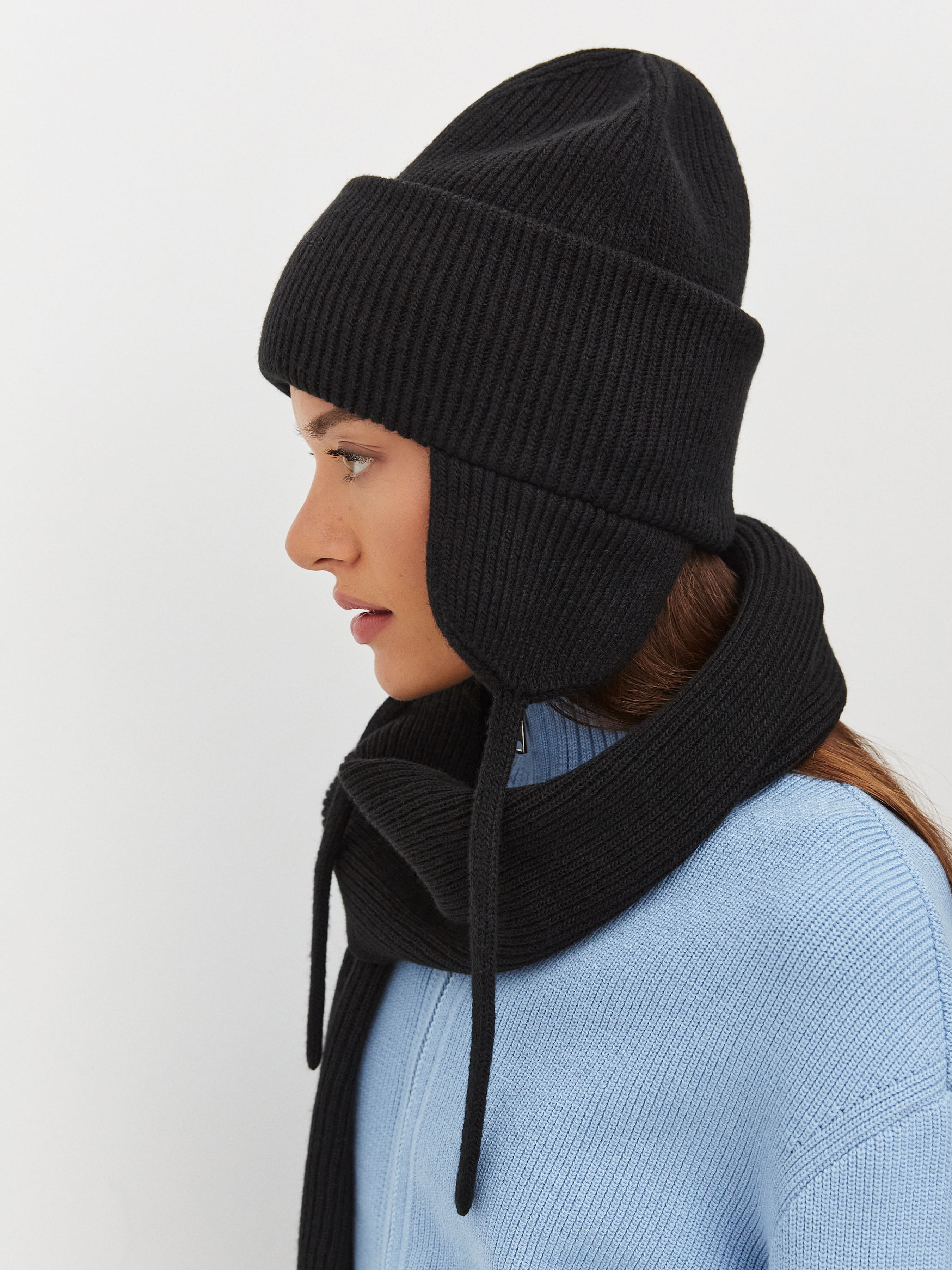 Необычность этого зимнего комплекта из чесаной шерсти заключается в одной детали – милых ушках на шапке. Мы добавили их по просьбам поклонниц бренда, которые хотели максимально защищающий головной убор для ветреной погоды. При этом мы сохранили на шапке бини отворот, дающий дополнительное утепление. Длина шарфа позволяет уложить его в несколько оборотов вокруг шеи.