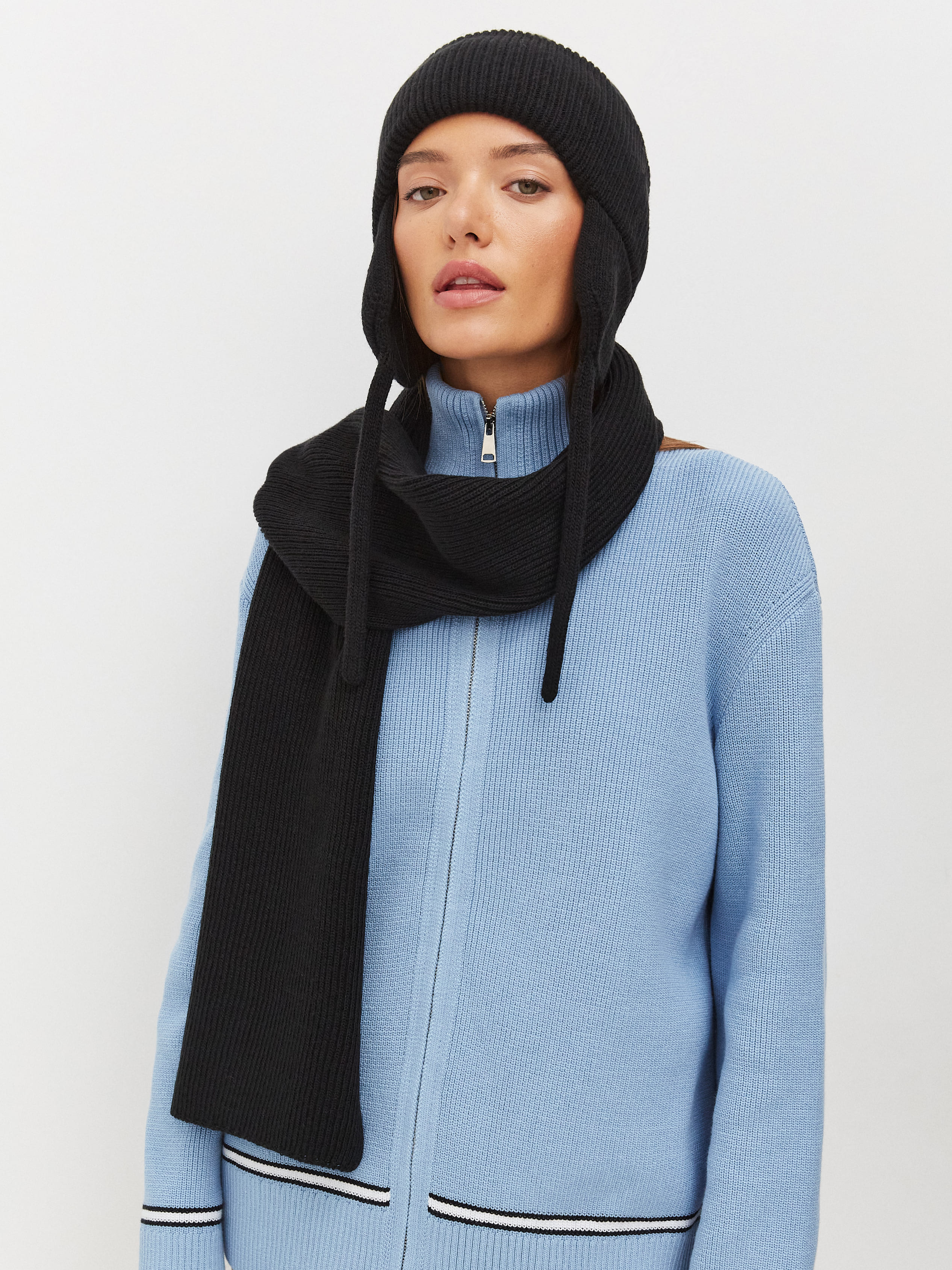 Комплект из шапки с ушками и шарфа из шерсти мериноса Айсберг