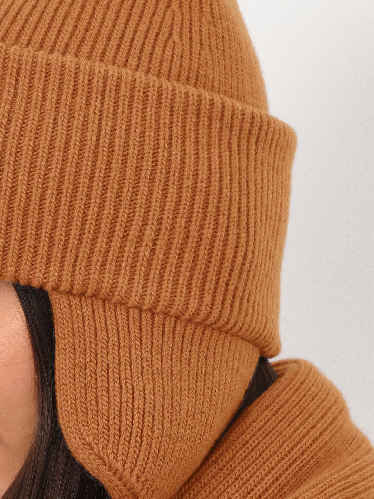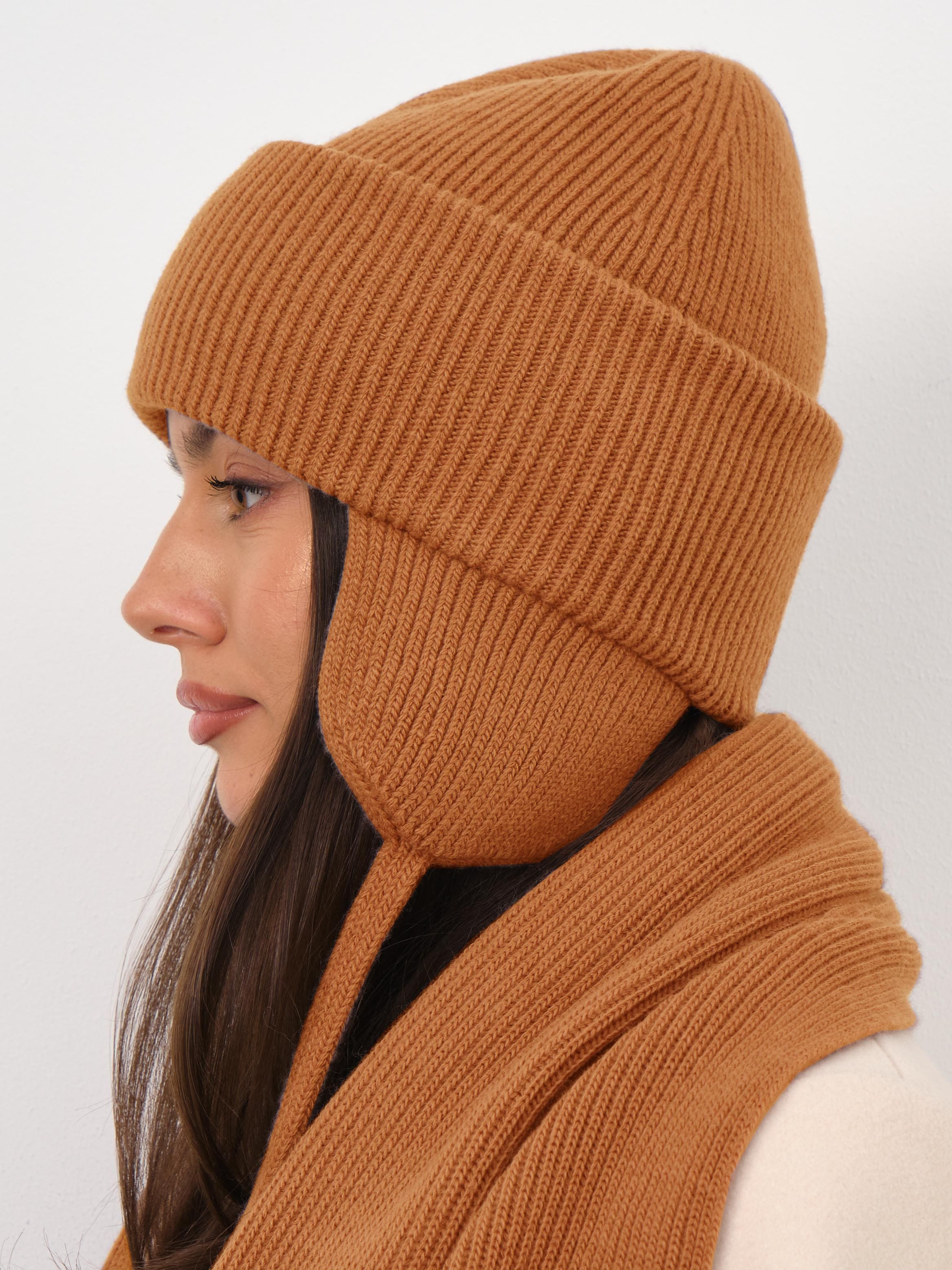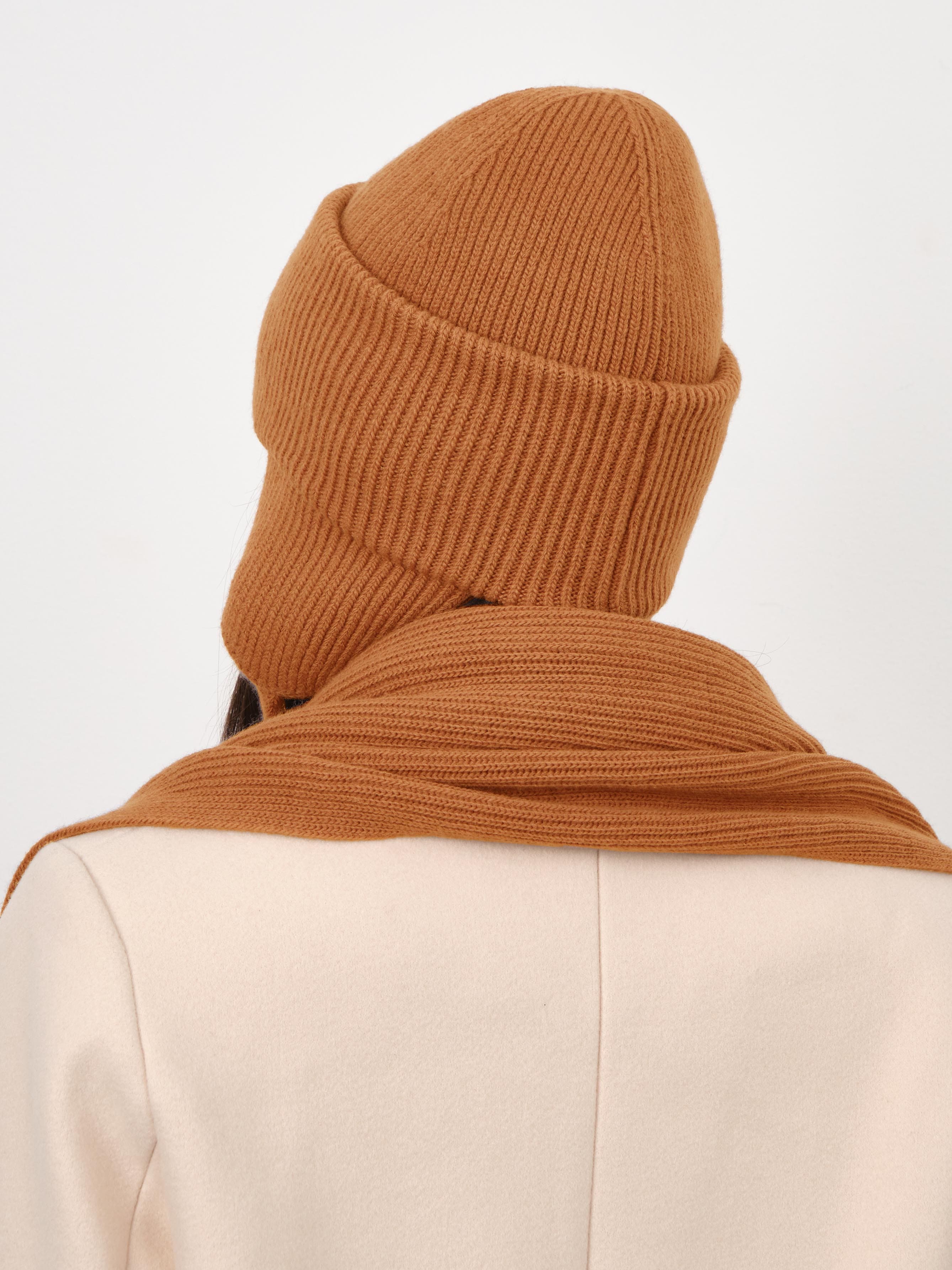 Необычность этого зимнего комплекта из чесаной шерсти заключается в одной детали – милых ушках на шапке. Мы добавили их по просьбам поклонниц бренда, которые хотели максимально защищающий головной убор для ветреной погоды. При этом мы сохранили на шапке бини отворот, дающий дополнительное утепление. Длина шарфа позволяет уложить его в несколько оборотов вокруг шеи.