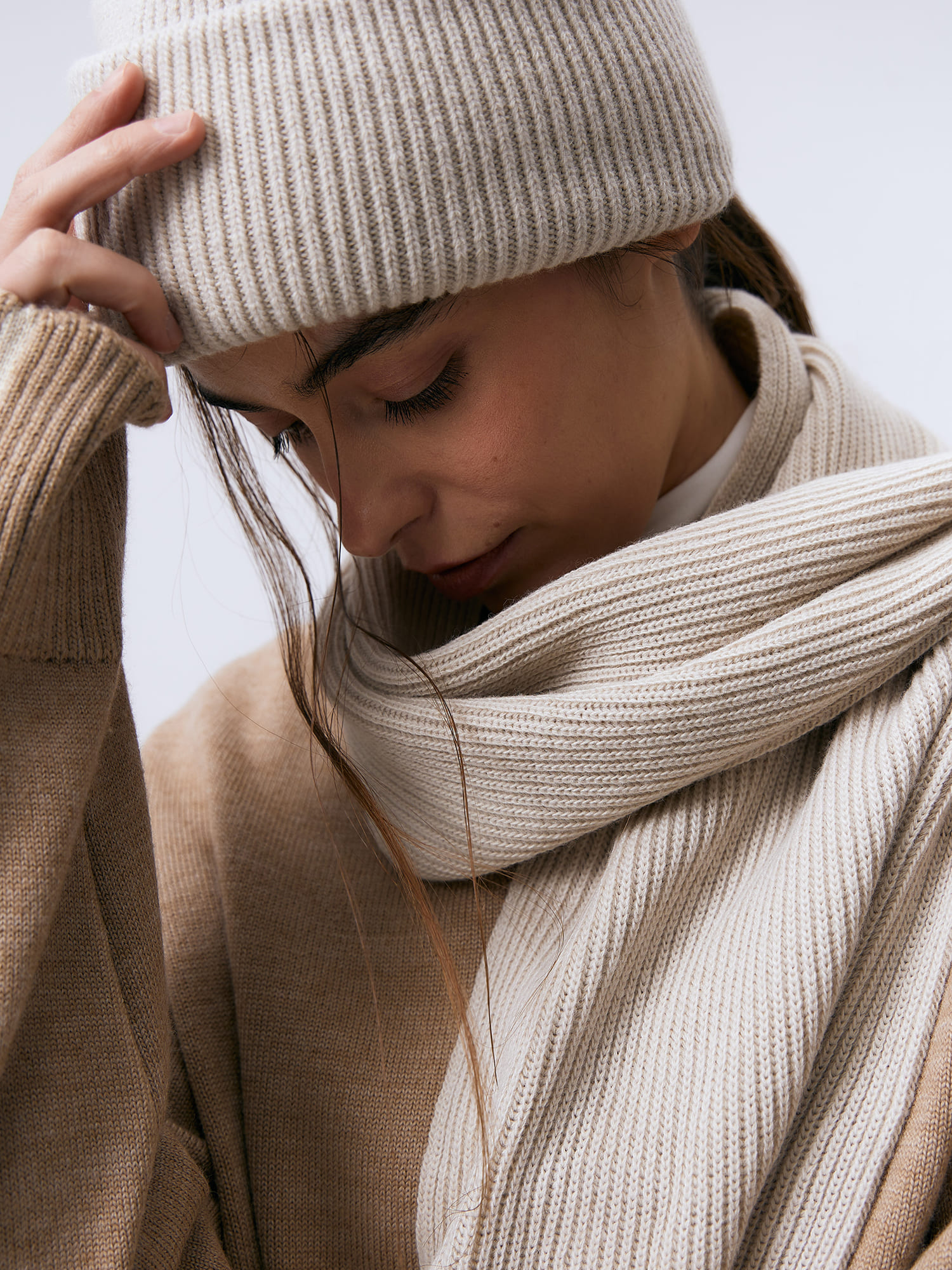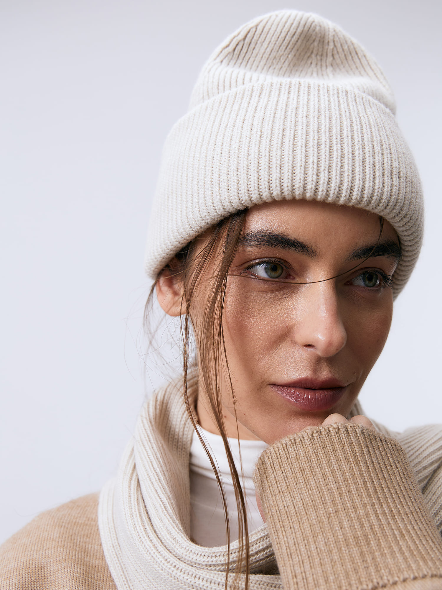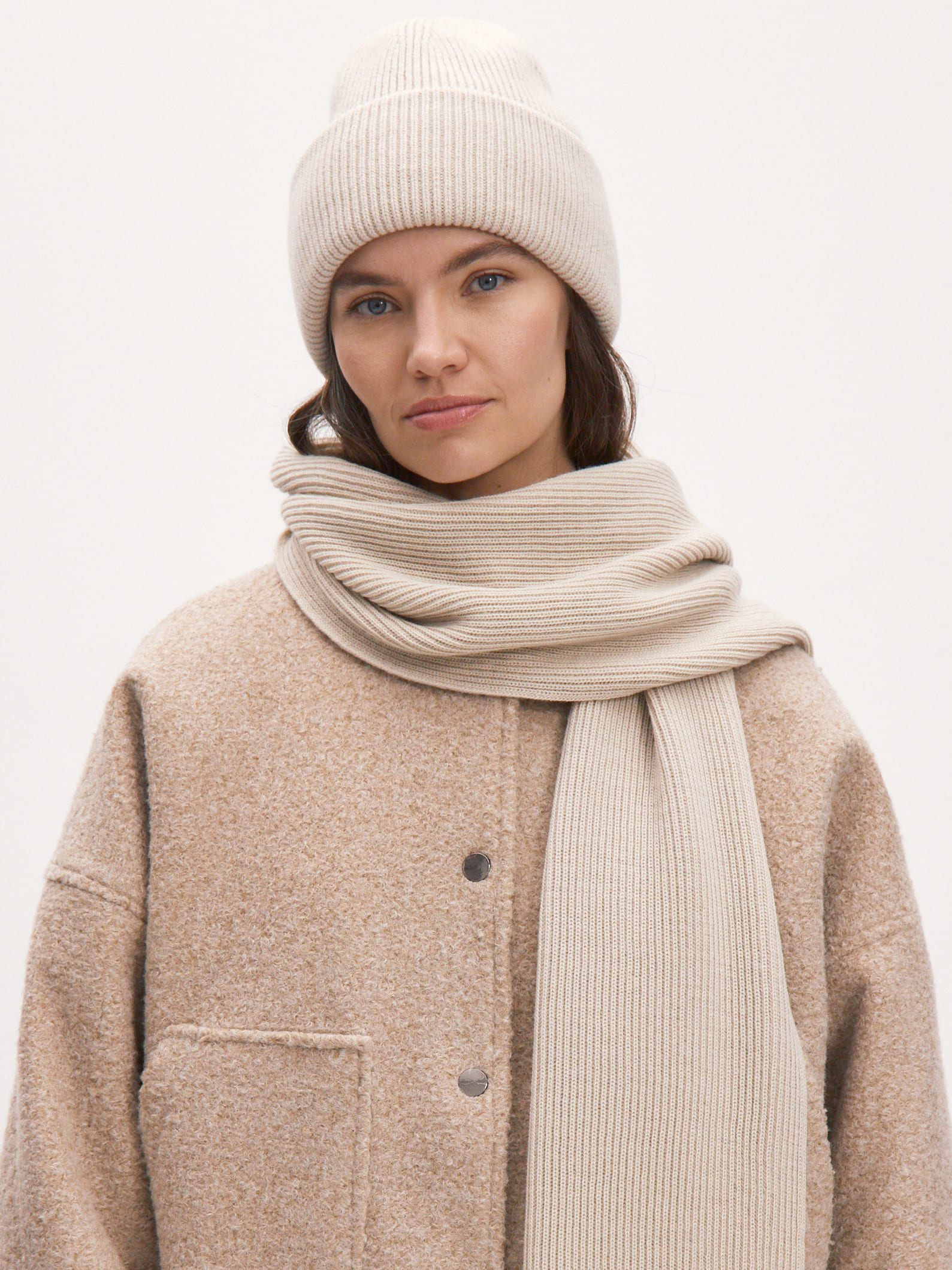 Теплый шерстяной дуэт из мягкой шапочки бини и классического плотного шарфа. Для этого комплекта мы выбрали предельно качественную и комфортную пряжу с небольшим процентом акрила. Не волнуйтесь, искусственные волокна только улучшают тактильность вещей. А еще они избавляют натуральную шерсть от некоторых неудобных нюансов – жесткости, покалывающего эффекта, быстрой потери формы.