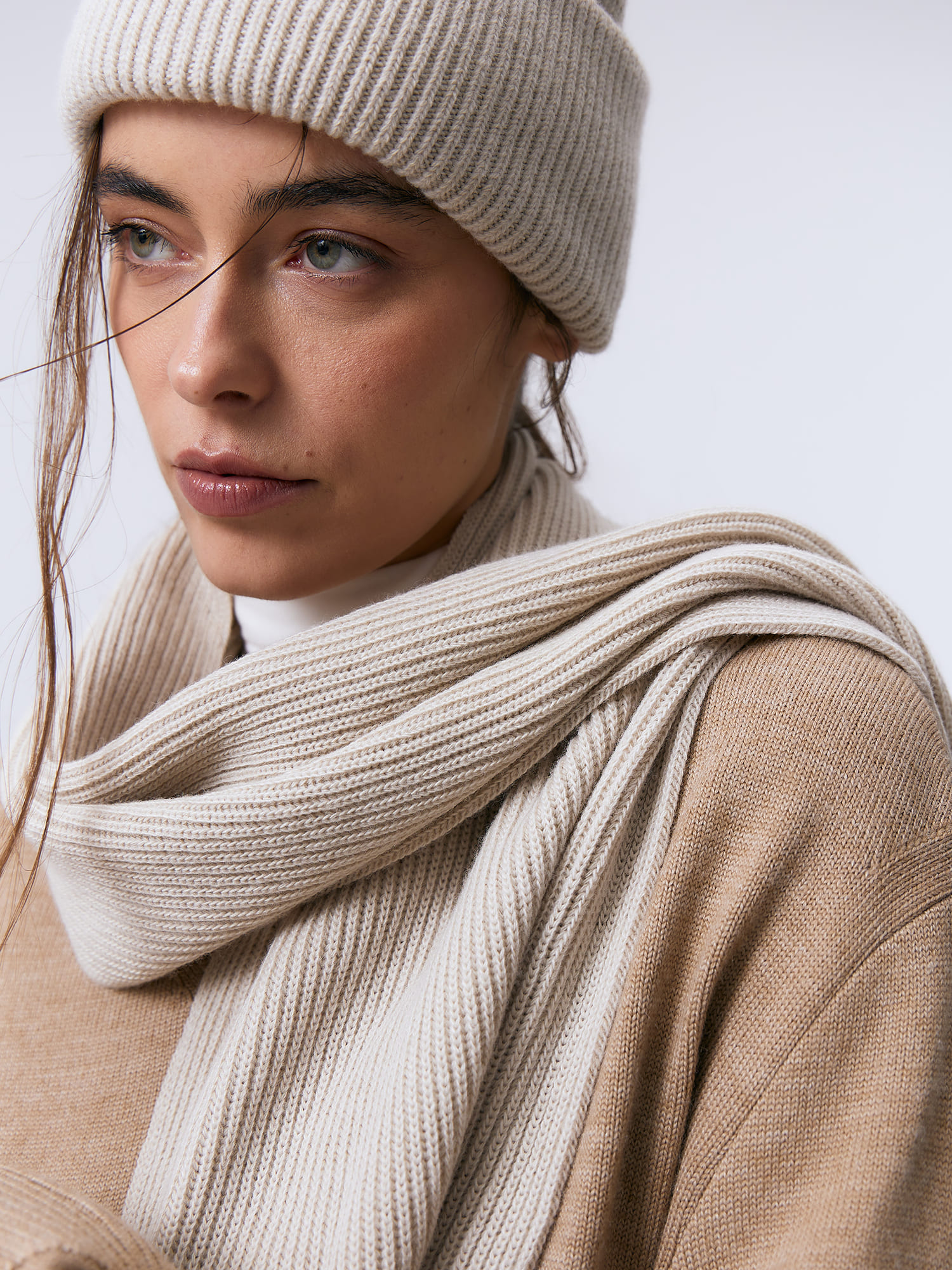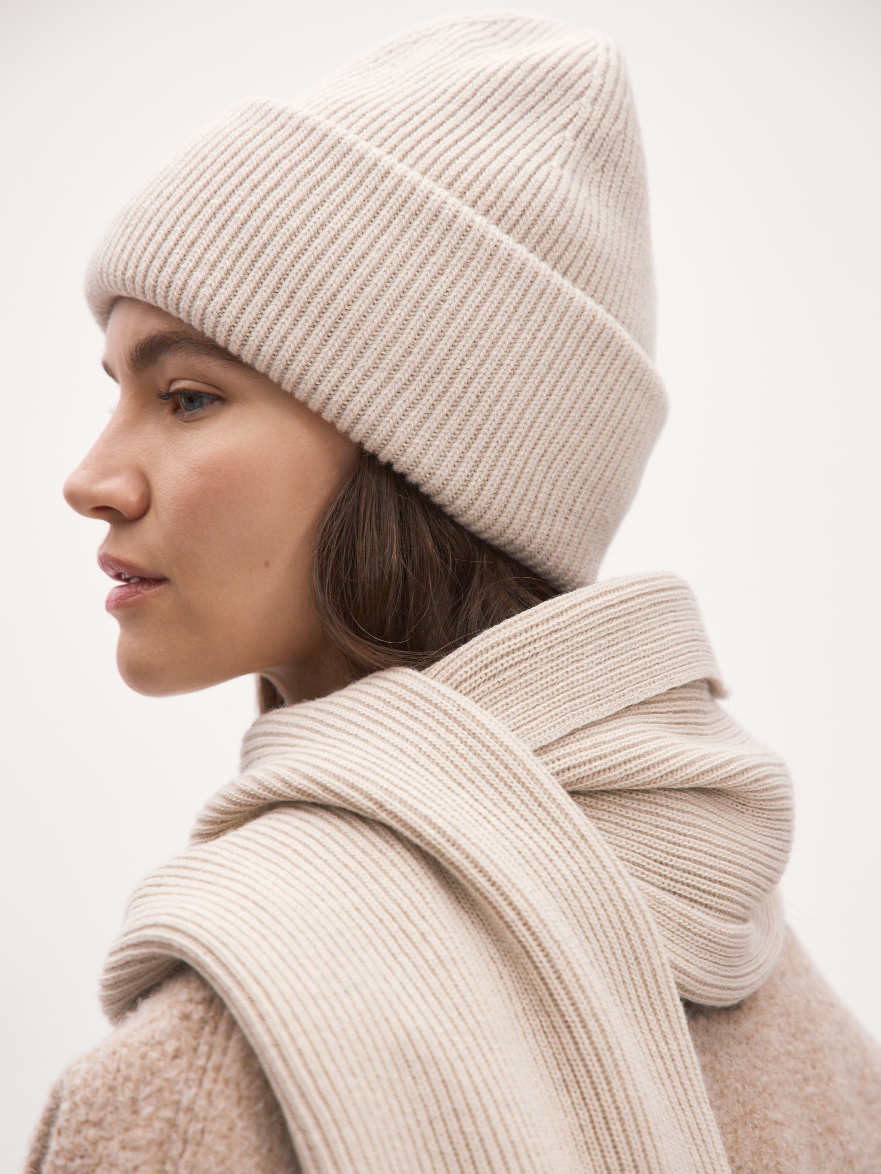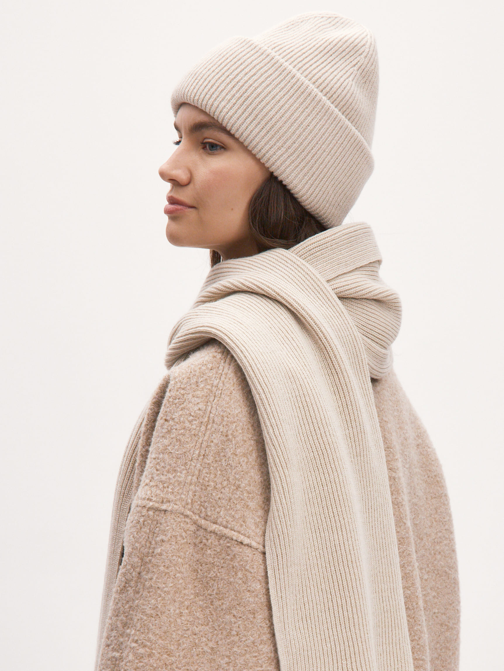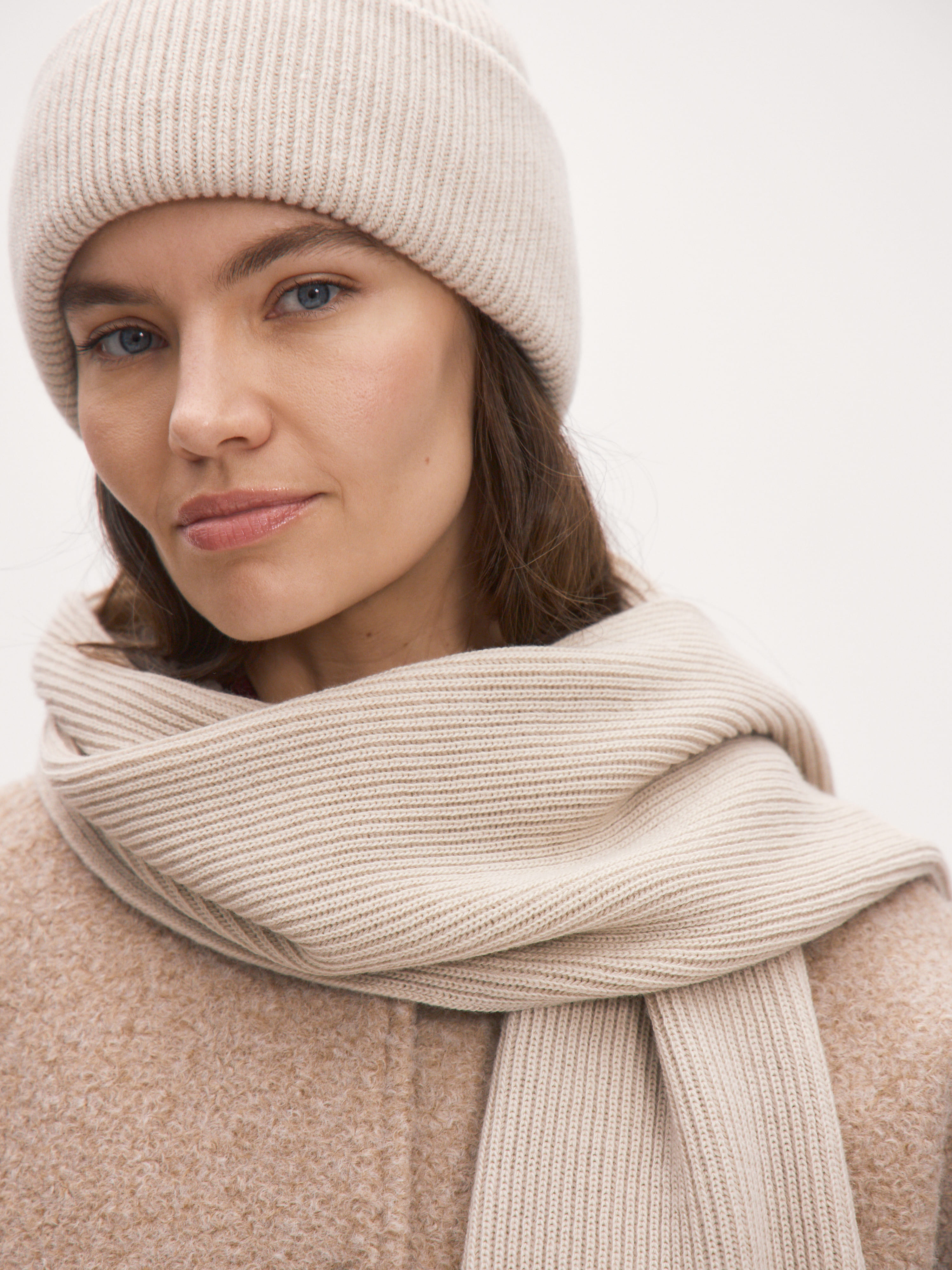 Теплый шерстяной дуэт из мягкой шапочки бини и классического плотного шарфа. Для этого комплекта мы выбрали предельно качественную и комфортную пряжу с небольшим процентом акрила. Не волнуйтесь, искусственные волокна только улучшают тактильность вещей. А еще они избавляют натуральную шерсть от некоторых неудобных нюансов – жесткости, покалывающего эффекта, быстрой потери формы.