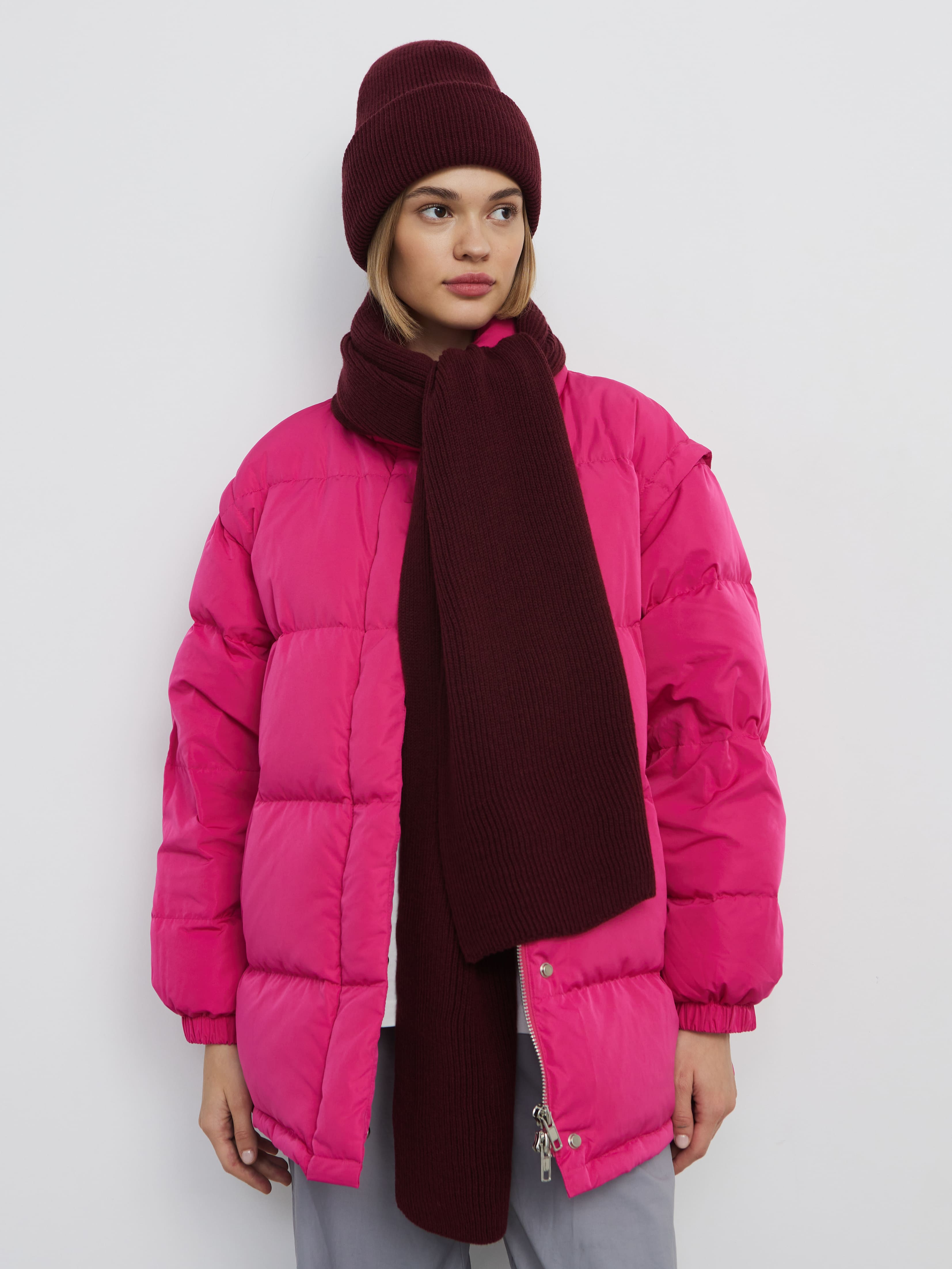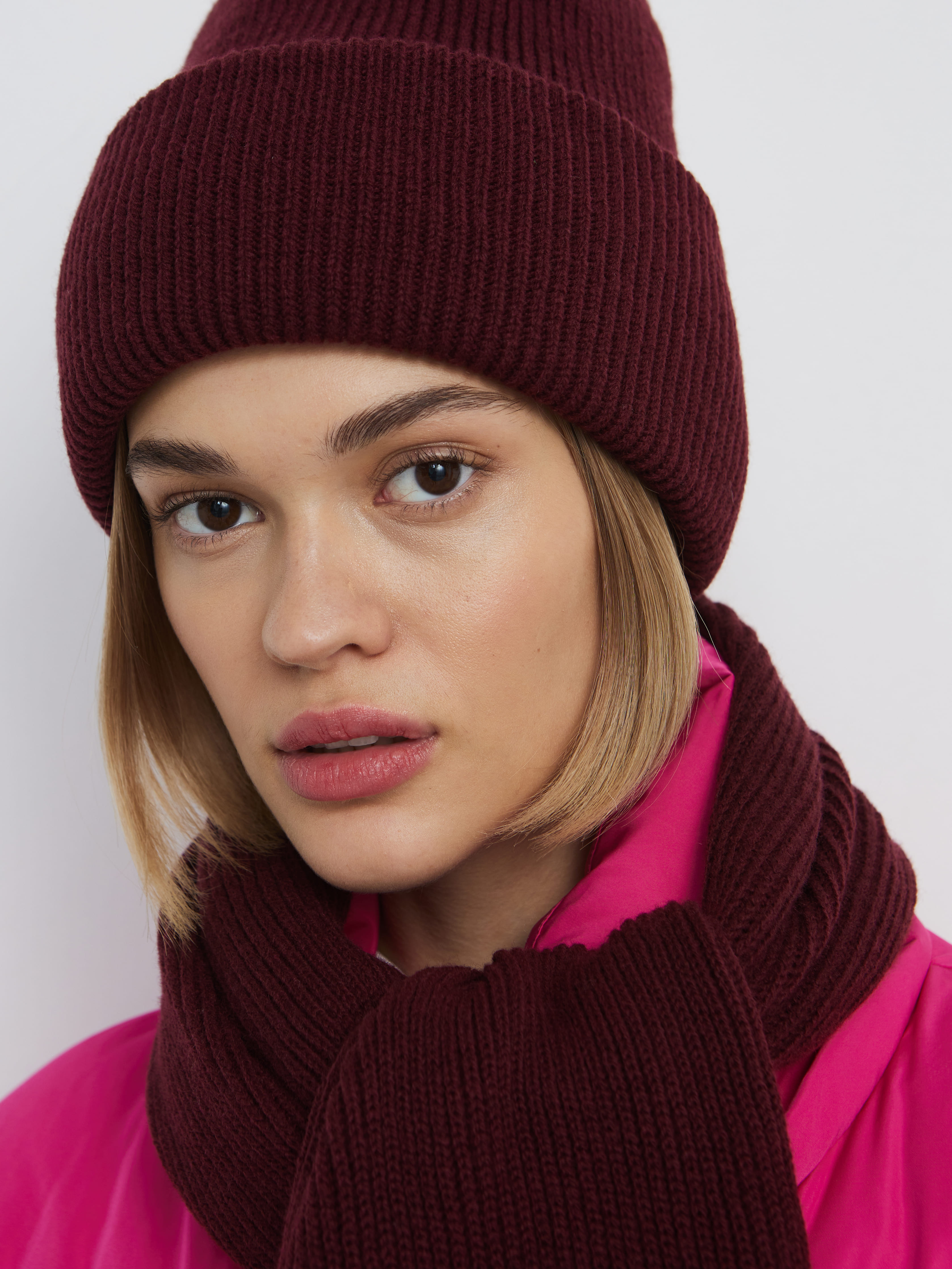 Теплый шерстяной дуэт из мягкой шапочки бини и классического плотного шарфа. Для этого комплекта мы выбрали предельно качественную и комфортную пряжу с небольшим процентом акрила. Не волнуйтесь, искусственные волокна только улучшают тактильность вещей. А еще они избавляют натуральную шерсть от некоторых неудобных нюансов – жесткости, покалывающего эффекта, быстрой потери формы.