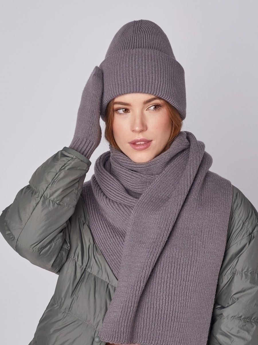 Теплый шерстяной дуэт из мягкой шапочки бини и классического плотного шарфа. Для этого комплекта мы выбрали предельно качественную и комфортную пряжу с небольшим процентом акрила. Не волнуйтесь, искусственные волокна только улучшают тактильность вещей. А еще они избавляют натуральную шерсть от некоторых неудобных нюансов – жесткости, покалывающего эффекта, быстрой потери формы.