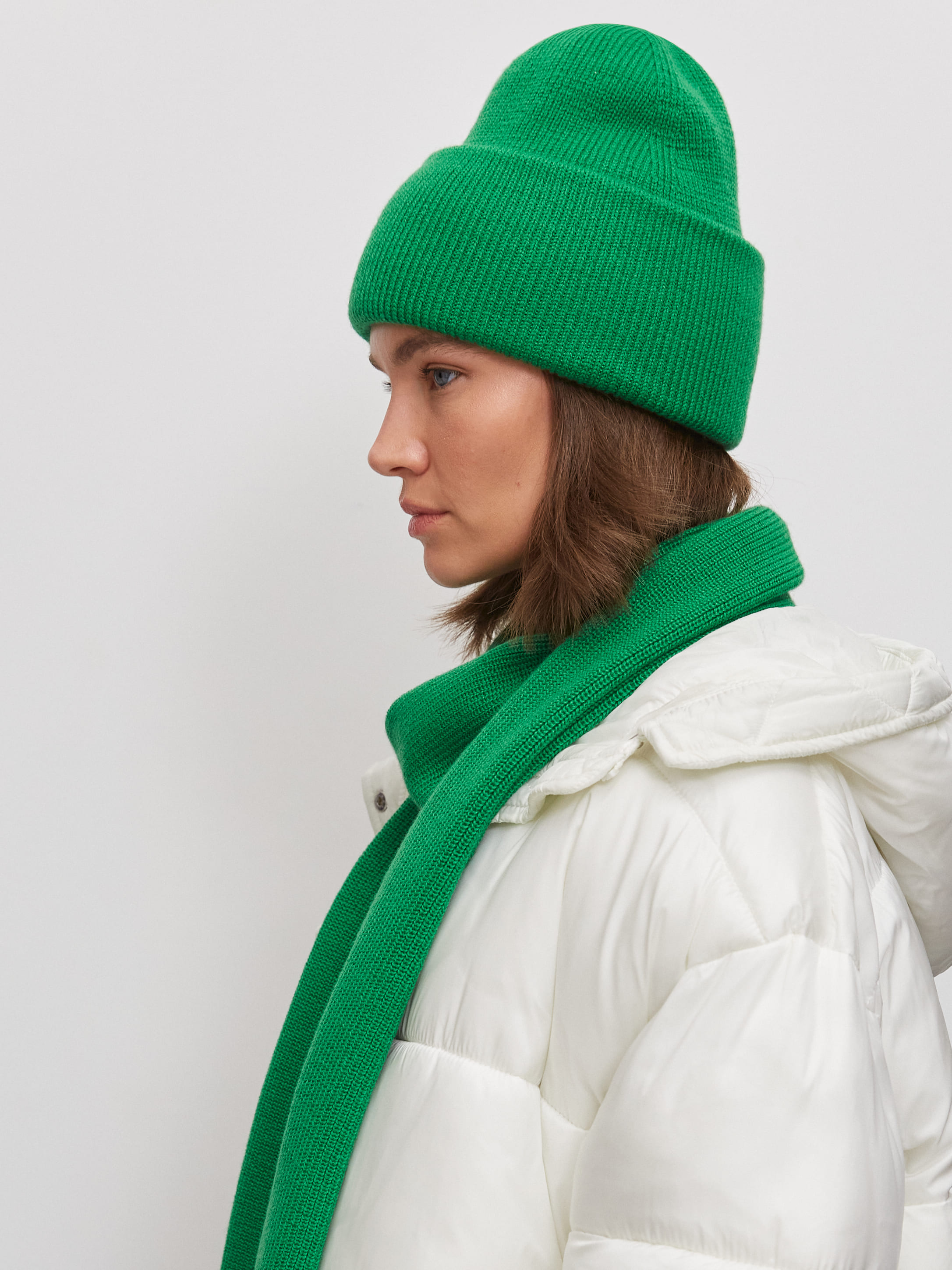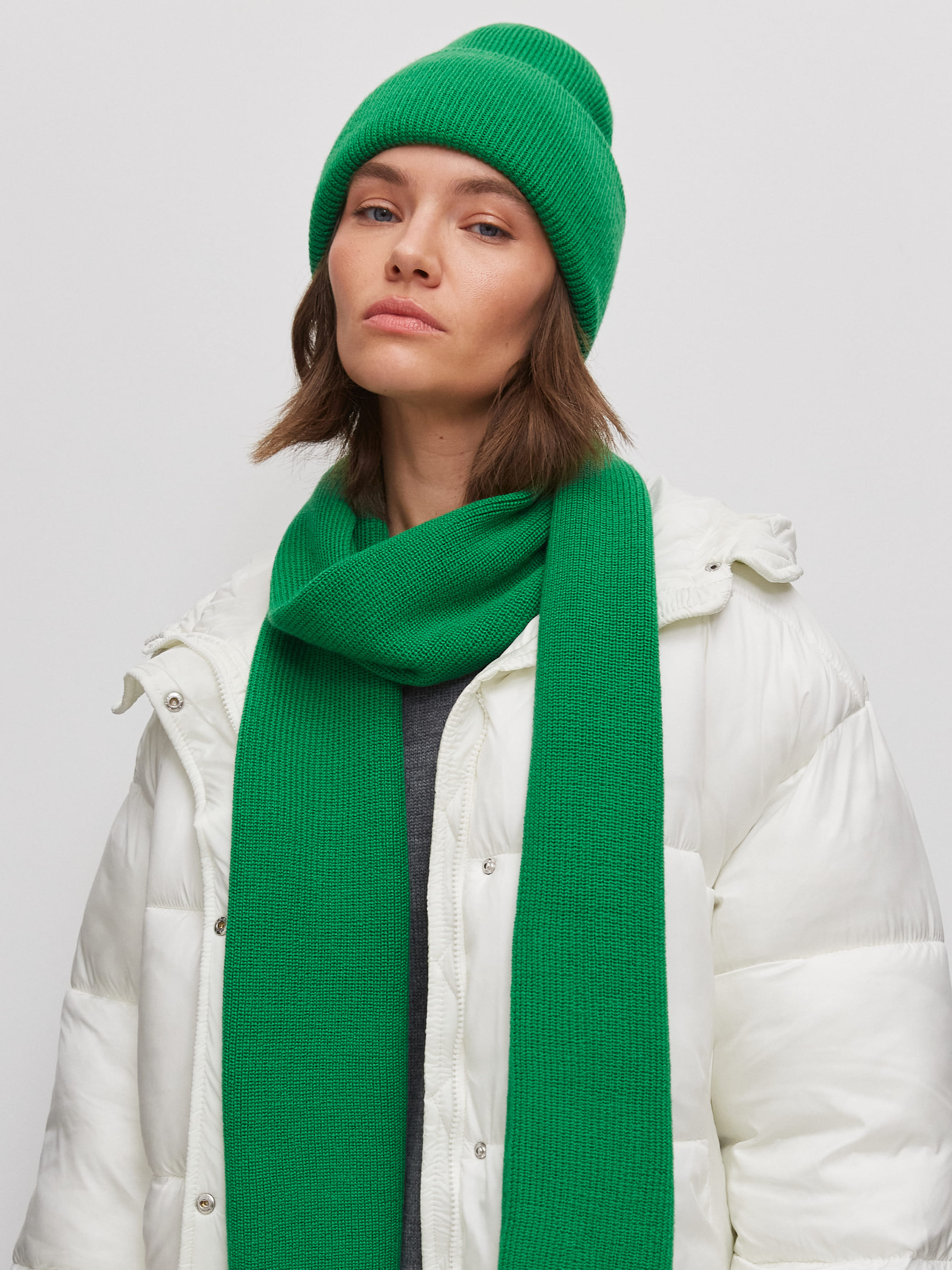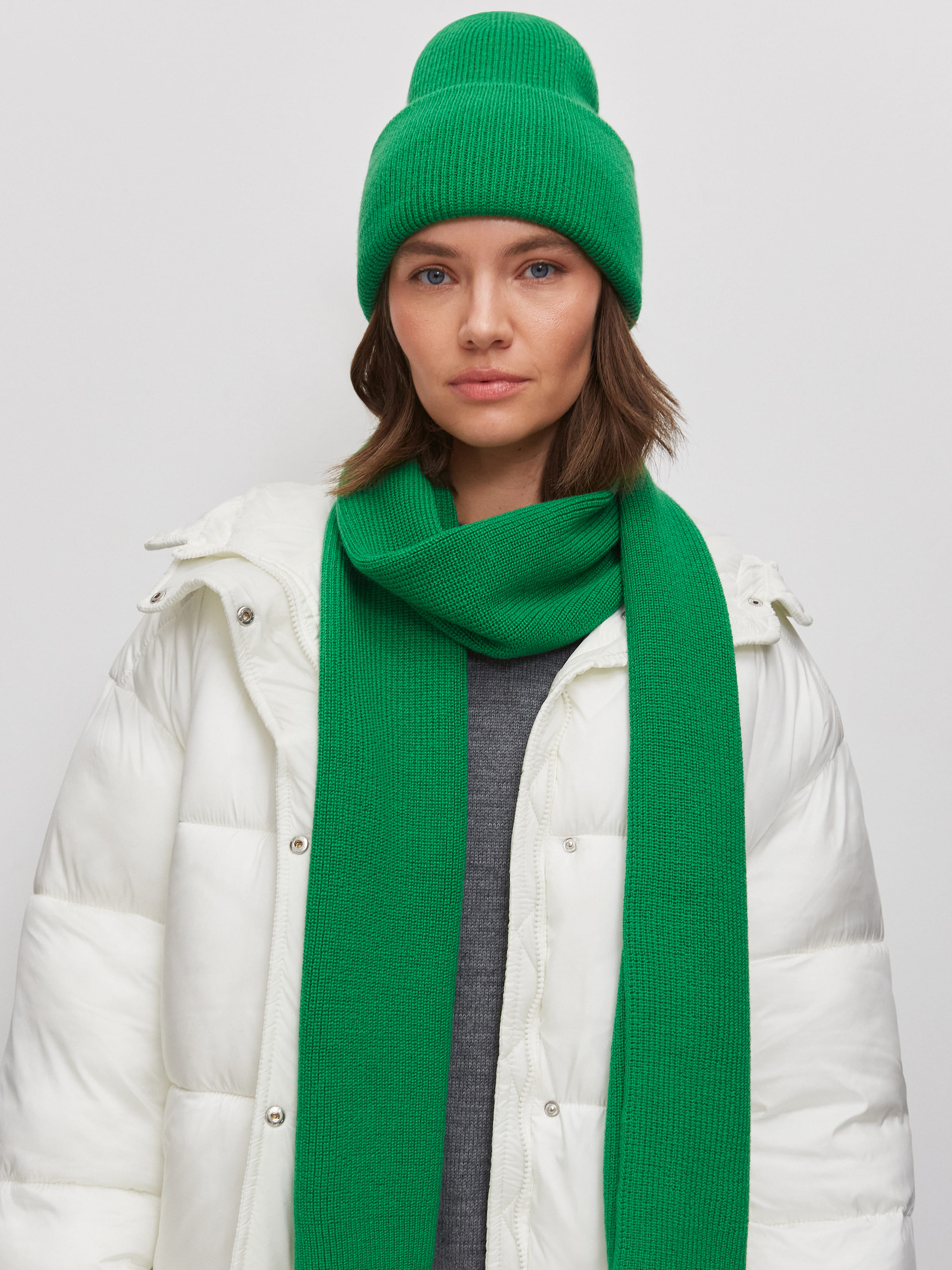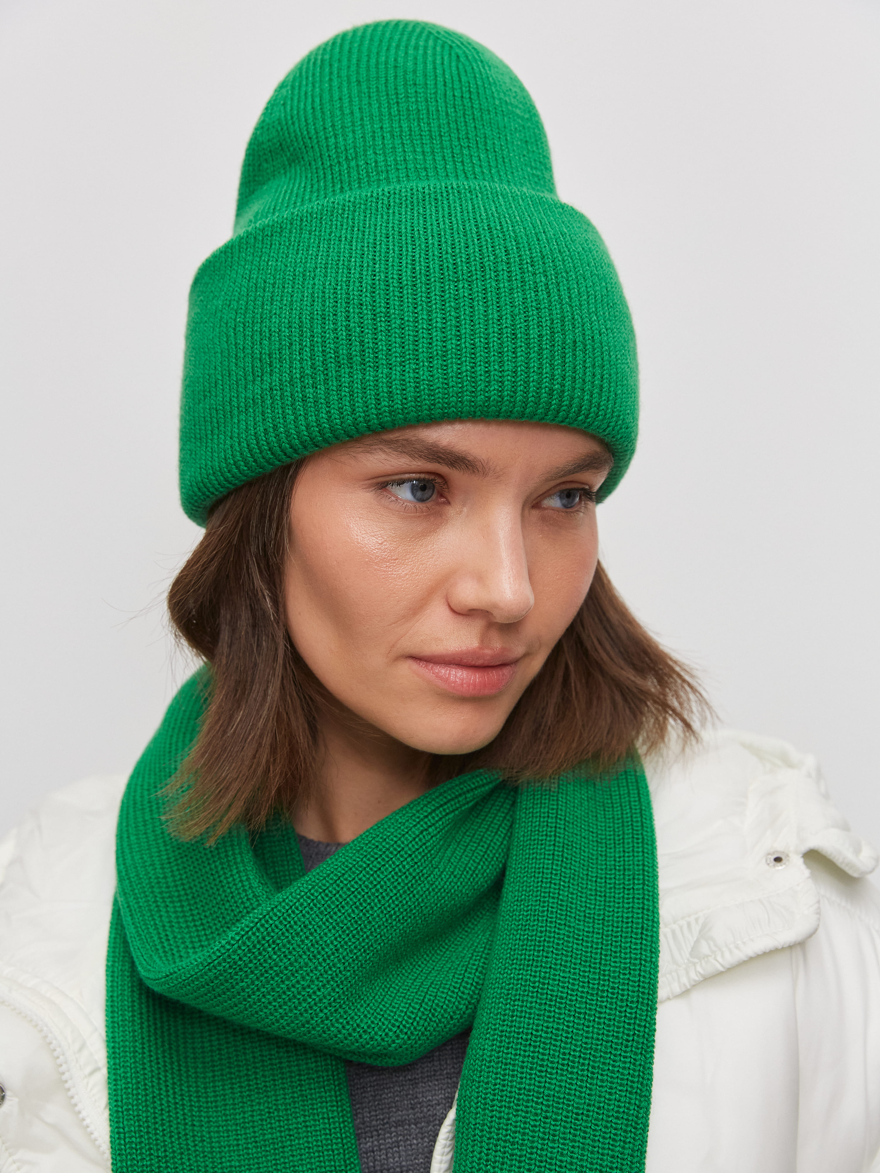 Теплый шерстяной дуэт из мягкой шапочки бини и классического плотного шарфа. Для этого комплекта мы выбрали предельно качественную и комфортную пряжу с небольшим процентом акрила. Не волнуйтесь, искусственные волокна только улучшают тактильность вещей. А еще они избавляют натуральную шерсть от некоторых неудобных нюансов – жесткости, покалывающего эффекта, быстрой потери формы.