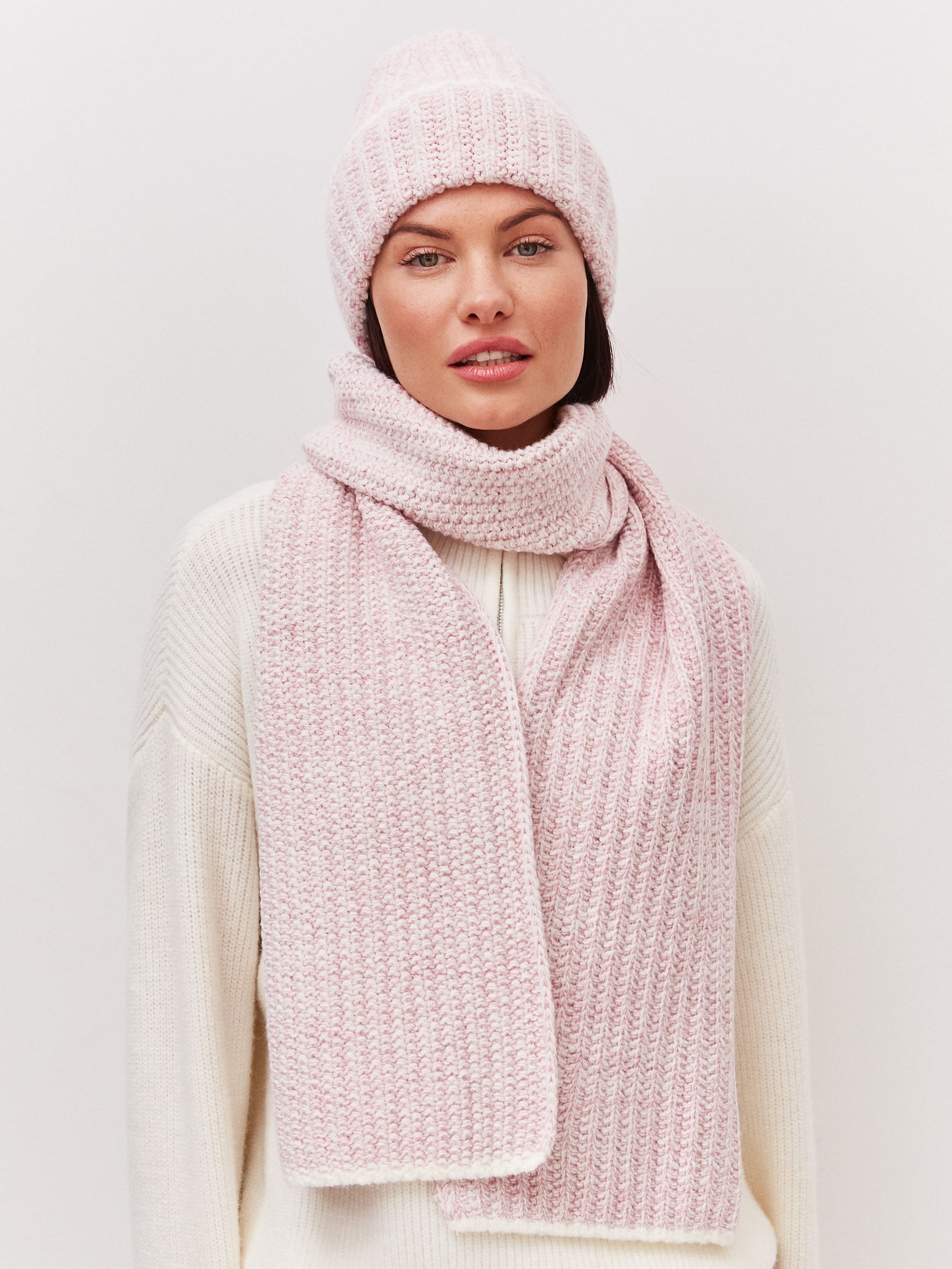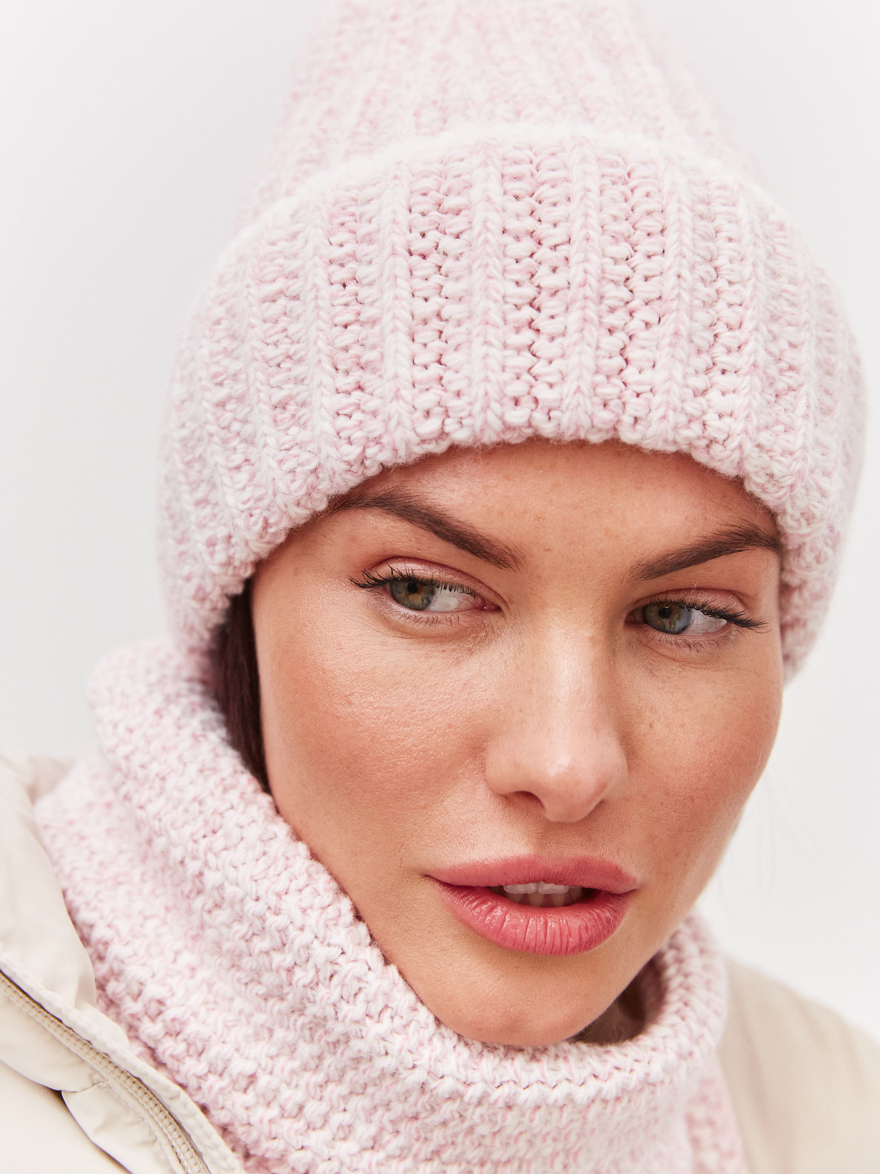Черри комплект (шапка+ шарф) трикотажный (белый/пудровый, 56-58)