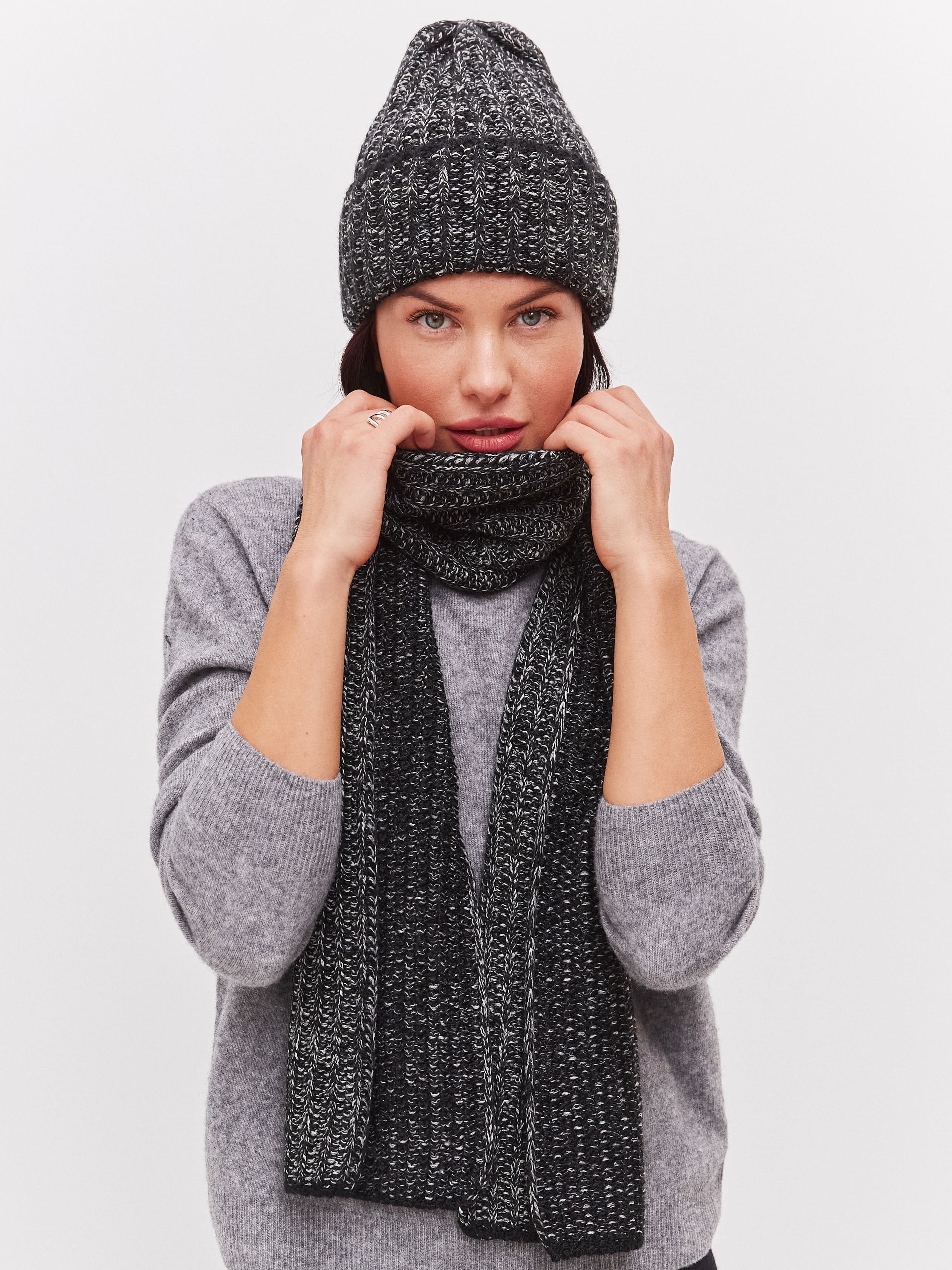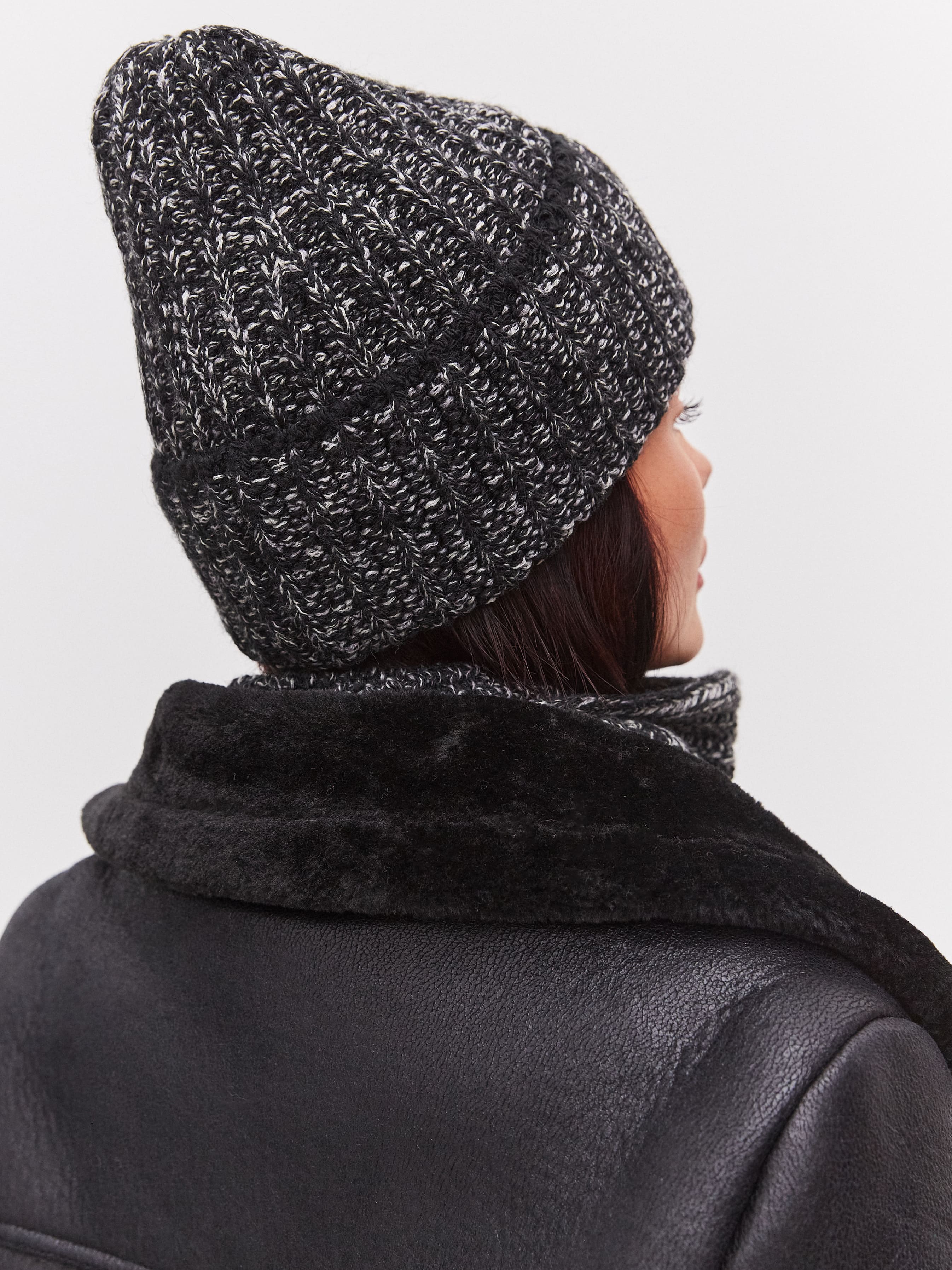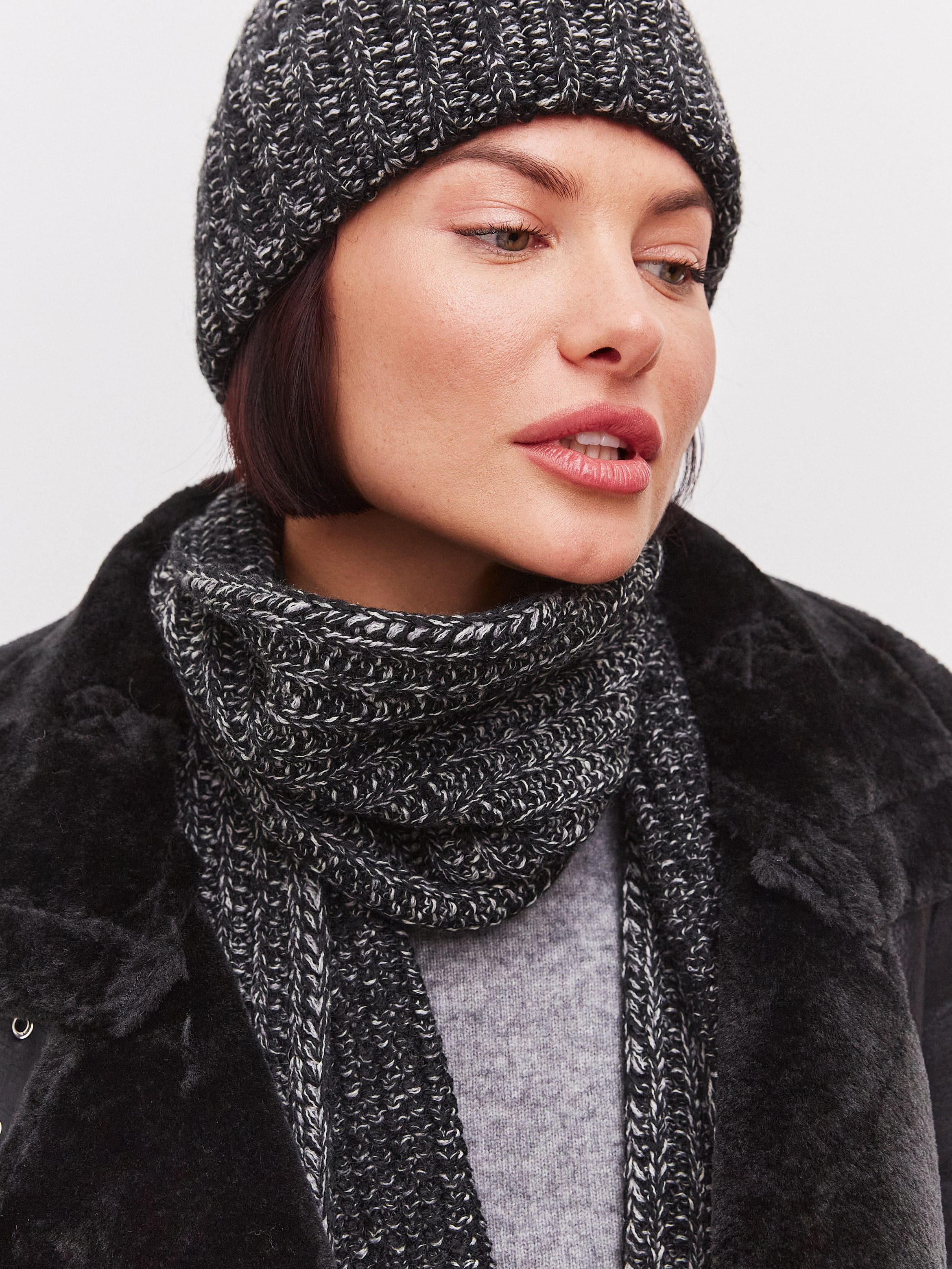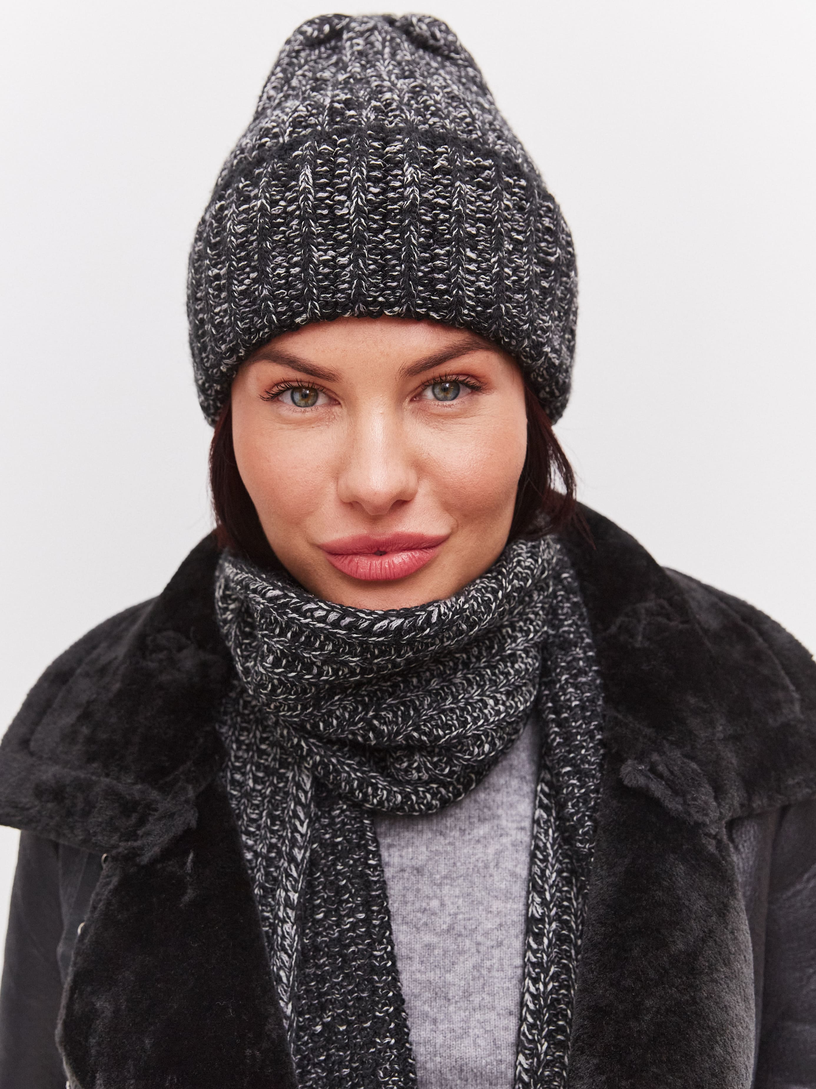 Черри комплект (шапка+ шарф) трикотажный (черный/белый, 56-58)