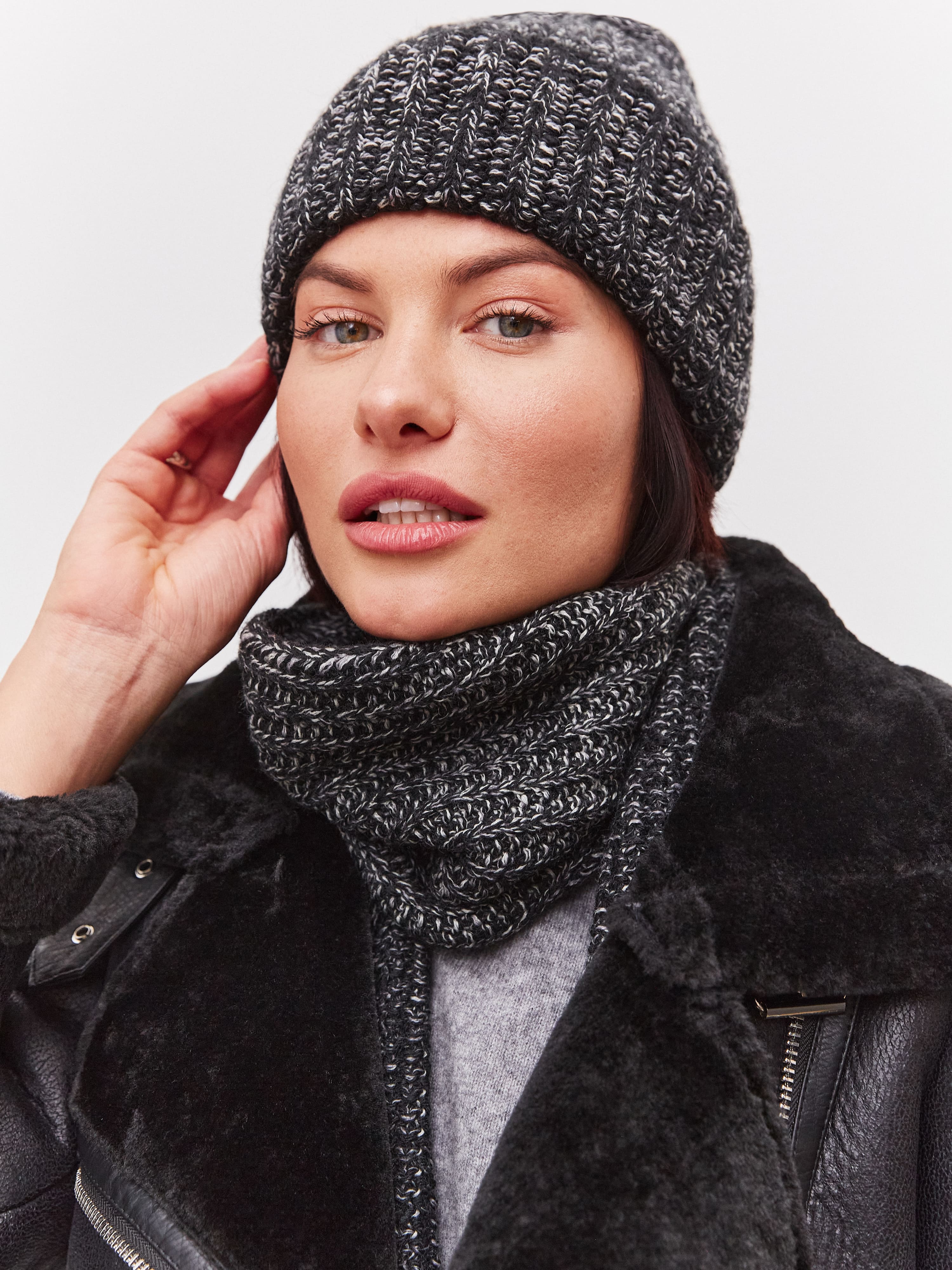 Этот уютный фактурный комплект мы посвятили самым холодным зимним дням. Длительный согревающий эффект в нем создает шерсть тонкорунного мериноса. Ее волокна отлично хранят тепло, позволяя воздуху свободно циркулировать между вязаными петельками. В таких вещах можно часами гулять по городу и зажигать на горнолыжном курорте – холодно точно не будет. Длина шарфа позволяет уложить его в несколько оборотов вокруг шеи. Бини-тыковка с вытянутой макушкой – это возможность стянуть волосы в пучок и полностью спрятать под шапкой.