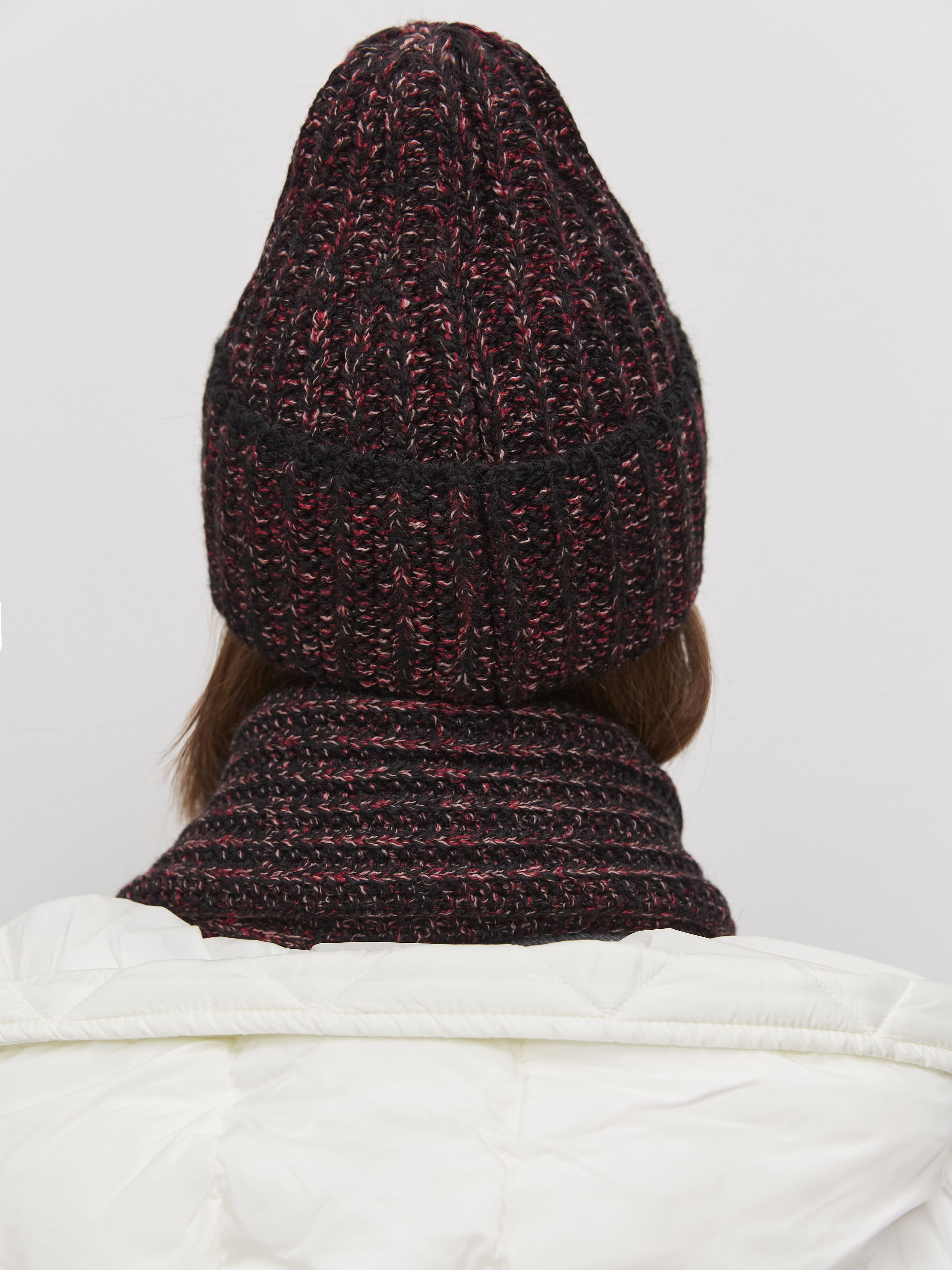 Черри комплект (шапка+ шарф) трикотажный (черный/бордо, 56-58)