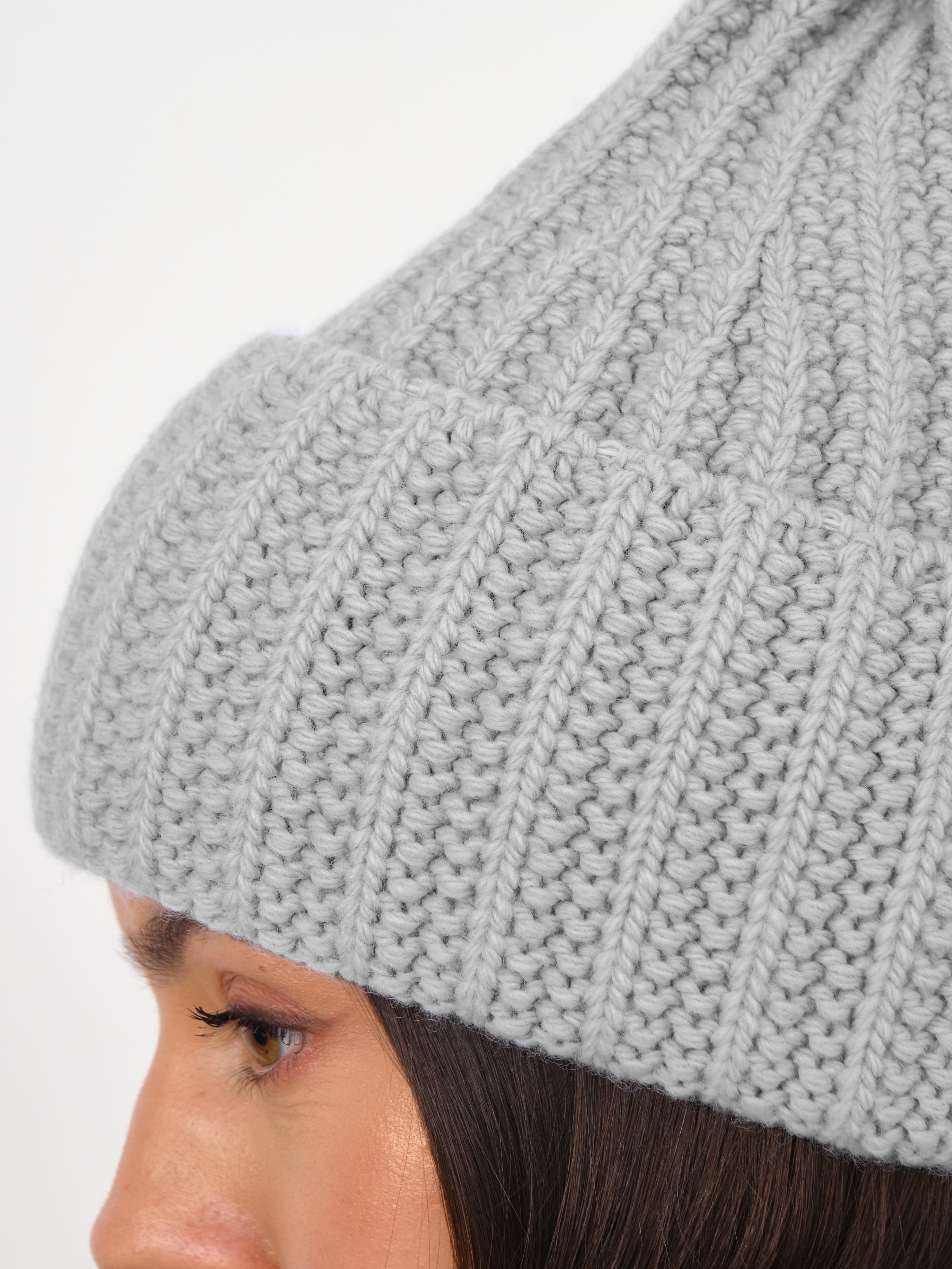 Милая шерстяная бини с широким отворотом, который закроет самые уязвимые точки головы и не позволит переохладиться. Техника крупной вязки придает модели приятную объемность. Удлиненная макушка – важная деталь образа. Теперь, чтобы казаться выше, не обязательно вставать на неудобный каблук. Шапочка визуально увеличивает рост, благодаря чему вертикаль силуэта приобретает дополнительное изящество.