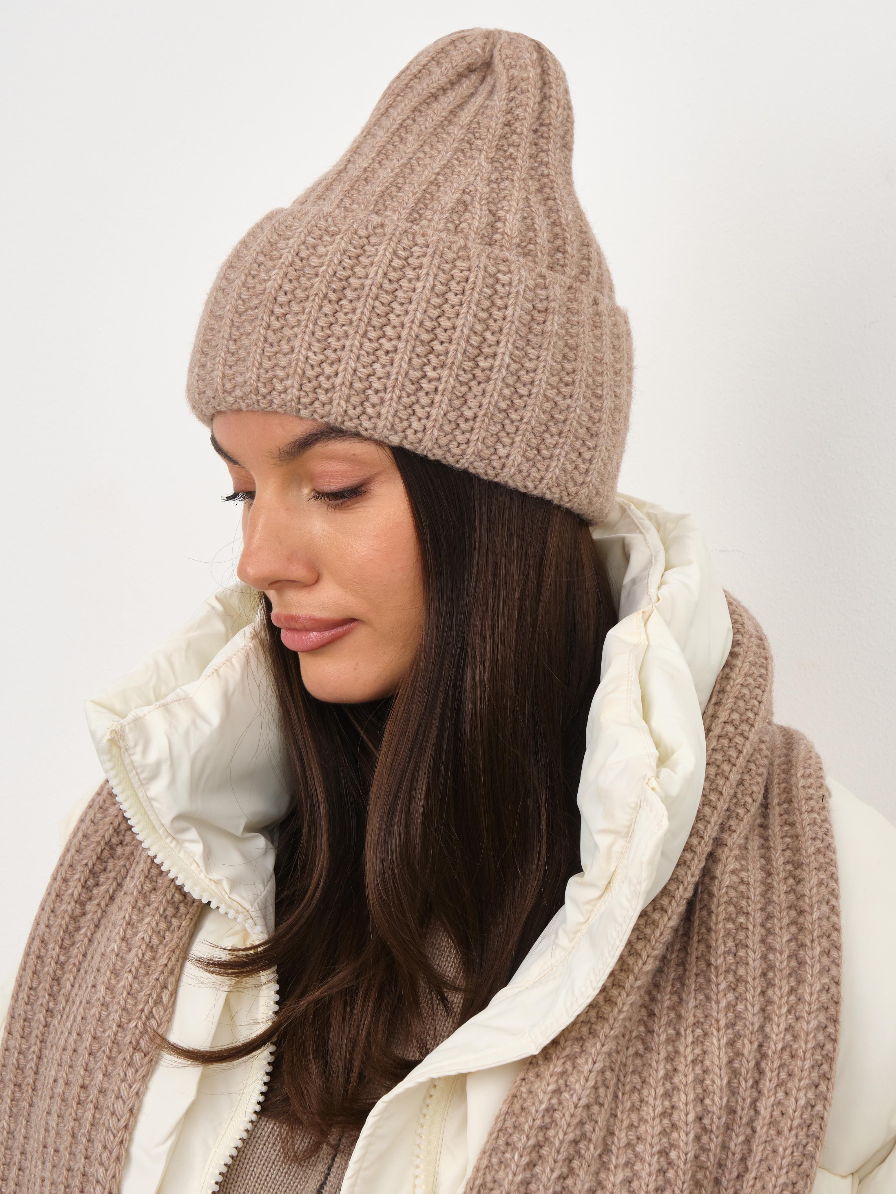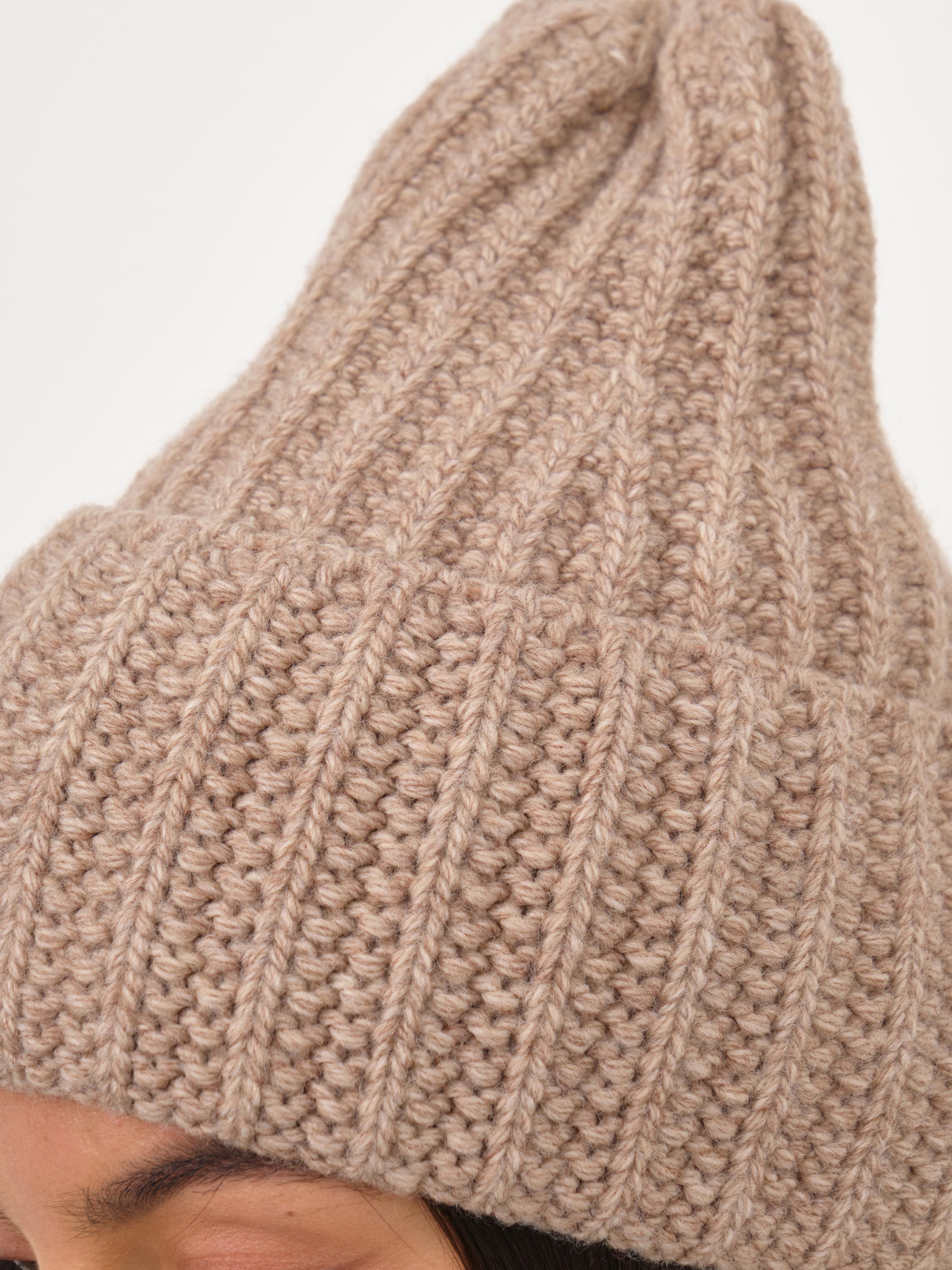 Милая шерстяная бини с широким отворотом, который закроет самые уязвимые точки головы и не позволит переохладиться. Техника крупной вязки придает модели приятную объемность. Удлиненная макушка – важная деталь образа. Теперь, чтобы казаться выше, не обязательно вставать на неудобный каблук. Шапочка визуально увеличивает рост, благодаря чему вертикаль силуэта приобретает дополнительное изящество.