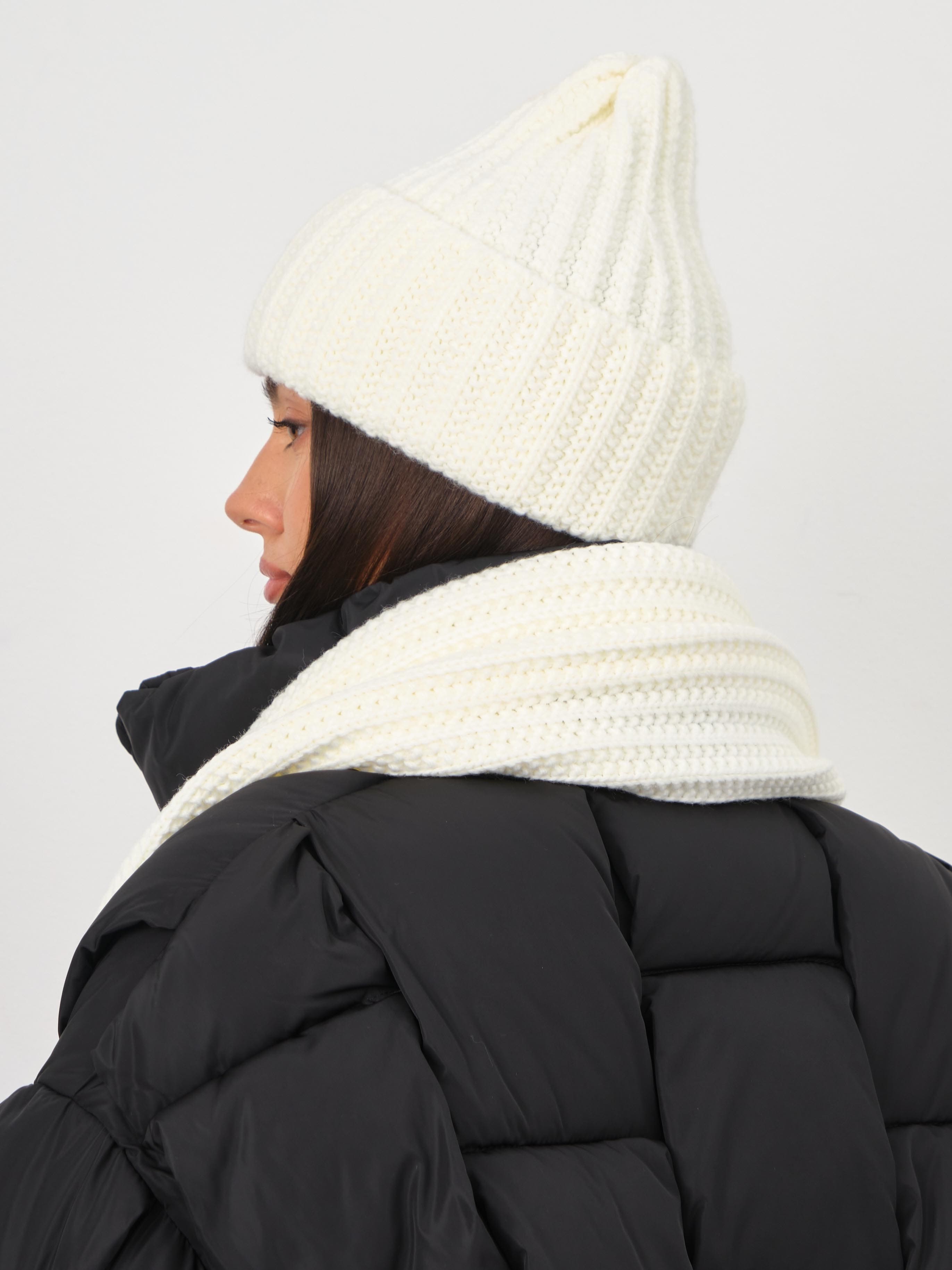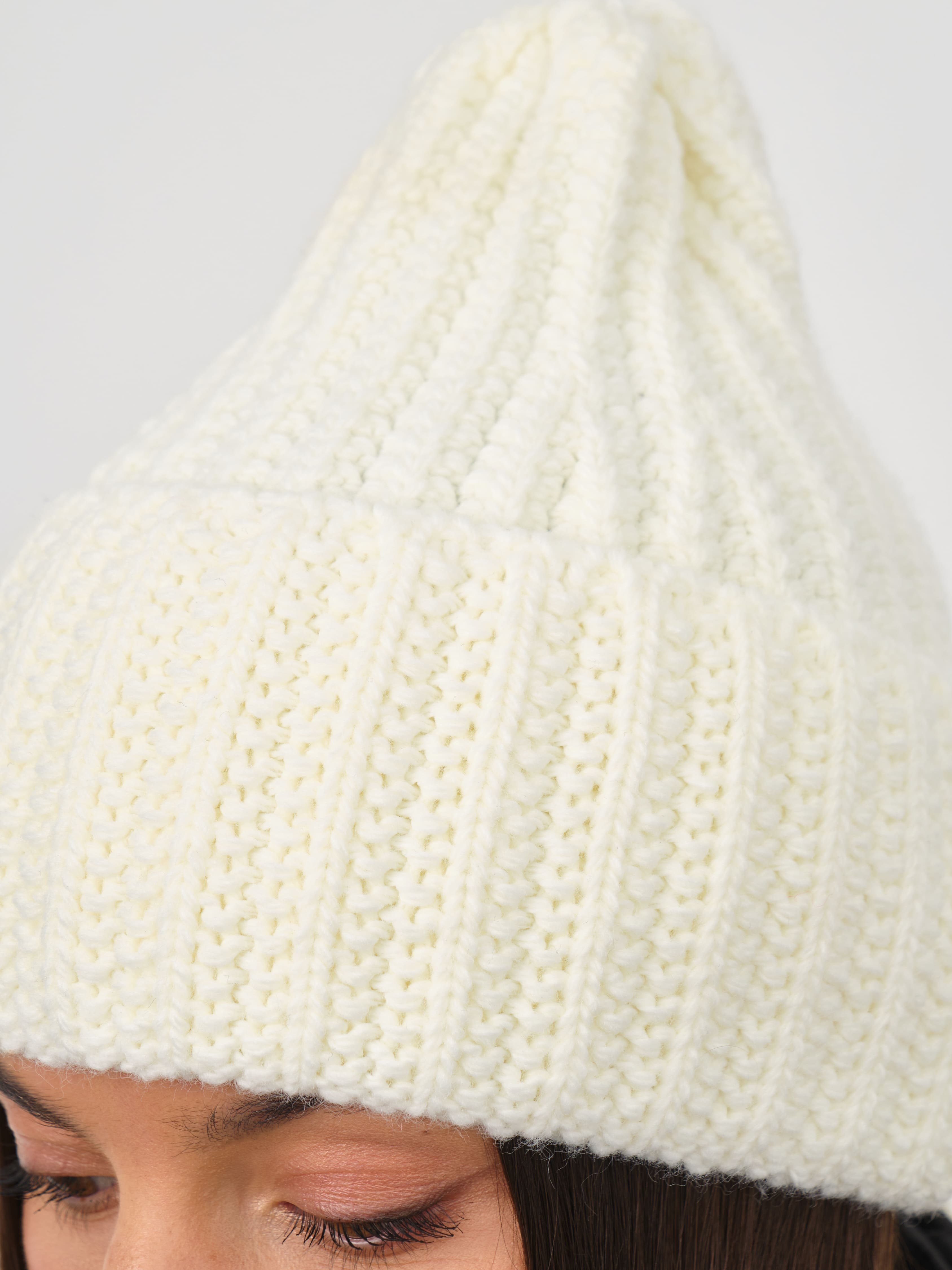Милая шерстяная бини с широким отворотом, который закроет самые уязвимые точки головы и не позволит переохладиться. Техника крупной вязки придает модели приятную объемность. Удлиненная макушка – важная деталь образа. Теперь, чтобы казаться выше, не обязательно вставать на неудобный каблук. Шапочка визуально увеличивает рост, благодаря чему вертикаль силуэта приобретает дополнительное изящество.