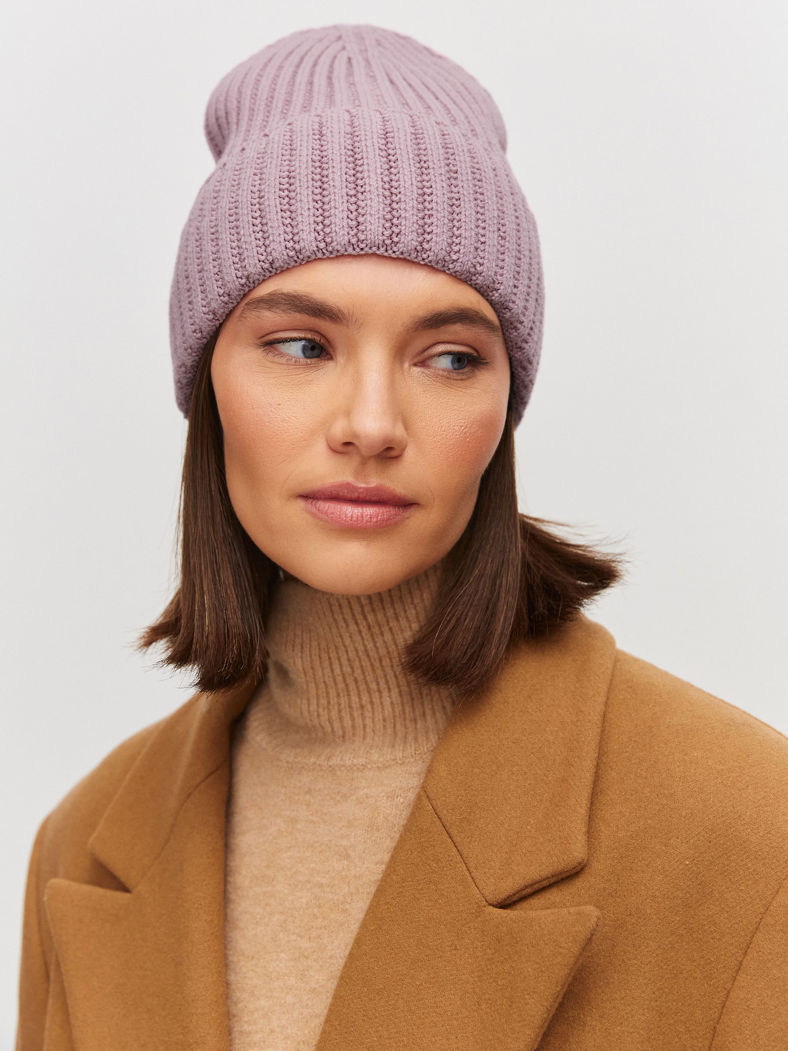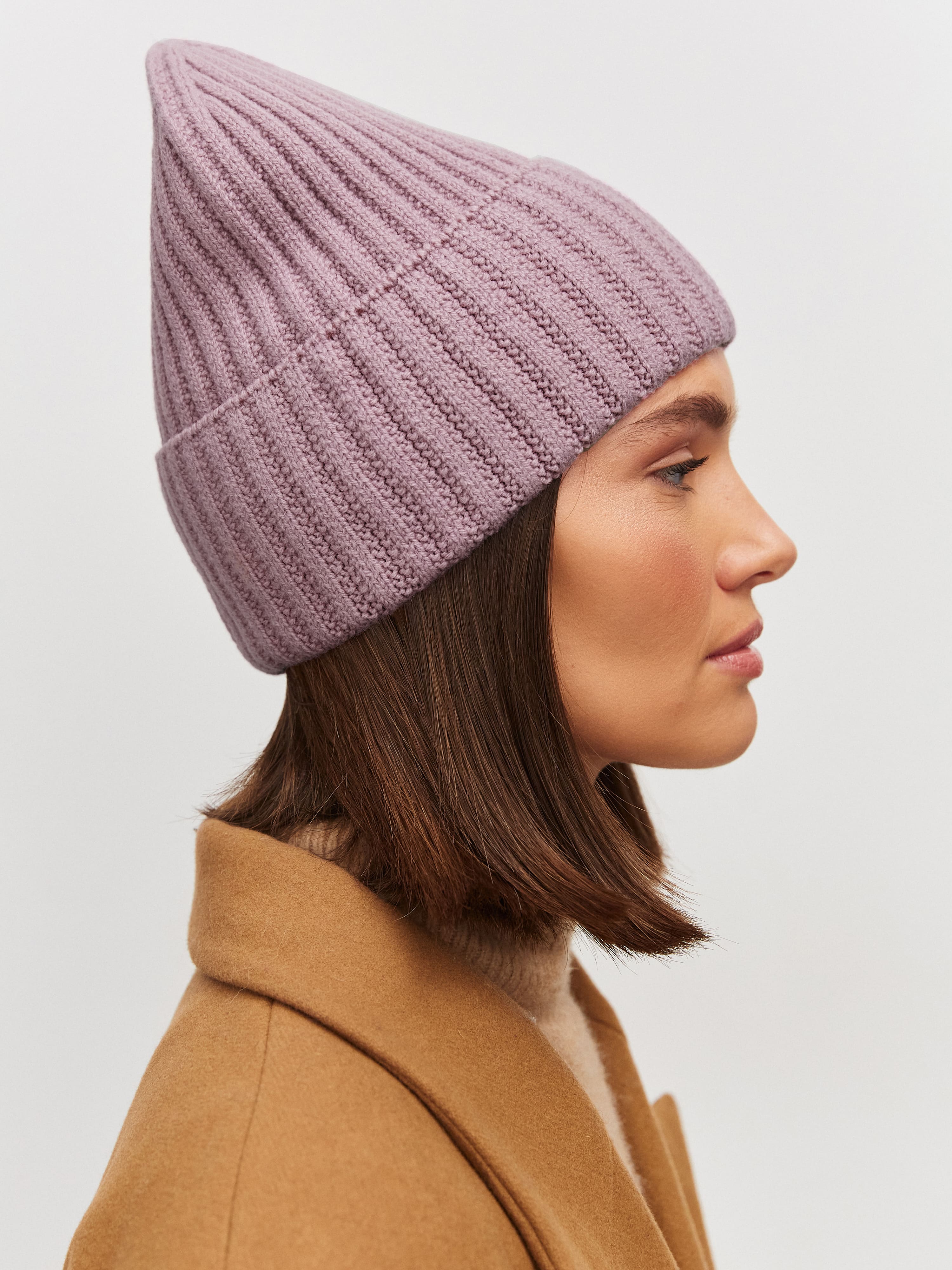 Наша плотная шапка из уютной полушерсти обладает сразу двумя достоинствами. Это, во-первых, широкий отворот, который выступает защитным элементом, оберегающим уши и основание шеи от ветра. А во-вторых, – оригинальная форма макушки, которую мы сделали высокой и плоской одновременно. Так что, если нужен теплый головной убор, который добавит несколько сантиметров роста и визуально вытянет силуэт – он перед вами.