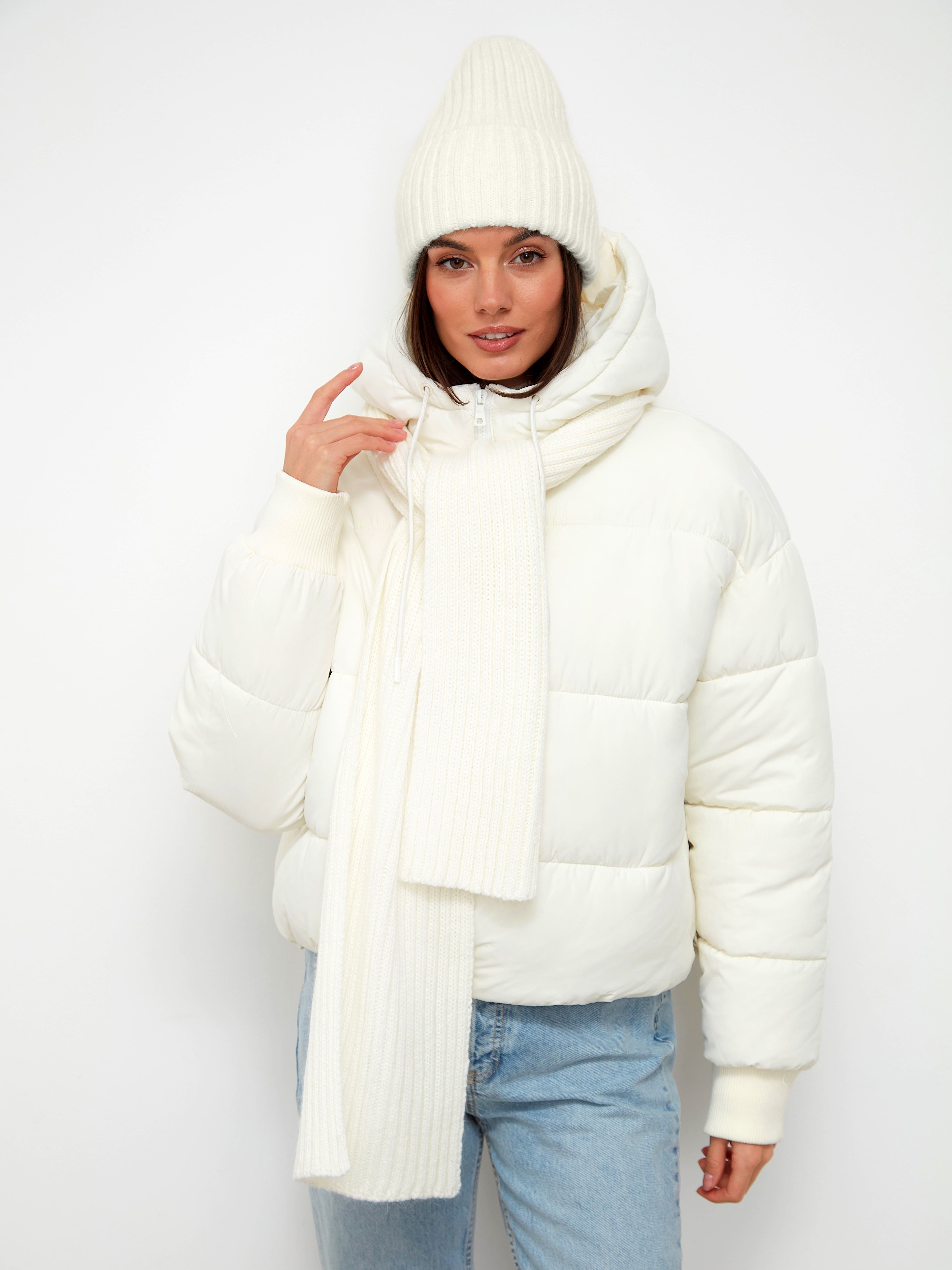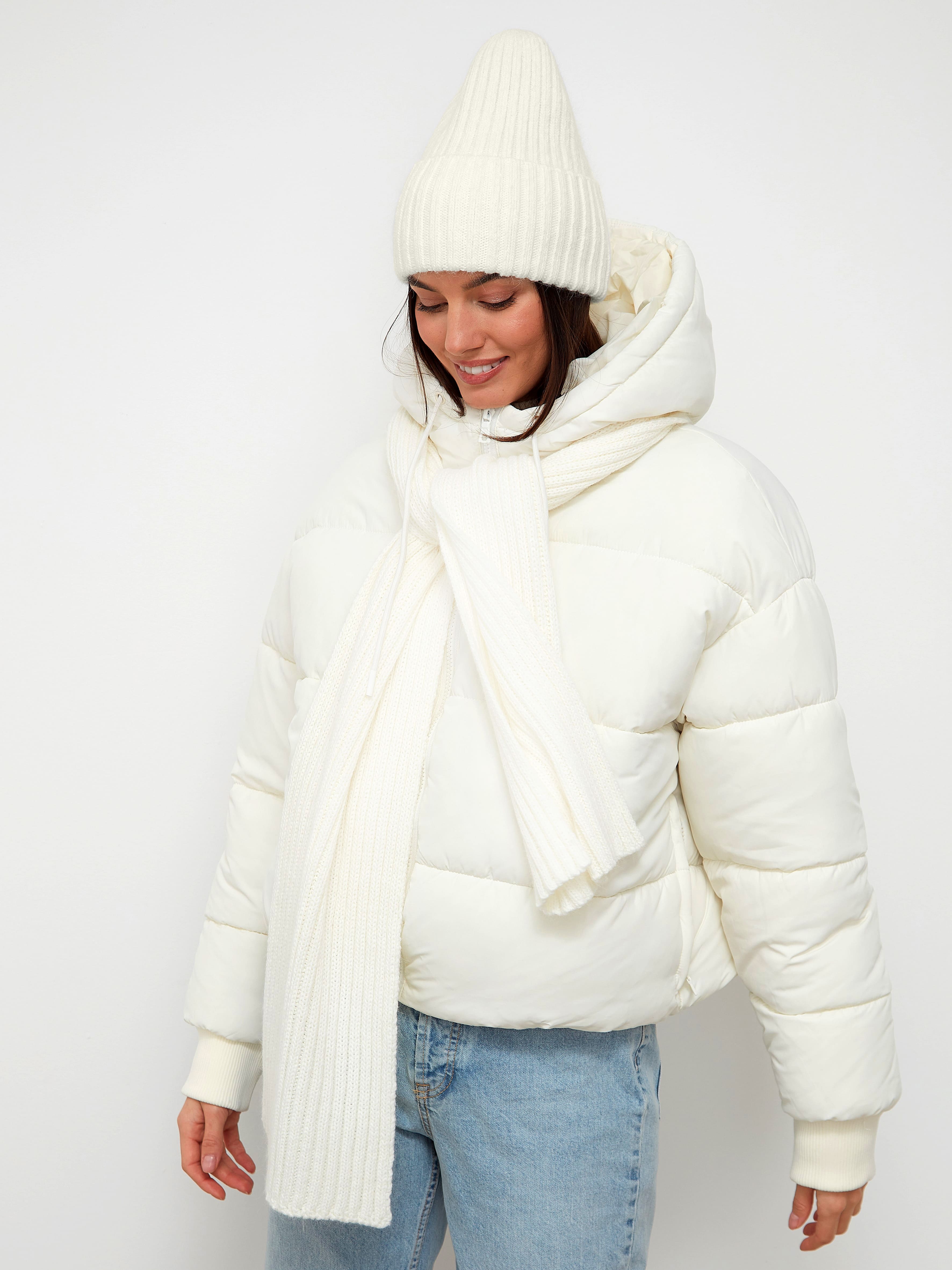 Комплект из шапки-бини и шарфа с шерстью мериноса Нуга