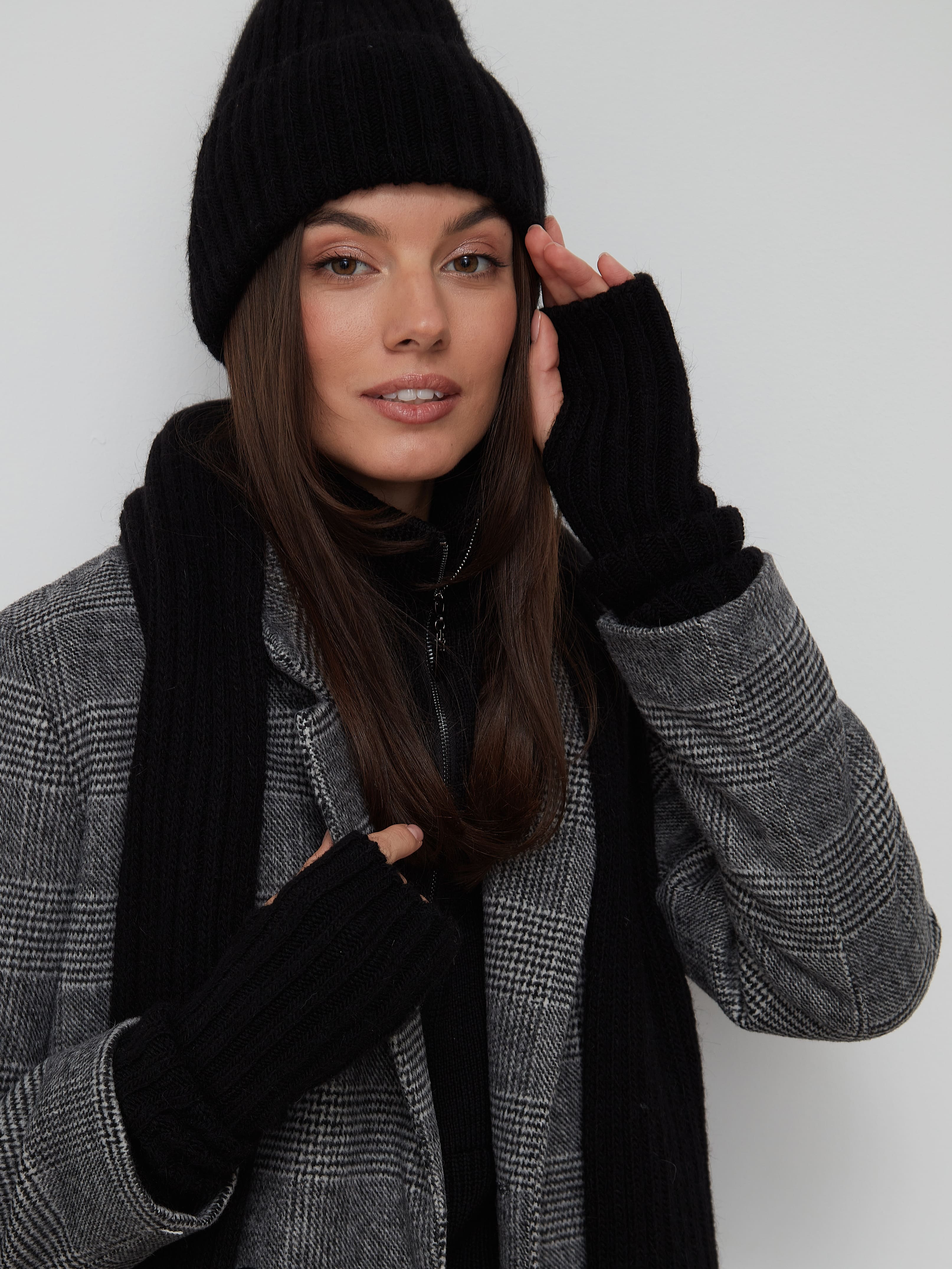 Комплект из шапки-бини и шарфа с шерстью мериноса Нуга