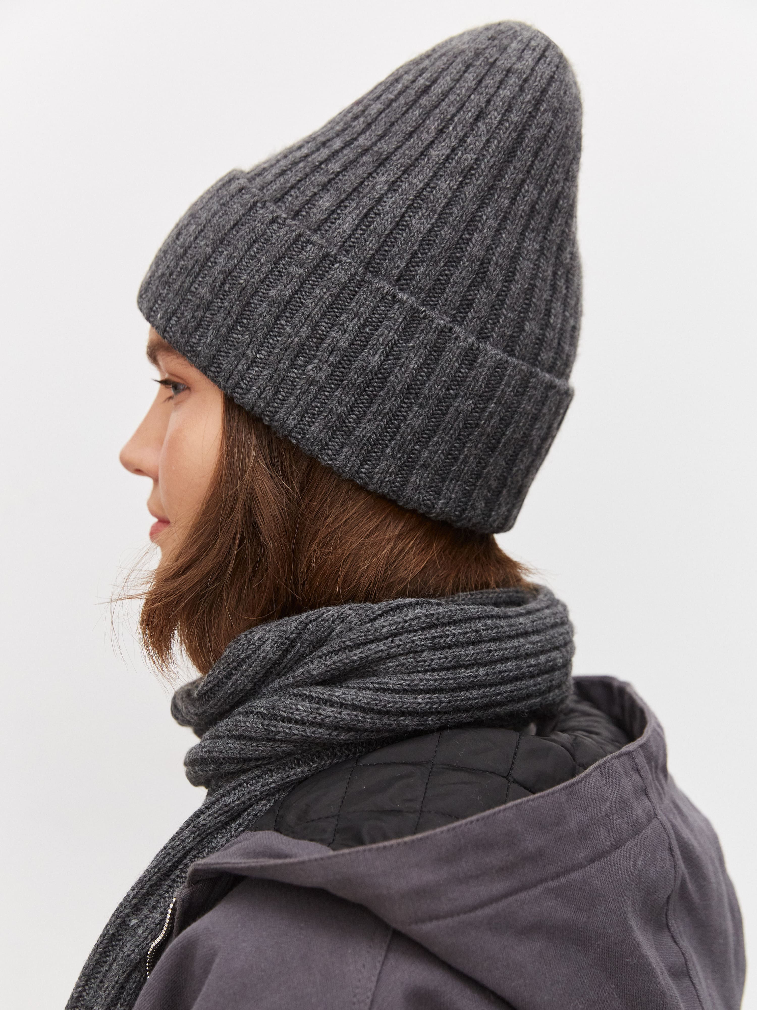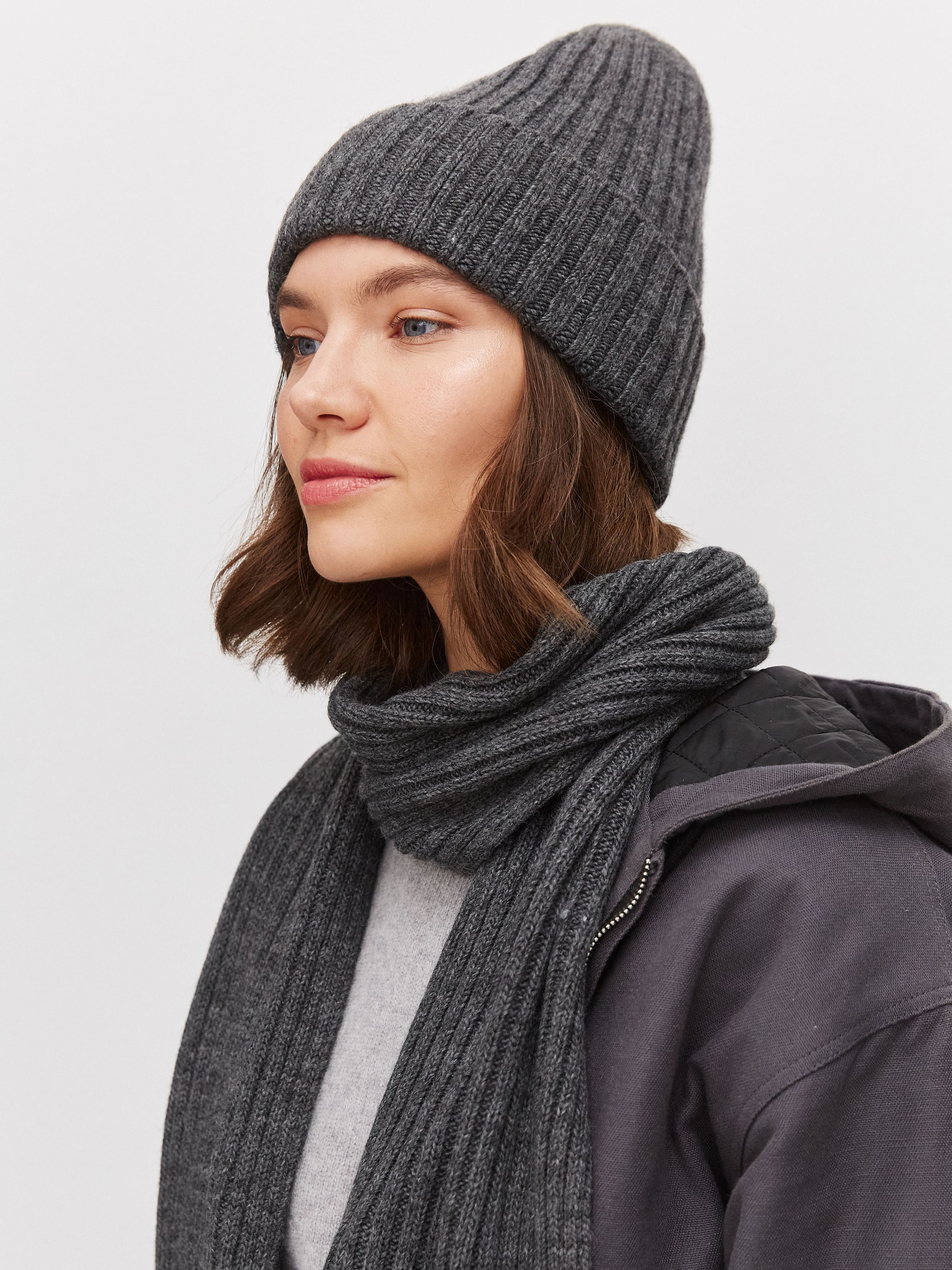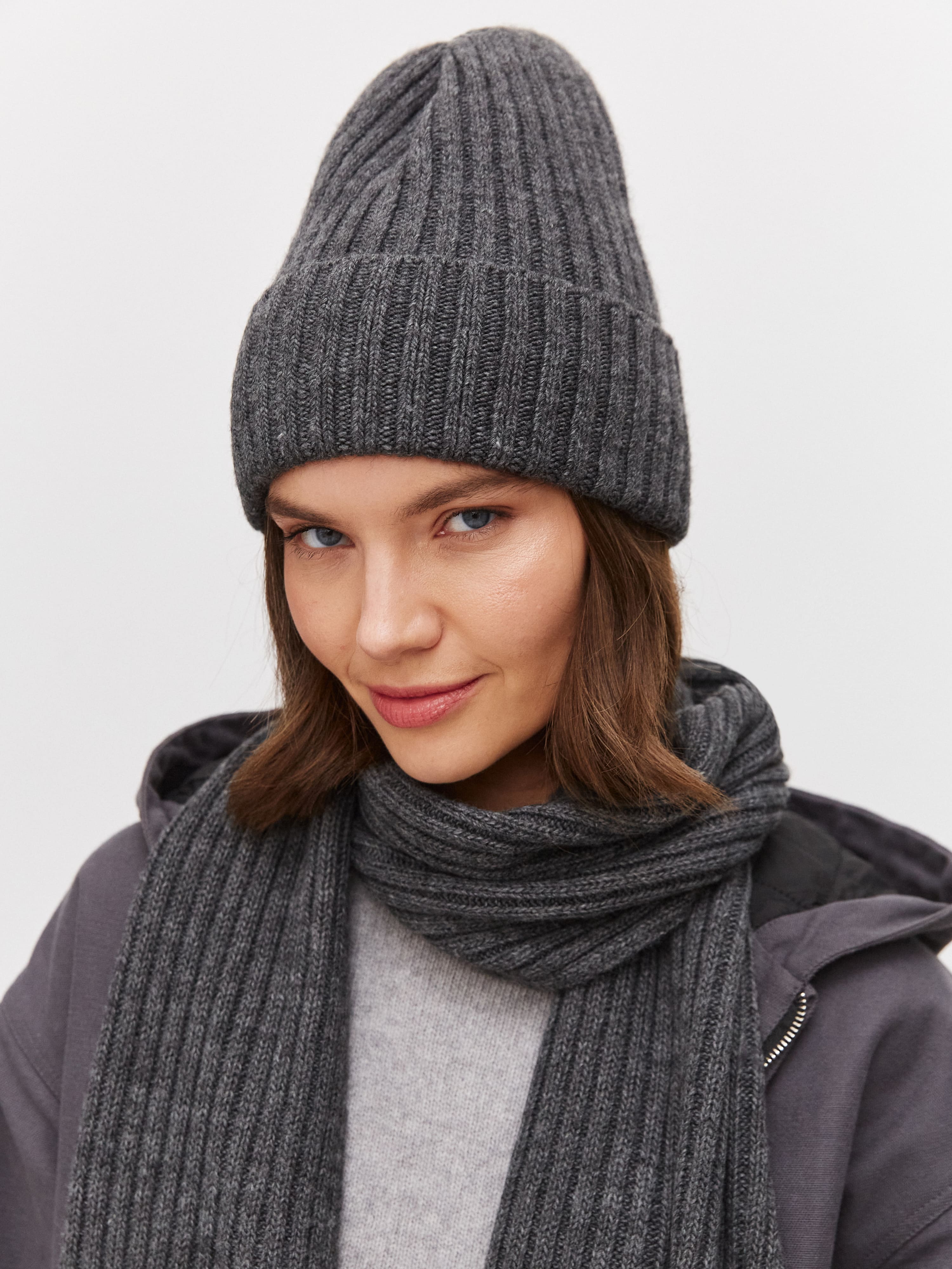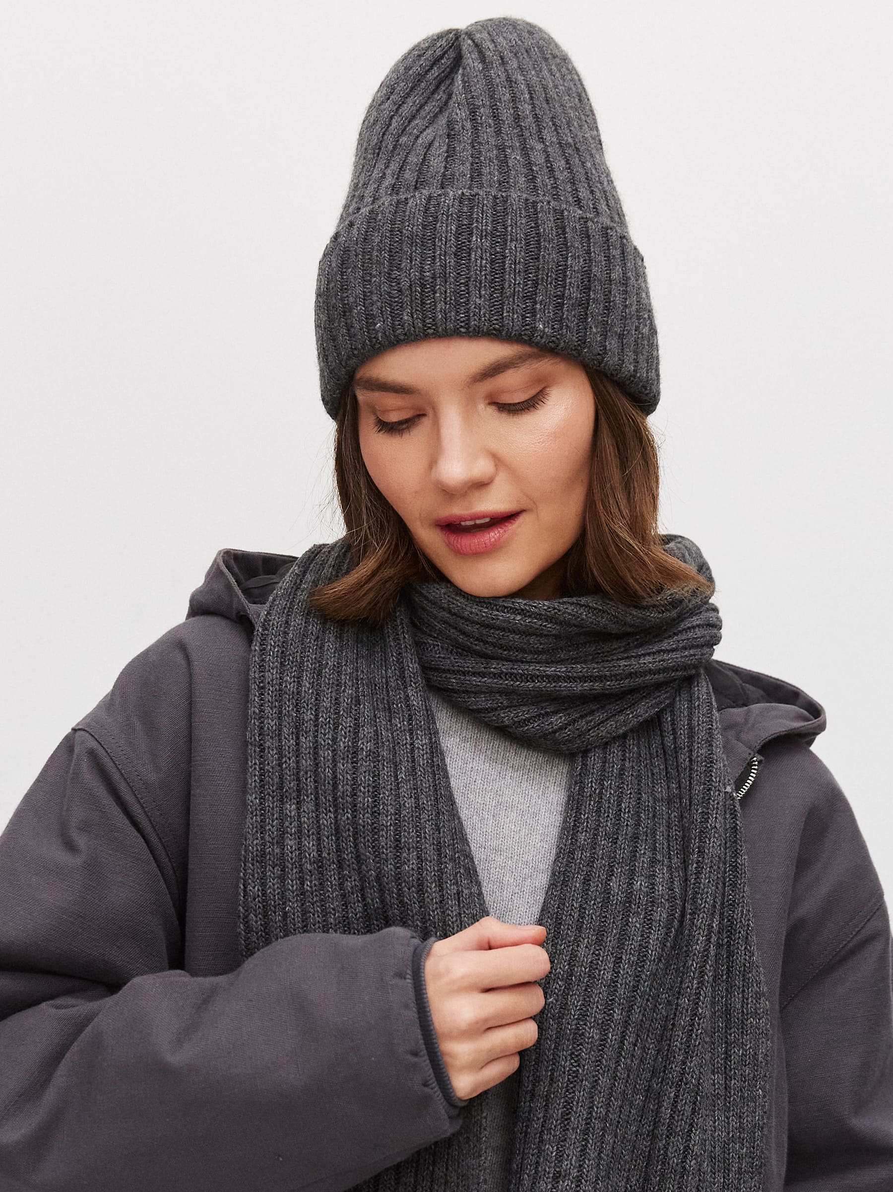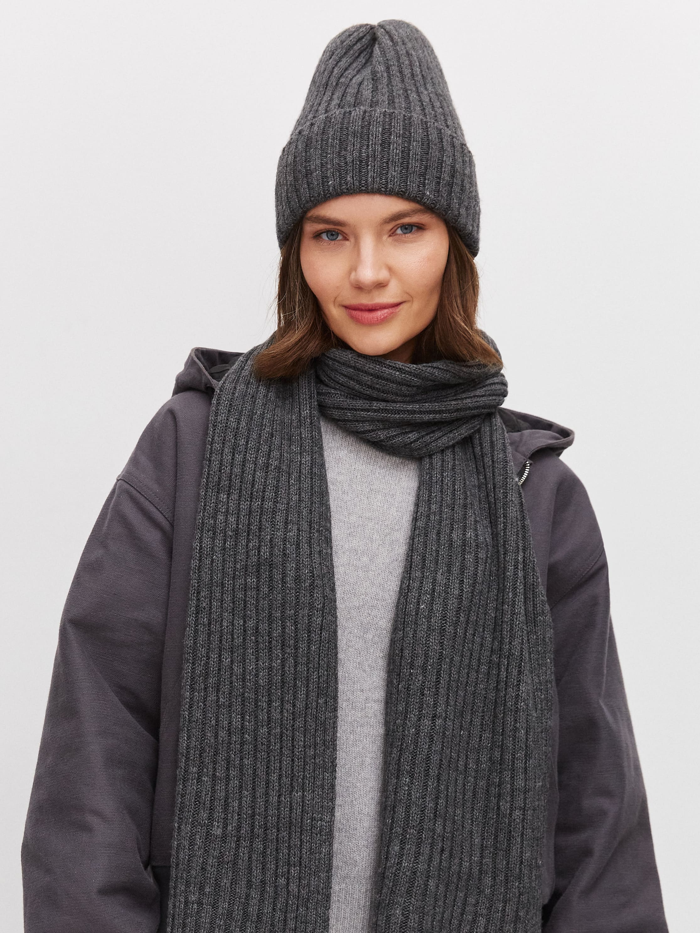 Комплект из шапки-бини и шарфа с шерстью мериноса Нуга