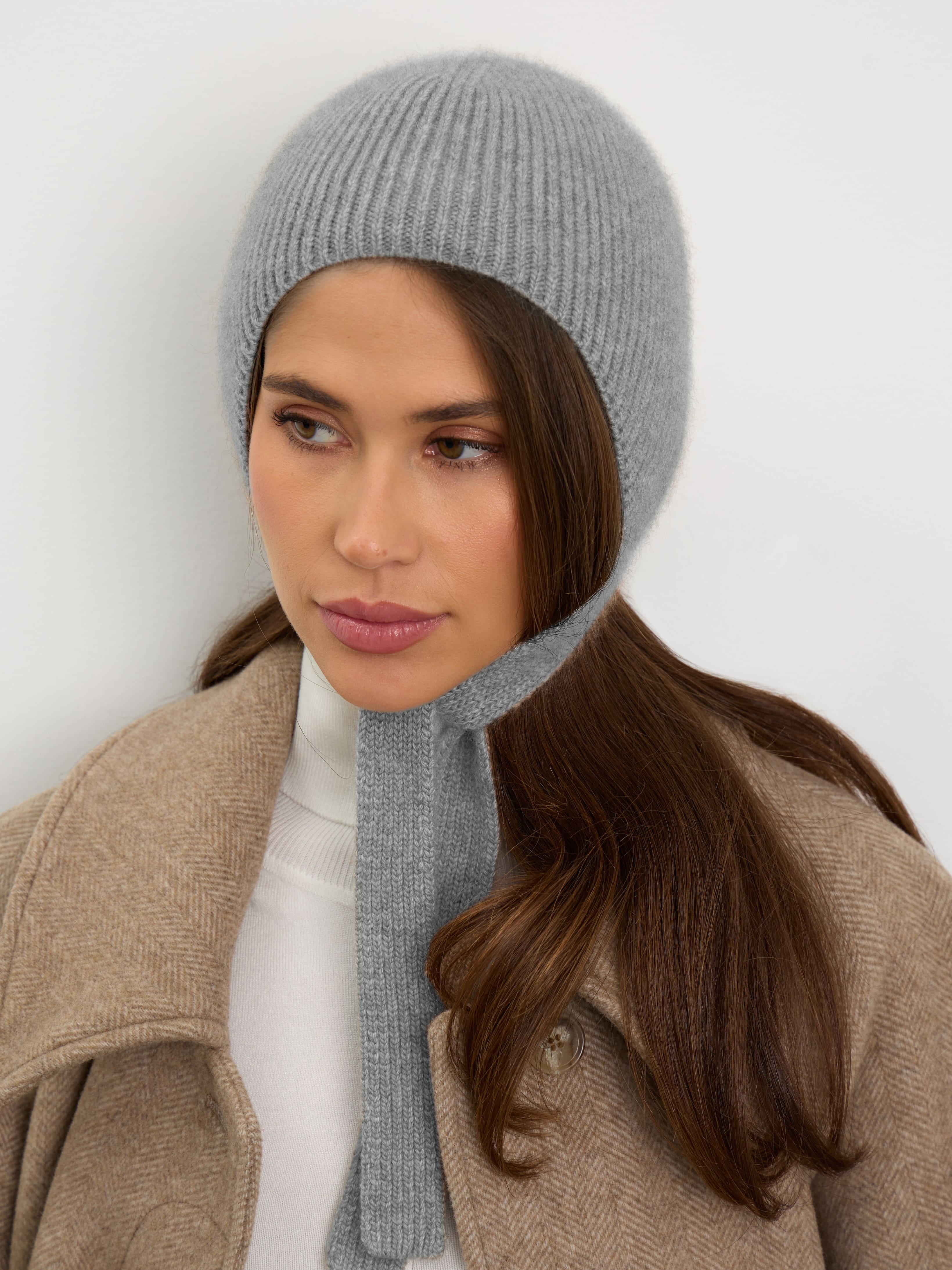 Милый чепчик из пушистой кашемировой пряжи. Мягкий, как облачко, и невыразимо приятный, как все натуральные вещи. Круглая спортивная форма моделирует плавный контур силуэта.