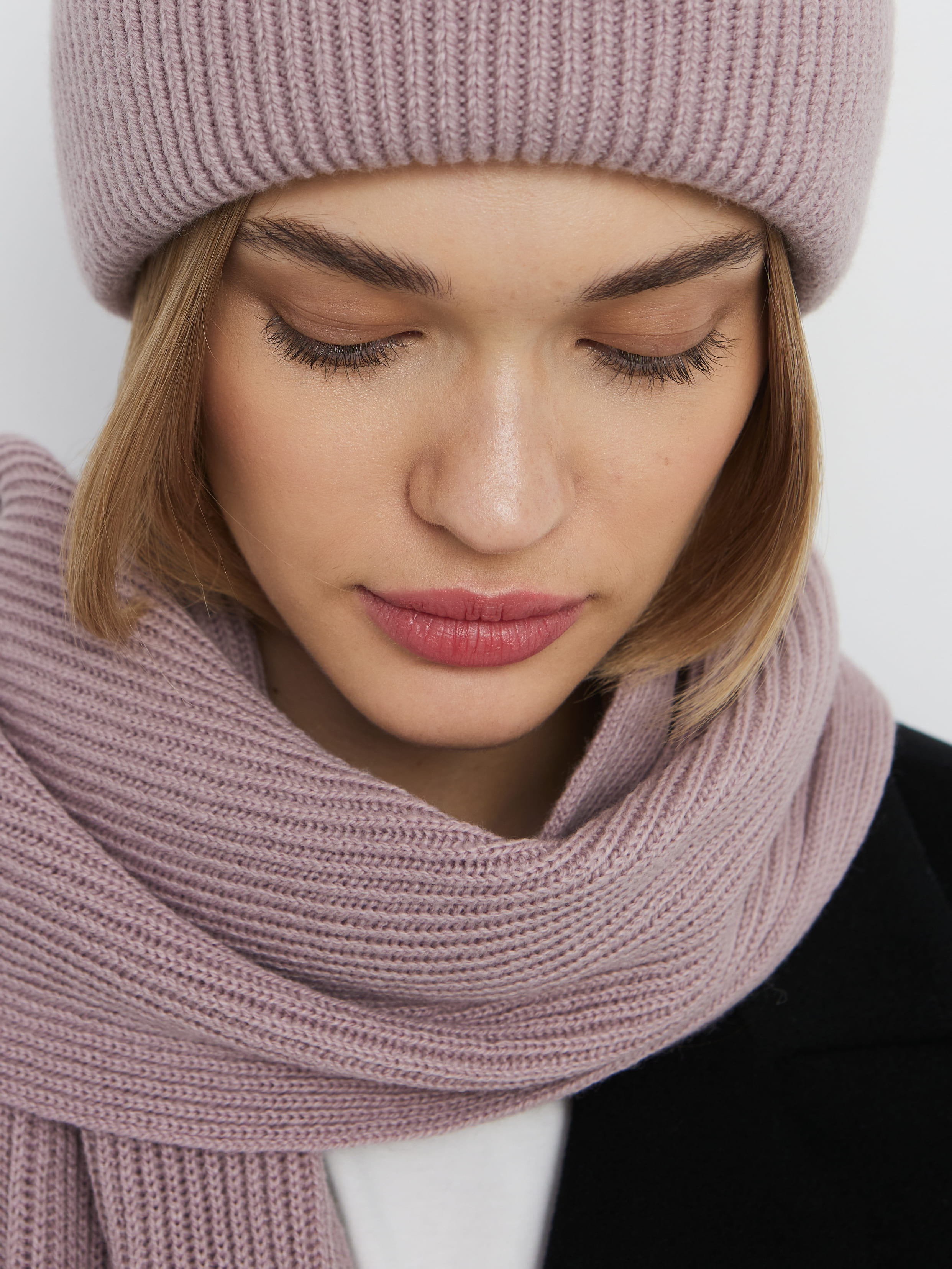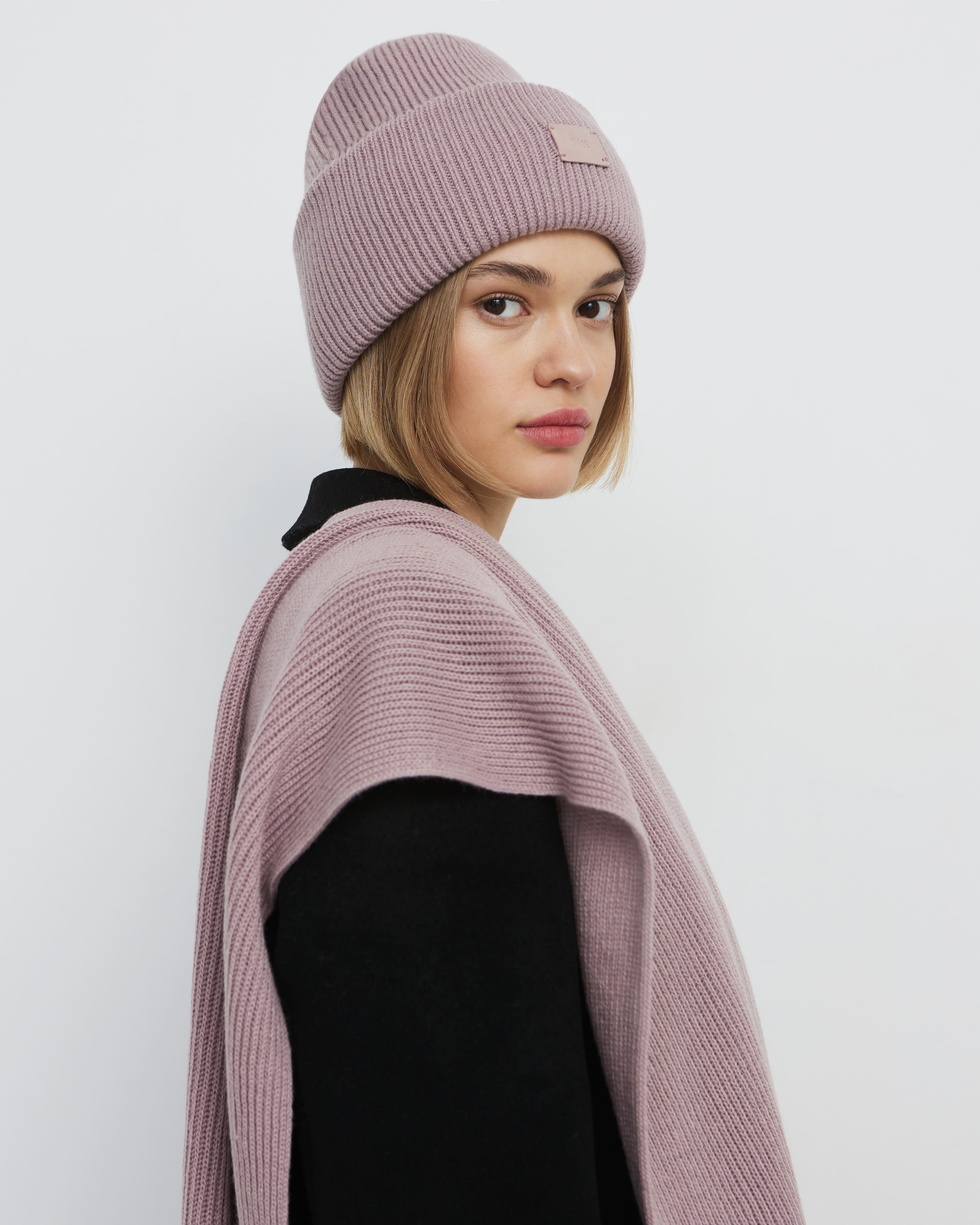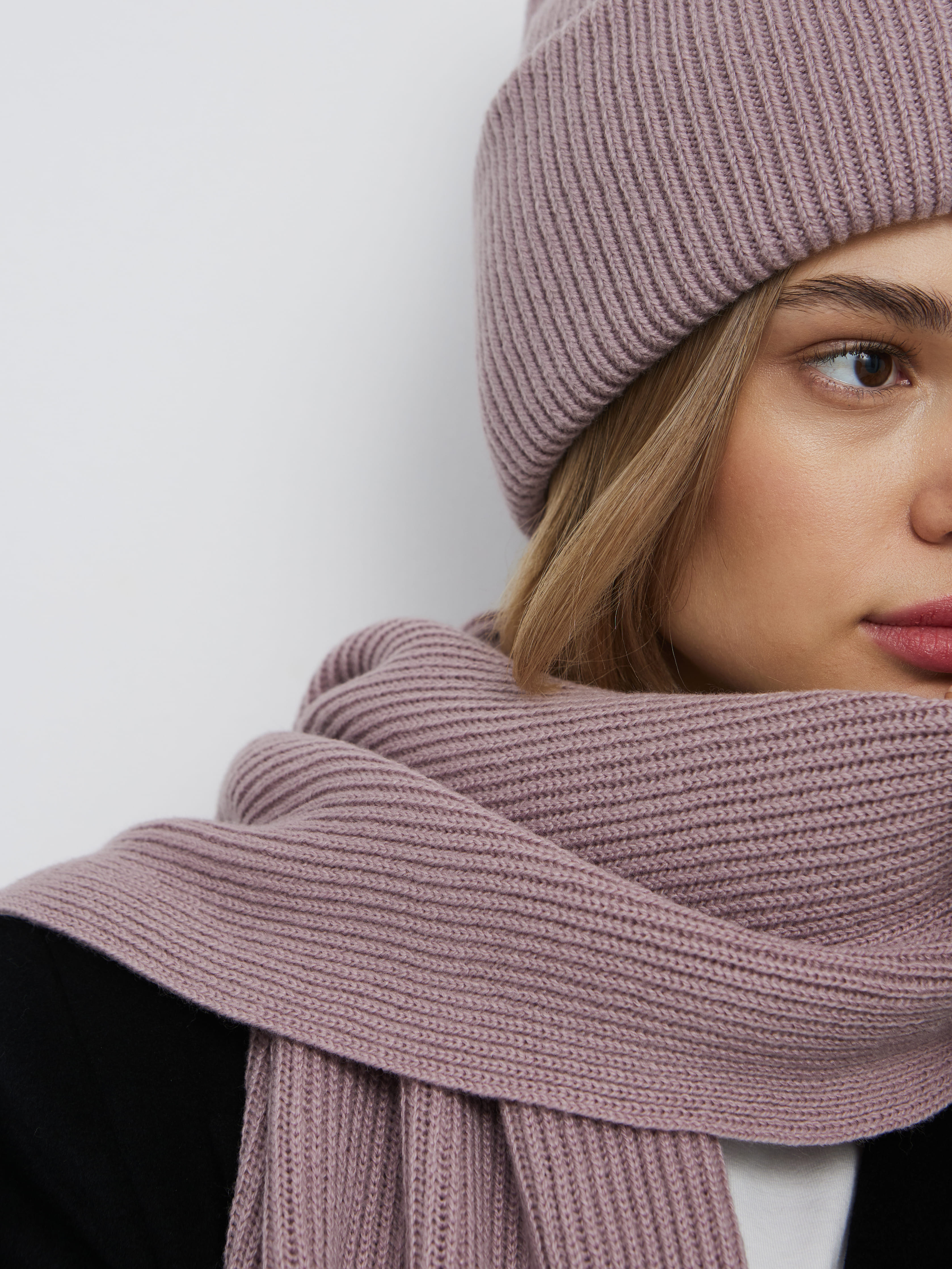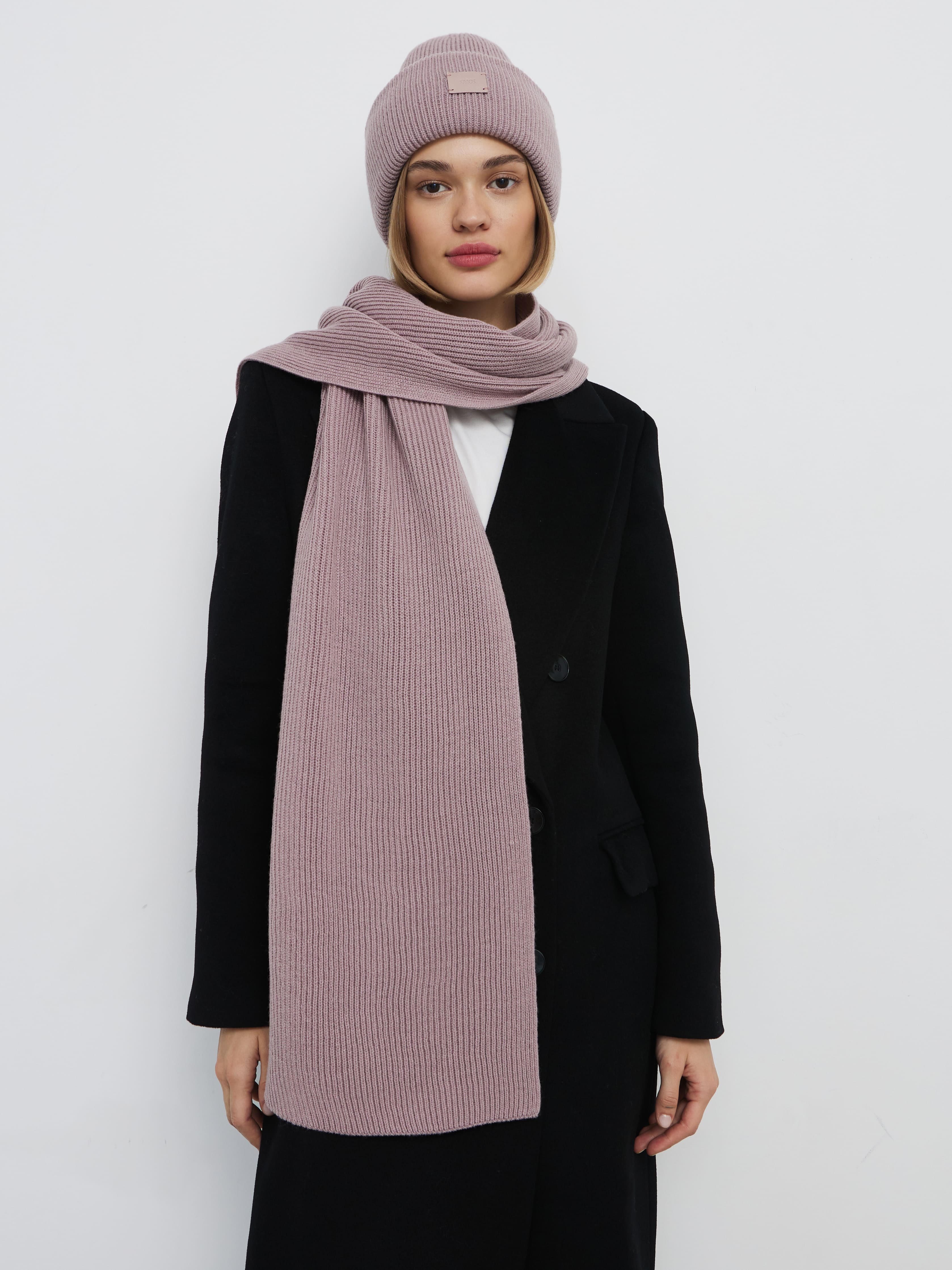 В этом аккуратном теплом комплекте целых 70% мериносовой шерсти. Это делает его идеальным и для первых осенних заморозков, и для зимних метелей. Благодаря плотному переплетению нитей, аксессуары не просто хорошо защищают от ветра, но и не теряют форму после пары стирок. Объемный, связанный в мелкий рубчик, шарф станет прекрасным дополнением к любимому пуховику. А стильная шапка бини с удобным отворотом и плотной посадкой прекрасно защитит шейно-ушную зону.