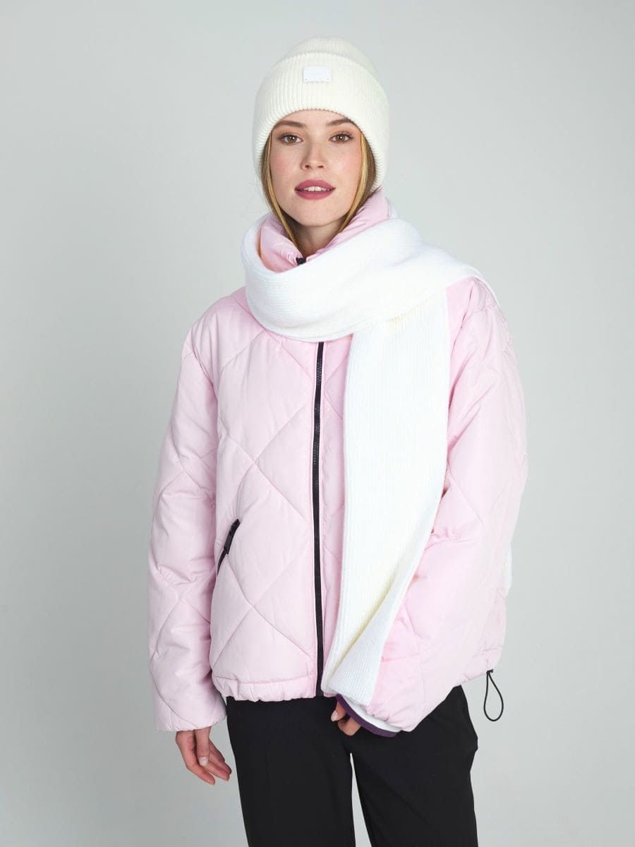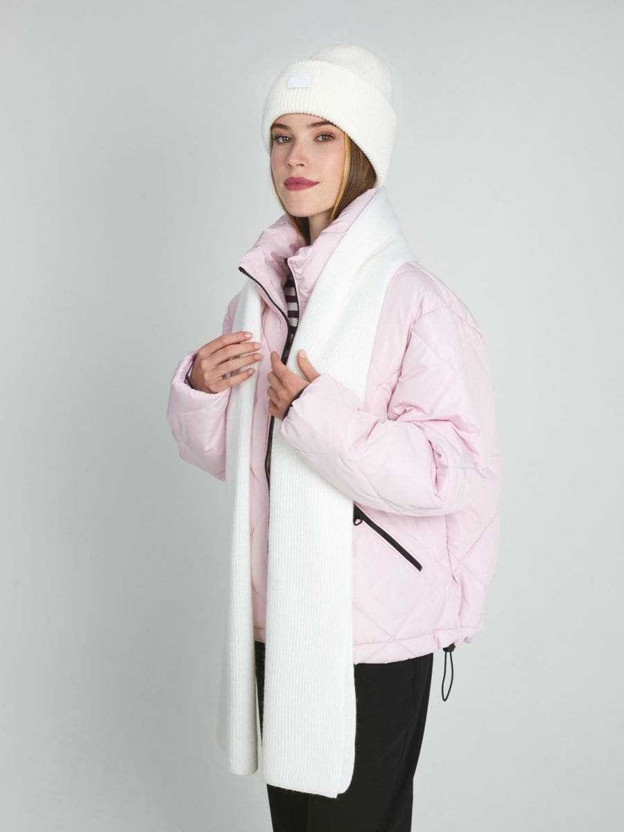 В этом аккуратном теплом комплекте целых 70% мериносовой шерсти. Это делает его идеальным и для первых осенних заморозков, и для зимних метелей. Благодаря плотному переплетению нитей, аксессуары не просто хорошо защищают от ветра, но и не теряют форму после пары стирок. Объемный, связанный в мелкий рубчик, шарф станет прекрасным дополнением к любимому пуховику. А стильная шапка бини с удобным отворотом и плотной посадкой прекрасно защитит шейно-ушную зону.