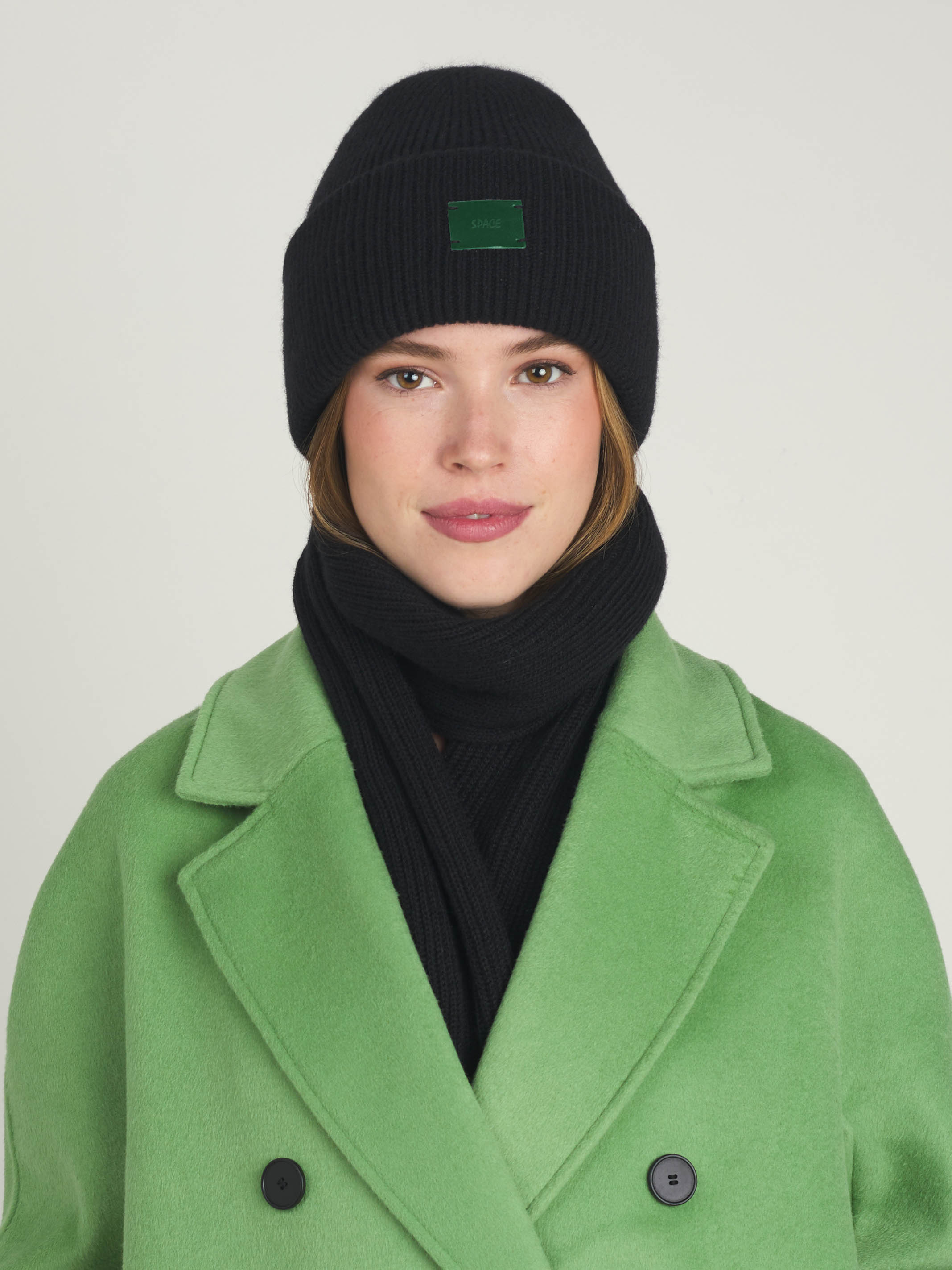 Спейс комплект (шапка+шарф) трикотажный (черный/ярко-зеленый, 56-58)
