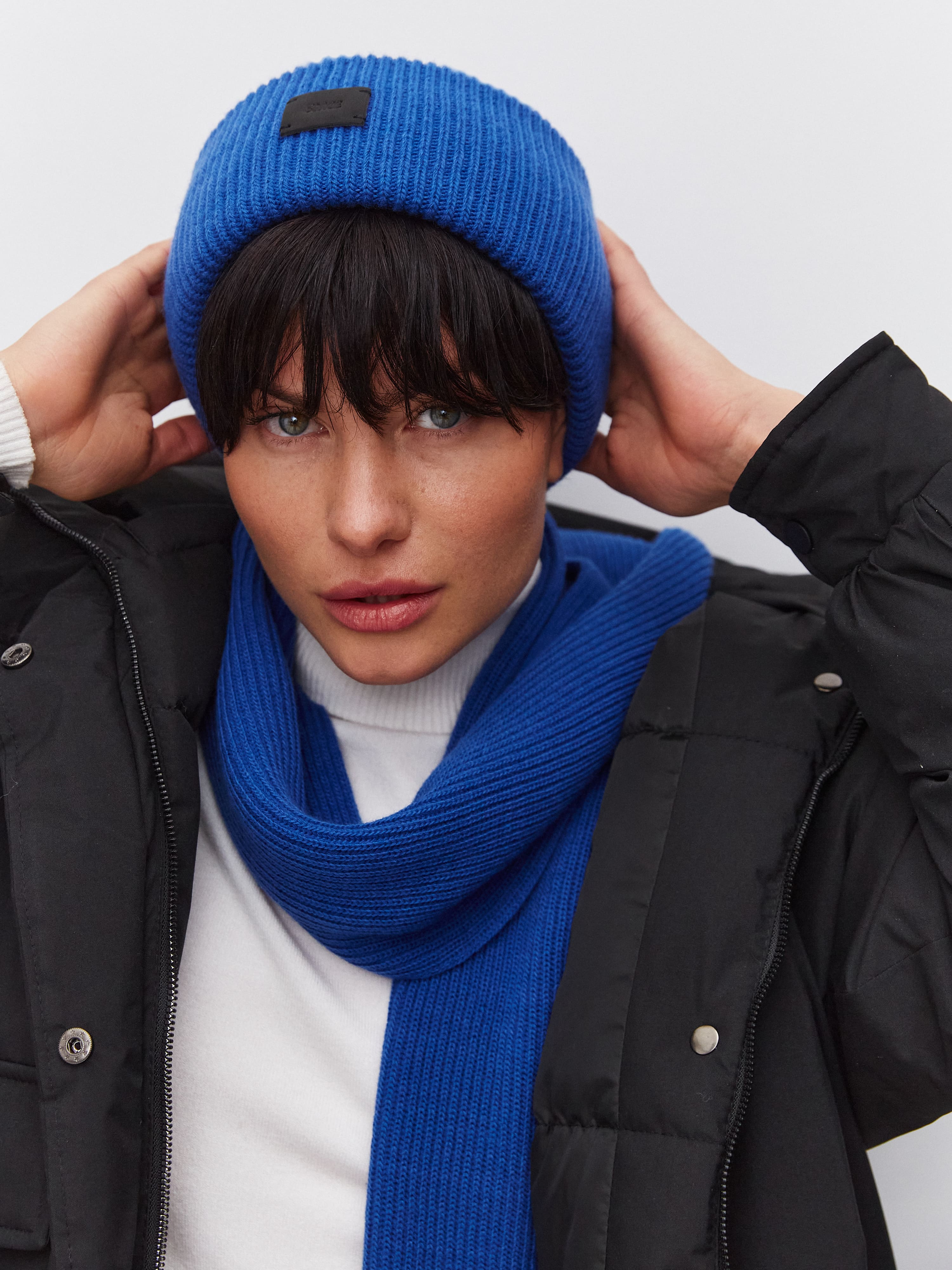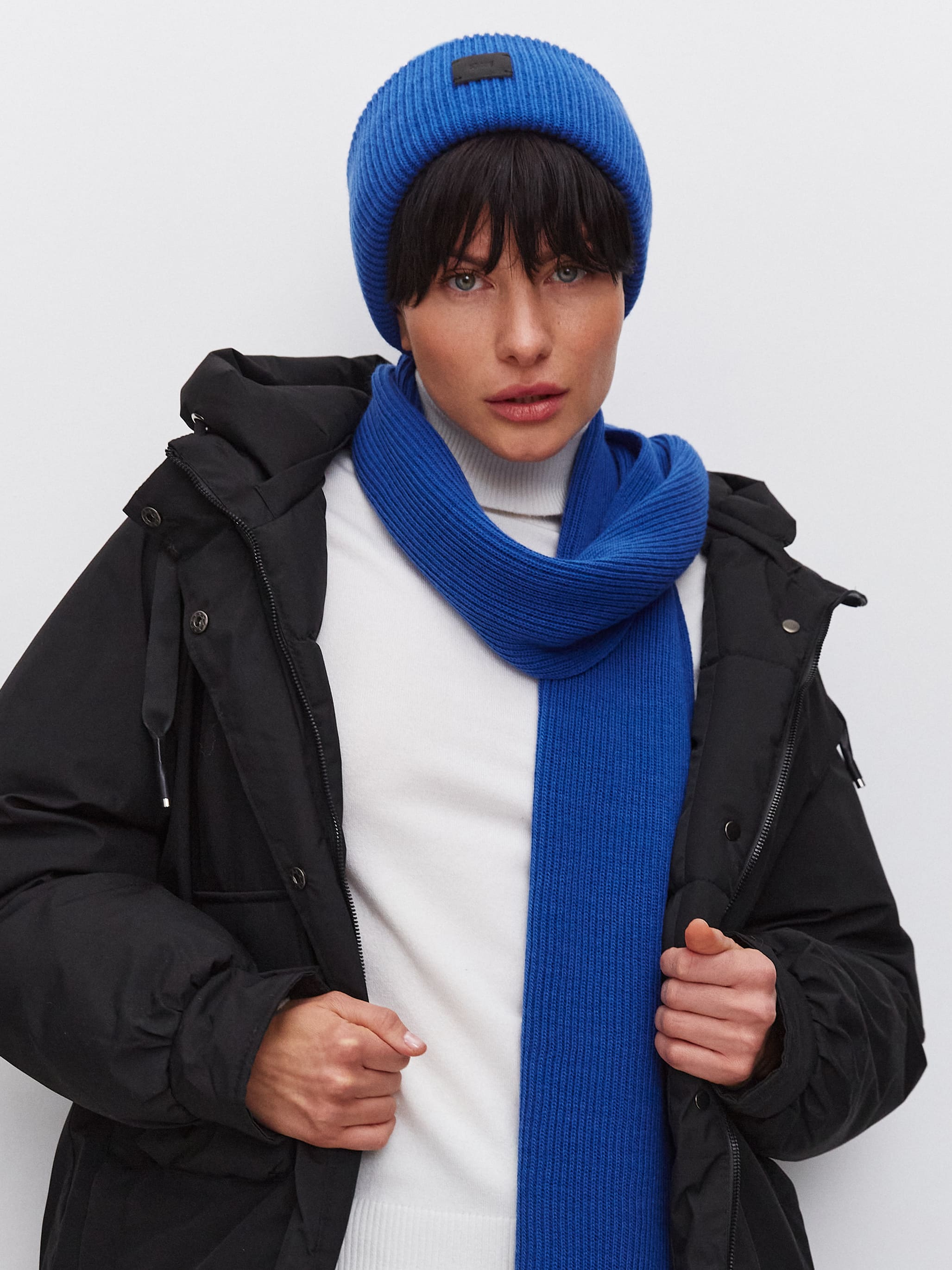 В этом аккуратном теплом комплекте целых 70% мериносовой шерсти. Это делает его идеальным и для первых осенних заморозков, и для зимних метелей. Благодаря плотному переплетению нитей, аксессуары не просто хорошо защищают от ветра, но и не теряют форму после пары стирок. Объемный, связанный в мелкий рубчик, шарф станет прекрасным дополнением к любимому пуховику. А стильная шапка бини с удобным отворотом и плотной посадкой прекрасно защитит шейно-ушную зону.