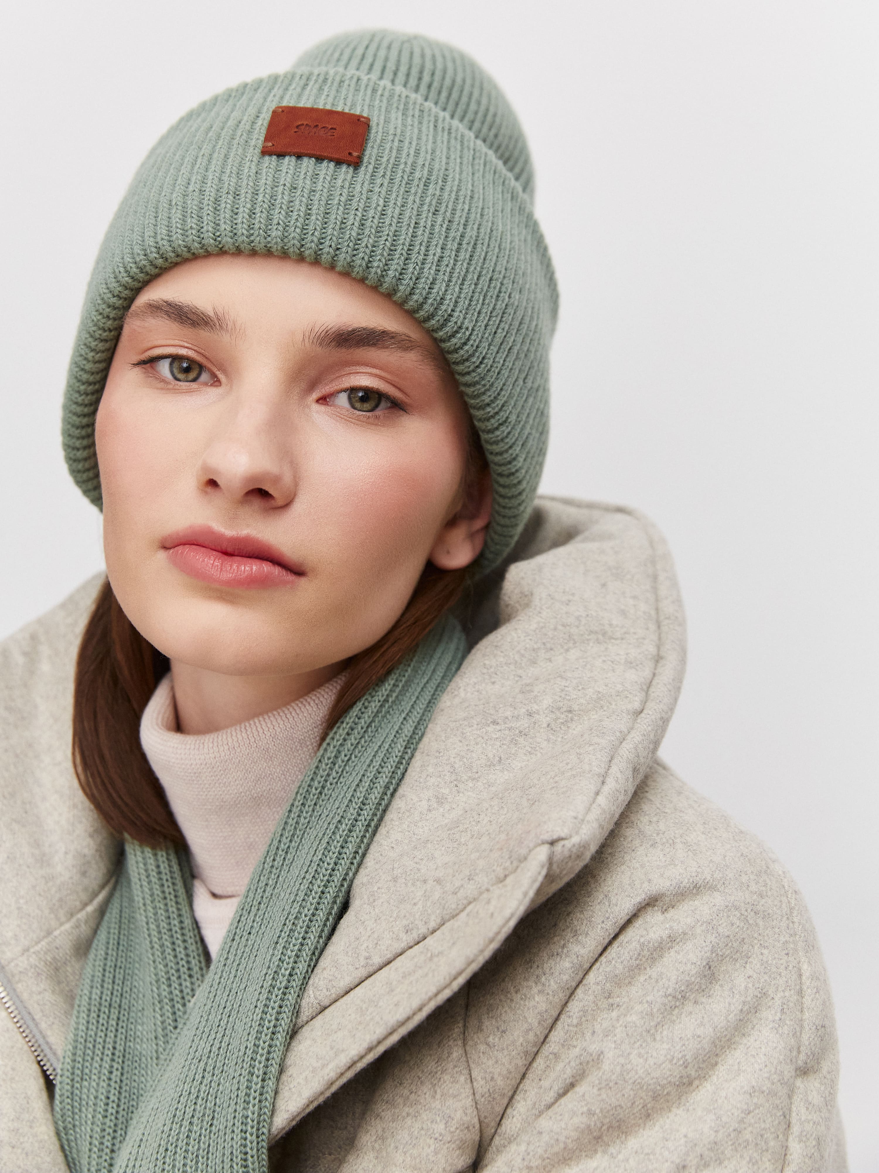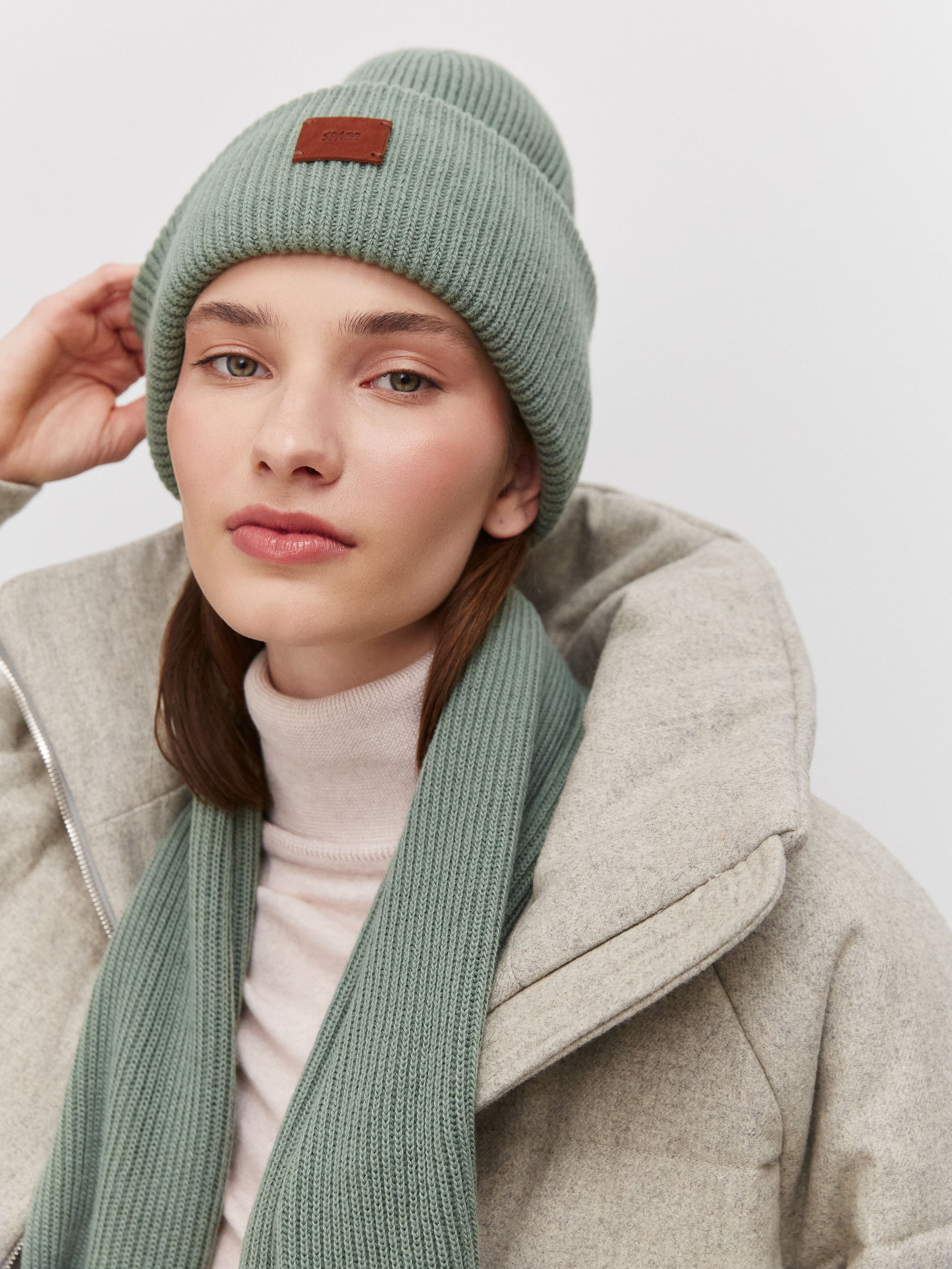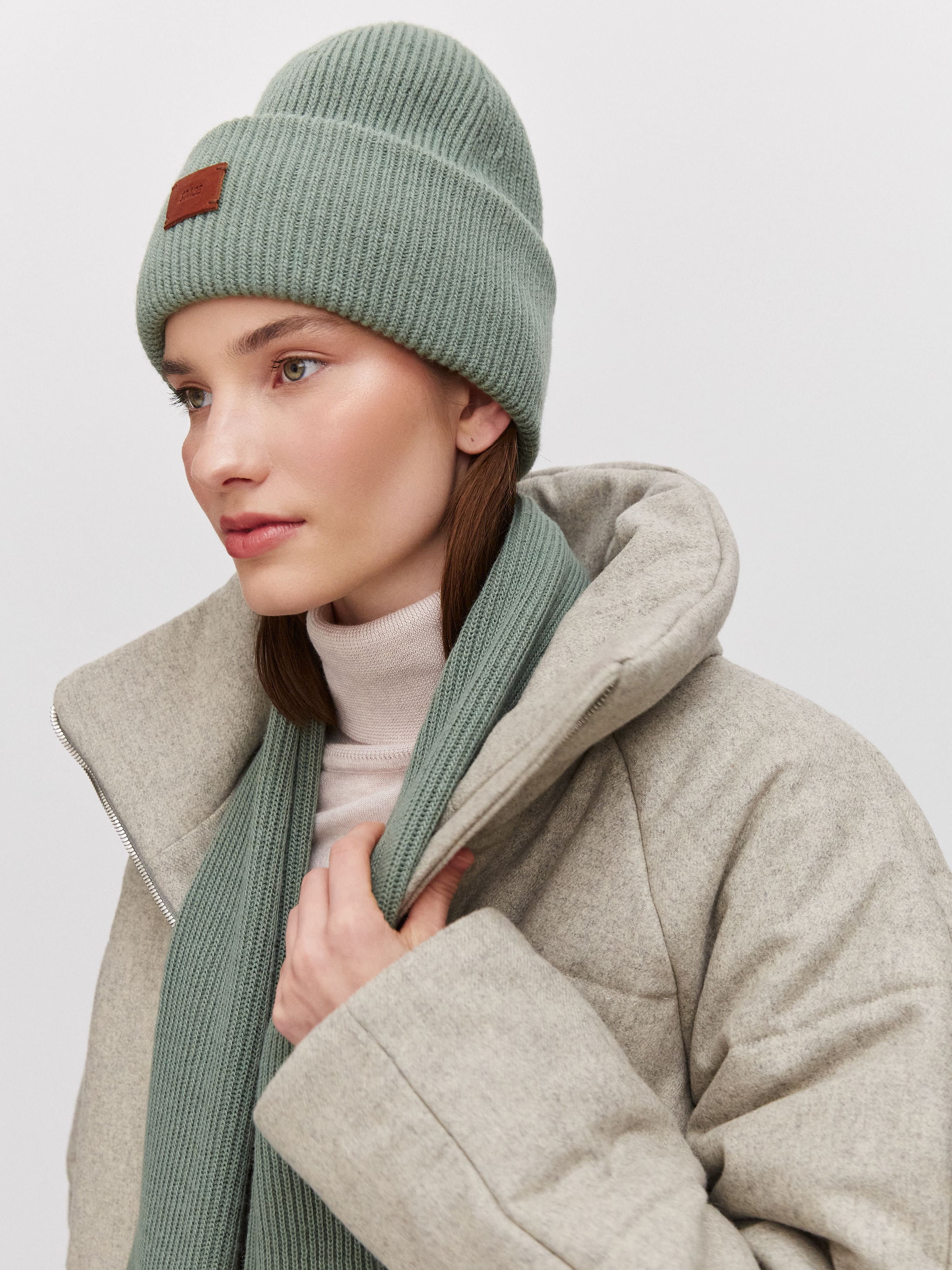 В этом аккуратном теплом комплекте целых 70% мериносовой шерсти. Это делает его идеальным и для первых осенних заморозков, и для зимних метелей. Благодаря плотному переплетению нитей, аксессуары не просто хорошо защищают от ветра, но и не теряют форму после пары стирок. Объемный, связанный в мелкий рубчик, шарф станет прекрасным дополнением к любимому пуховику. А стильная шапка бини с удобным отворотом и плотной посадкой прекрасно защитит шейно-ушную зону.