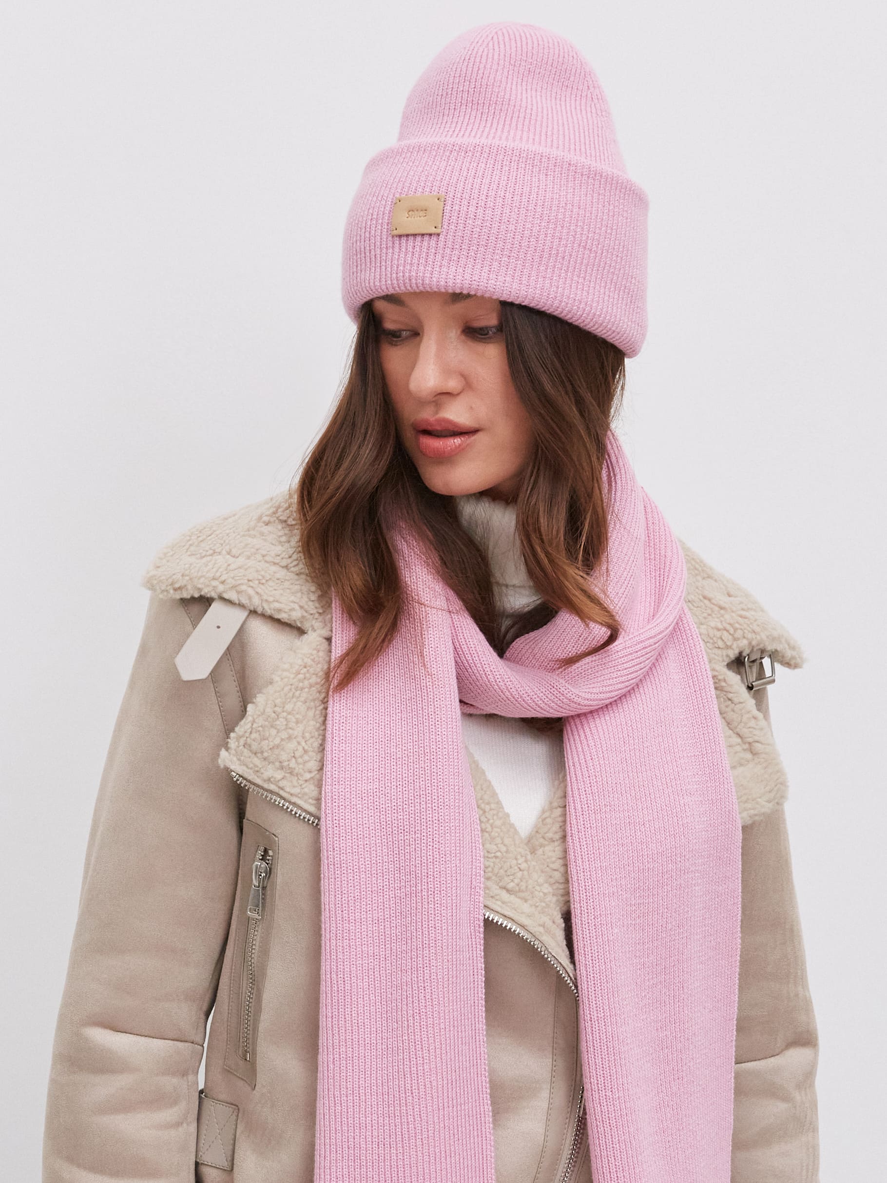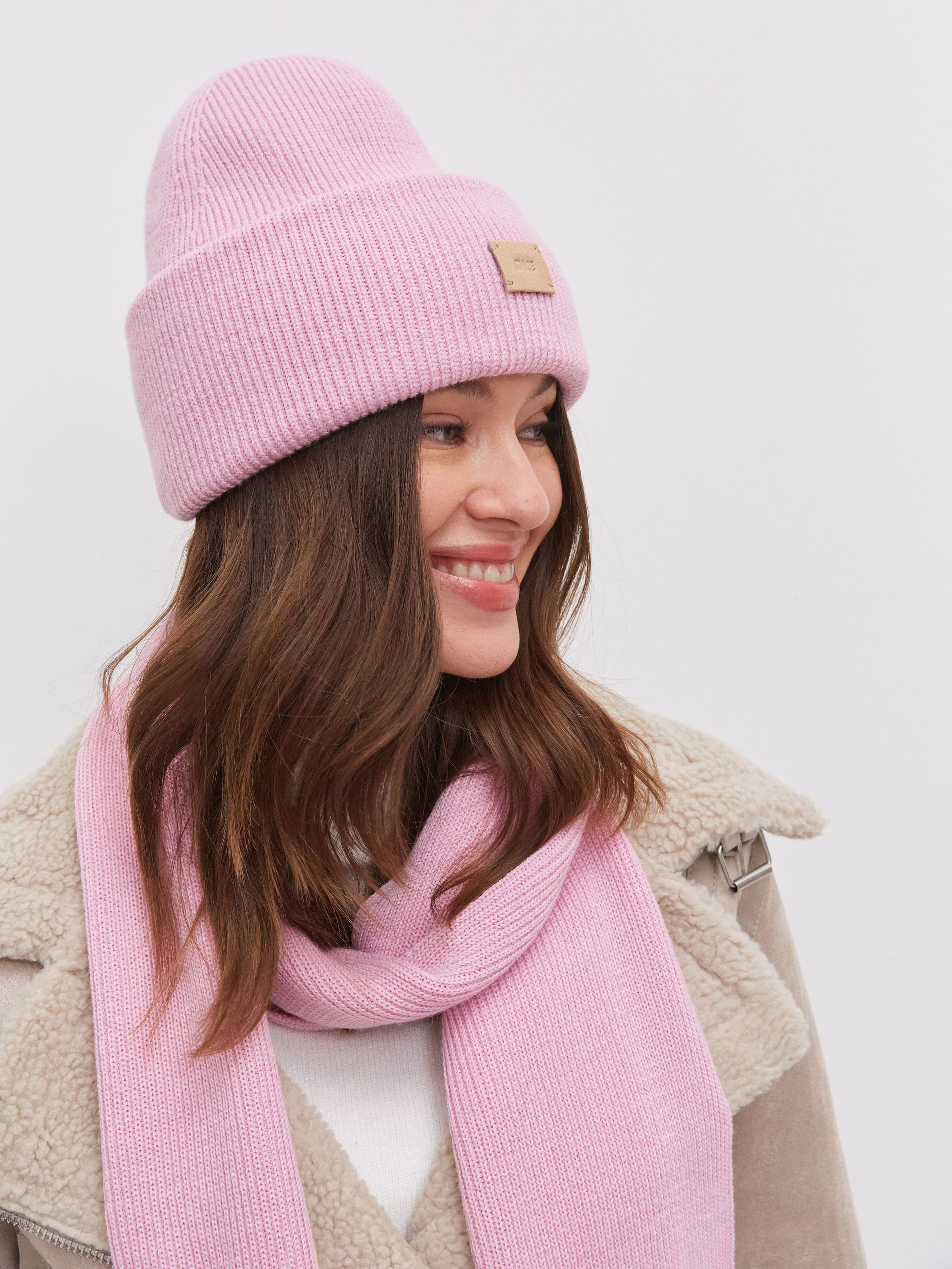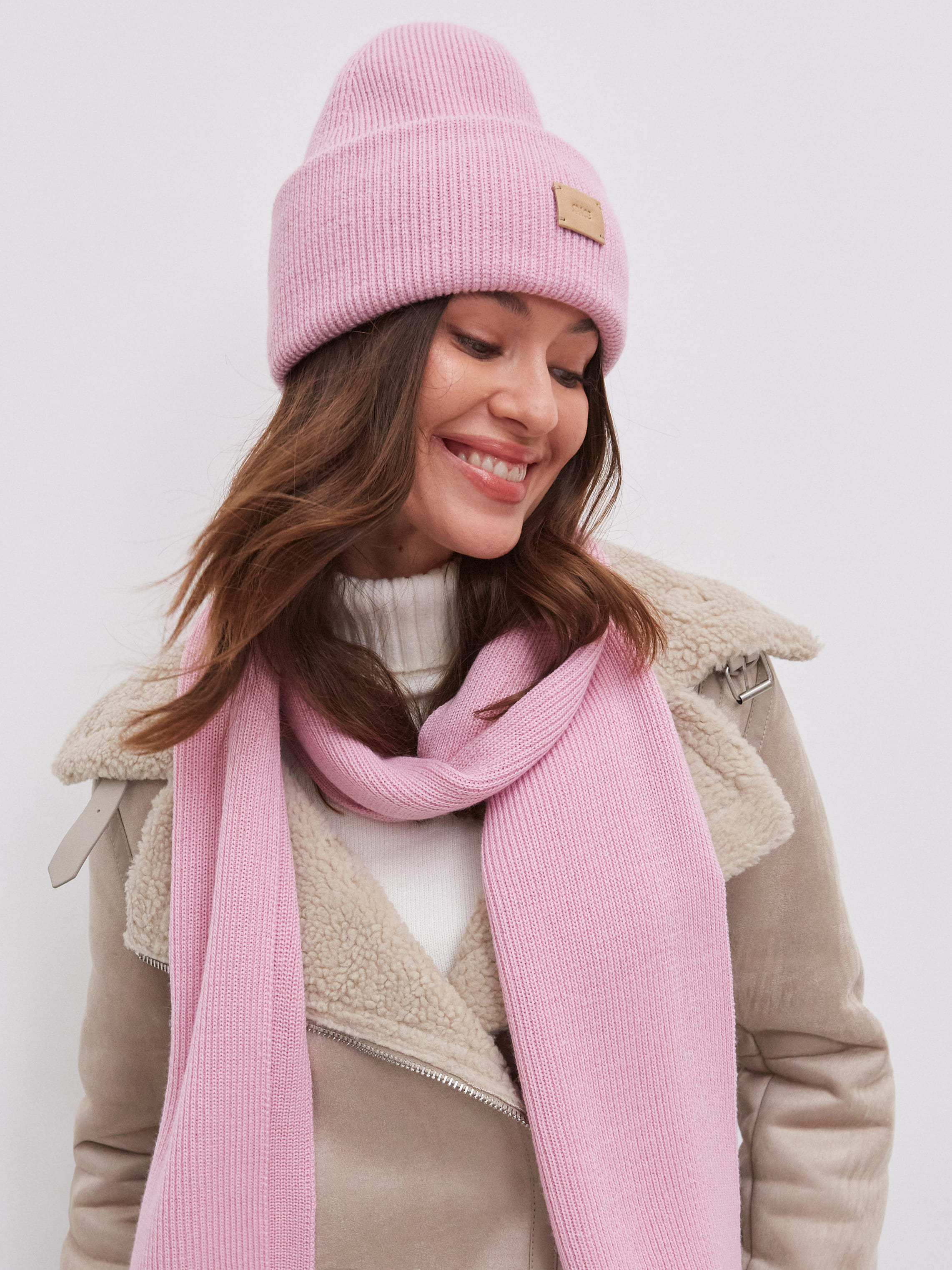 В этом аккуратном теплом комплекте целых 70% мериносовой шерсти. Это делает его идеальным и для первых осенних заморозков, и для зимних метелей. Благодаря плотному переплетению нитей, аксессуары не просто хорошо защищают от ветра, но и не теряют форму после пары стирок. Объемный, связанный в мелкий рубчик, шарф станет прекрасным дополнением к любимому пуховику. А стильная шапка бини с удобным отворотом и плотной посадкой прекрасно защитит шейно-ушную зону.