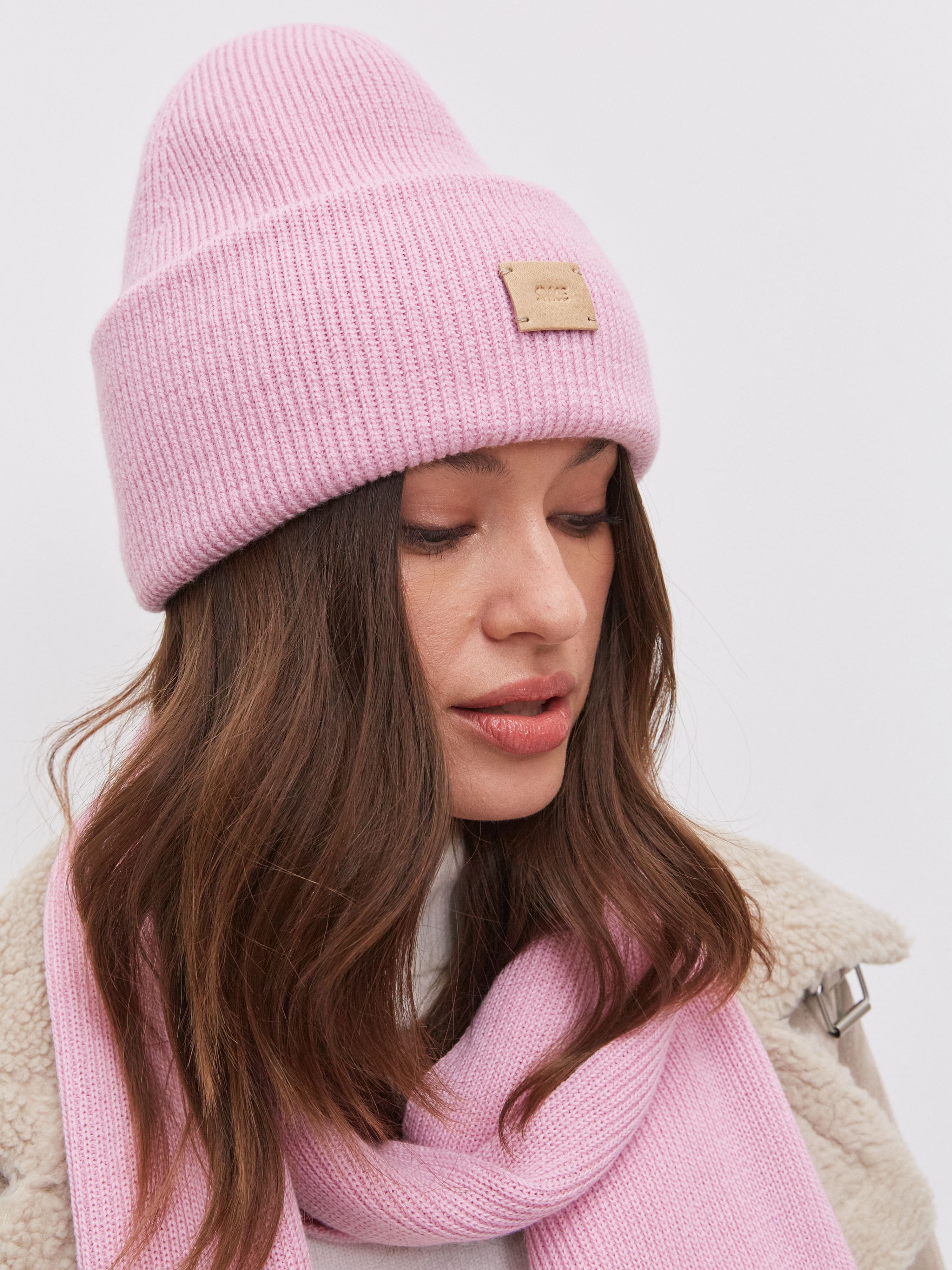Спейс комплект (шапка+шарф) трикотажный (розовая камелия, 56-58)