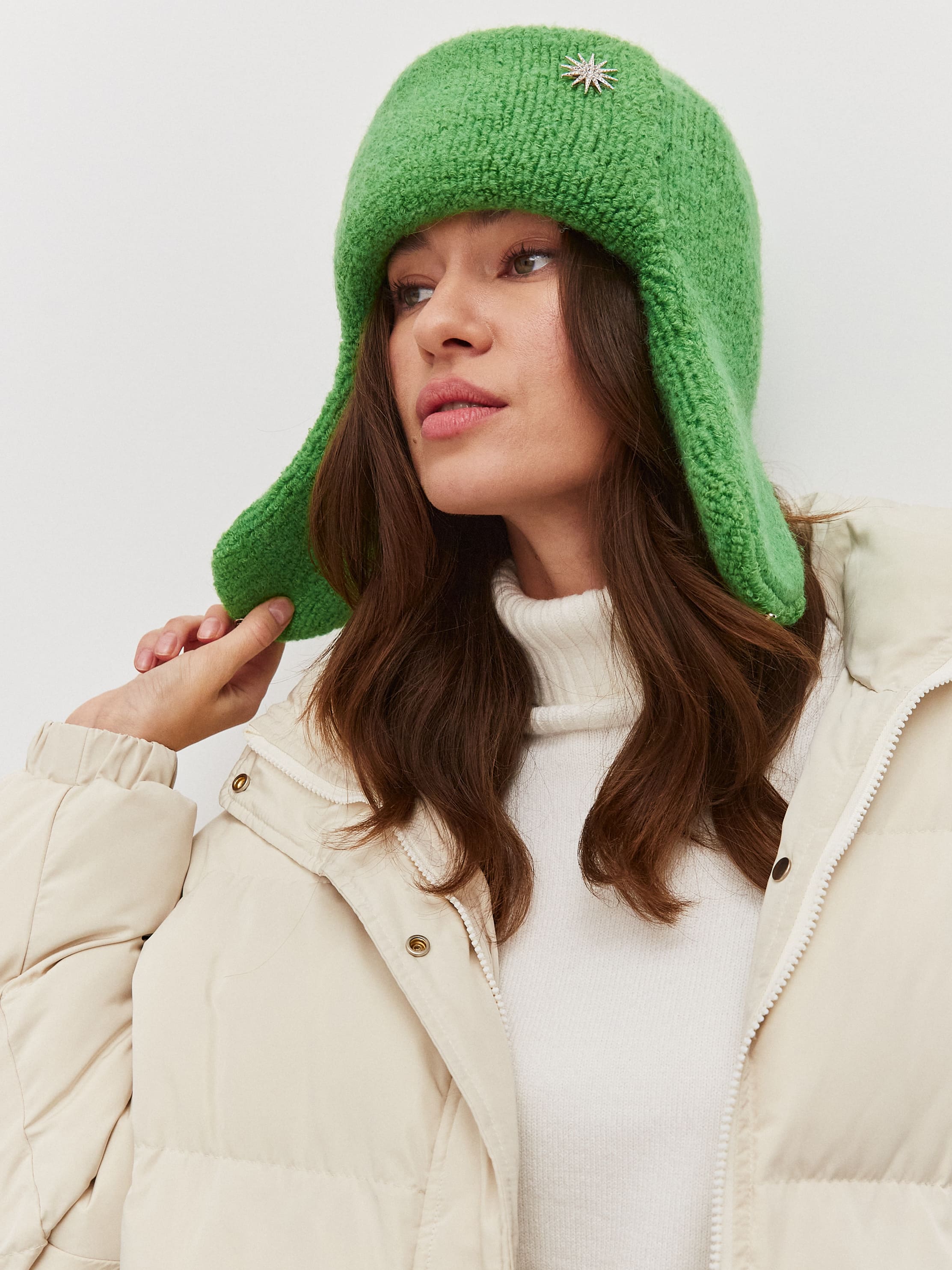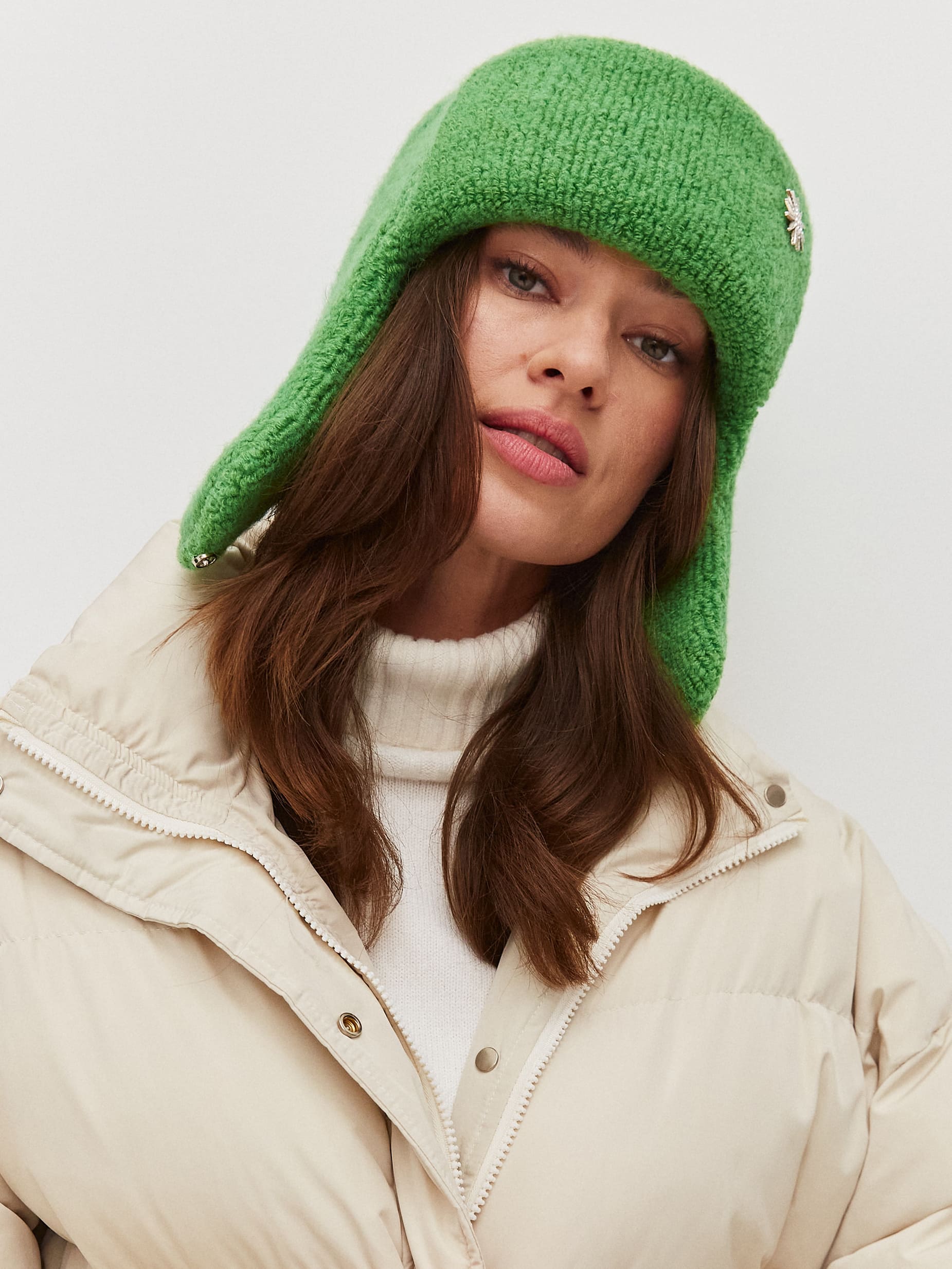 Милая шапка-ушанка - одна из классических моделей, которые не теряют актуальности уже несколько сезонов. В составе пряжи - натуральный мохер, благодаря чему она очень теплая. Мохер справедливо считается более плотным и устойчивым к холодам, чем овечья шерсть, которая также отвечает за согревающие свойства. Такой непродуваемый трикотажный аксессуар можно носить как в спокойную погоду, так и в метель.