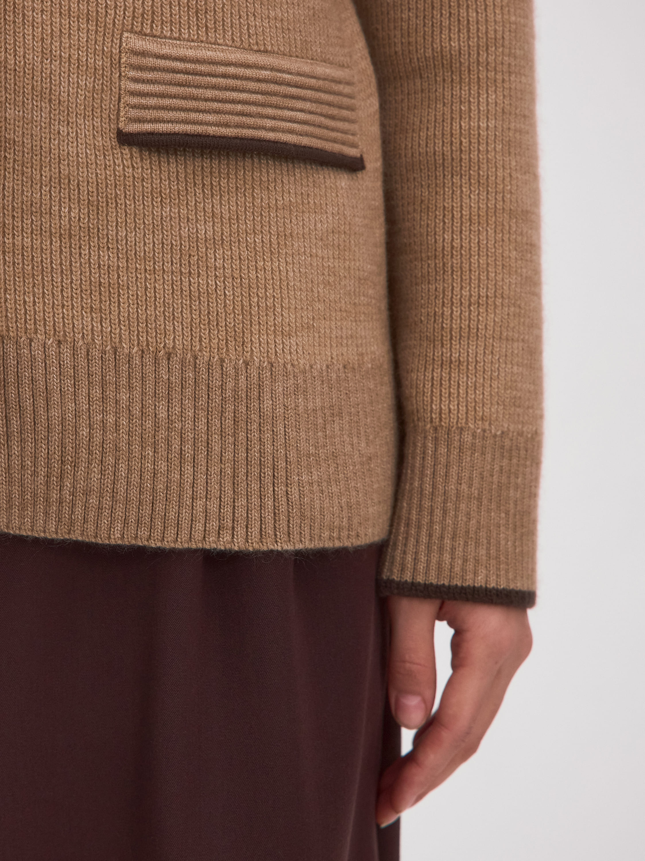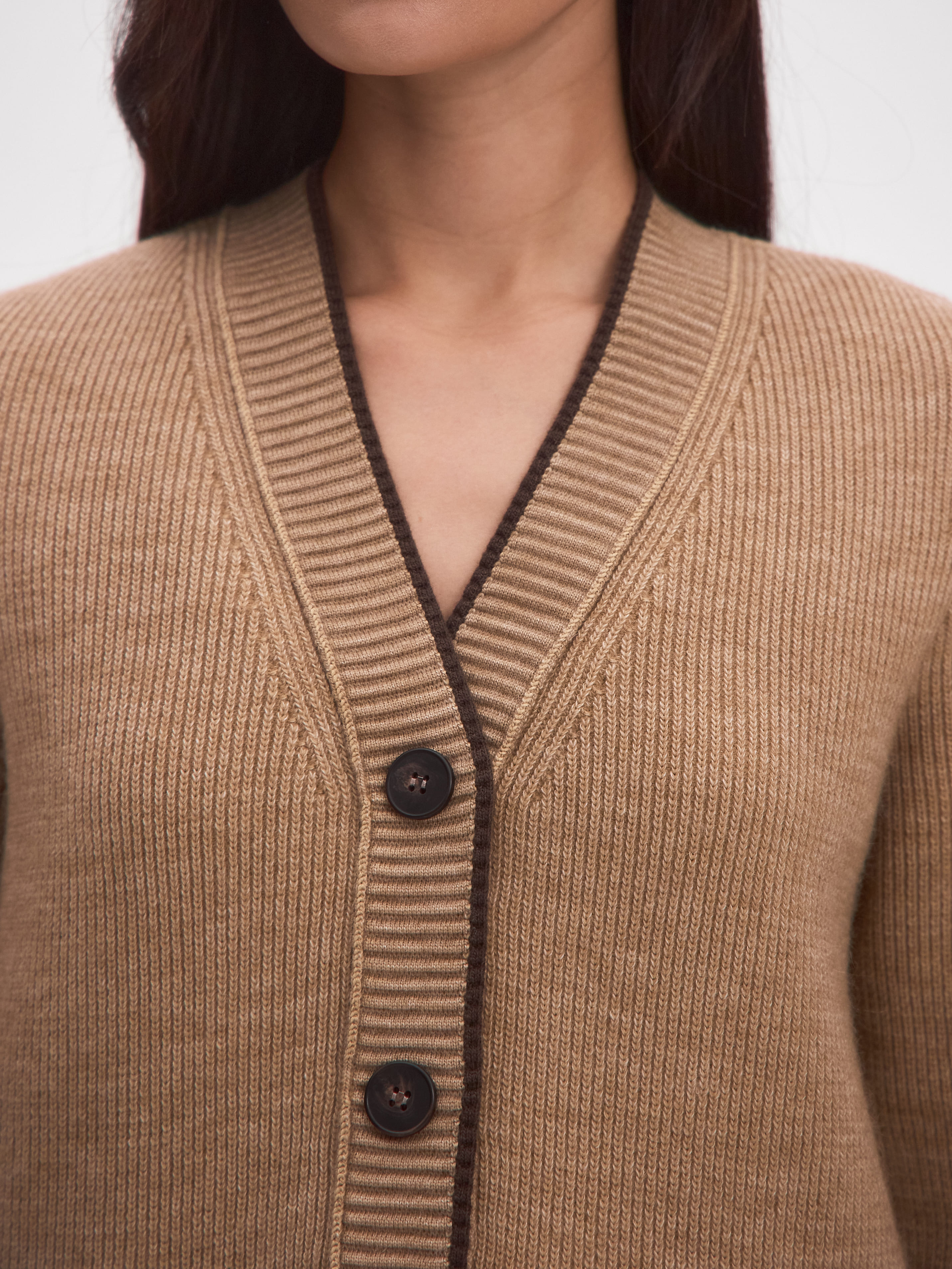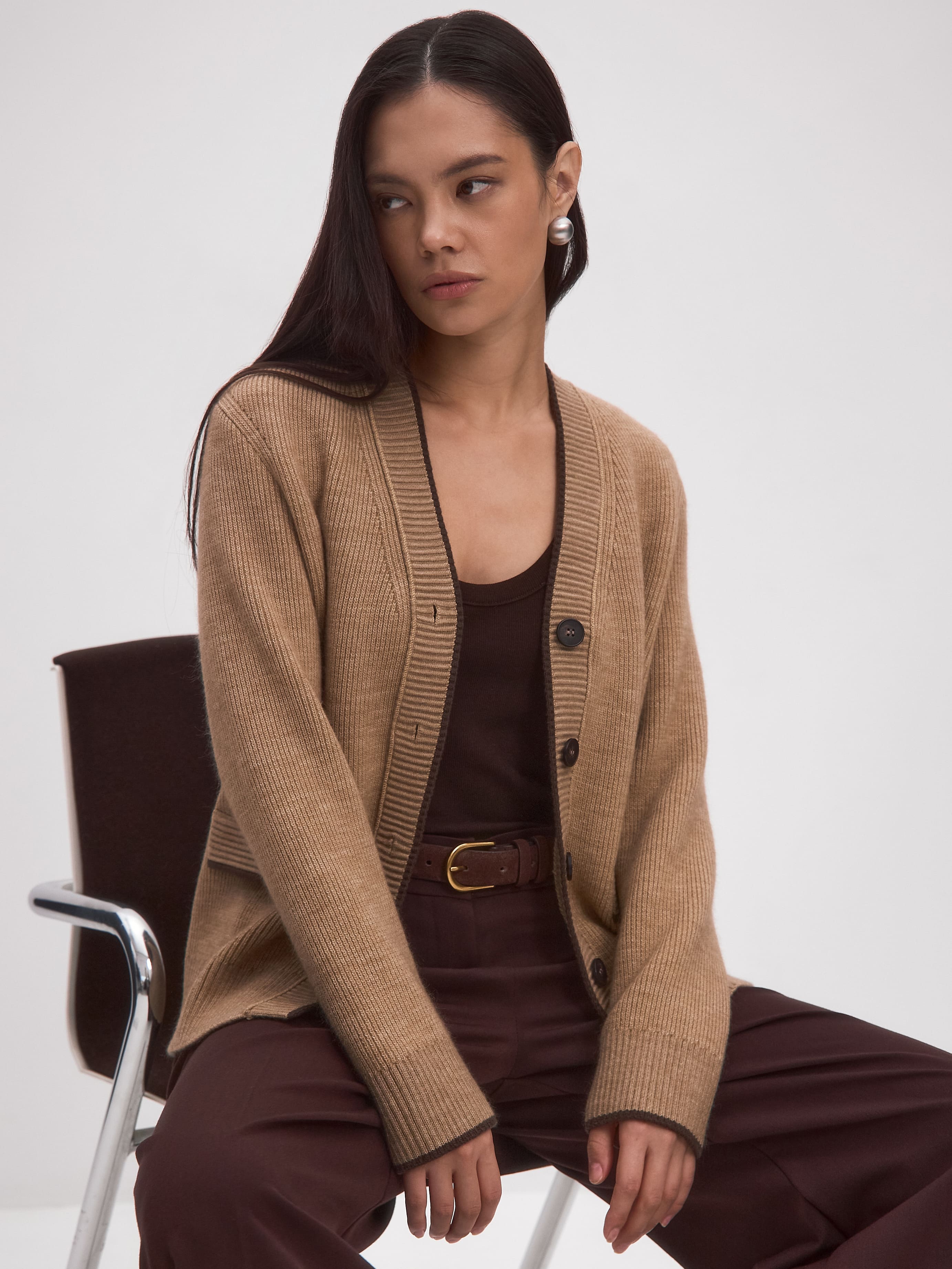 Лаконичный мягкий кардиган с отделкой – это уютно, тепло и нескучно! Текстурированные планка и клапаны с контрастным кантом придают образу приятную собранность. По низу и манжетам полотно укреплено широкой вязаной резинкой. Состав: премиальная мериносовая шерсть + натуральный мохер, создающий легкий пушистый ореол на поверхности изделия. Способность кардигана поддерживать комфортную температуру в помещении и вне его протестирована на практике. Поэтому уверенно сообщаем: теперь можно не отказываться от прогулок и шопинга в любую погоду.