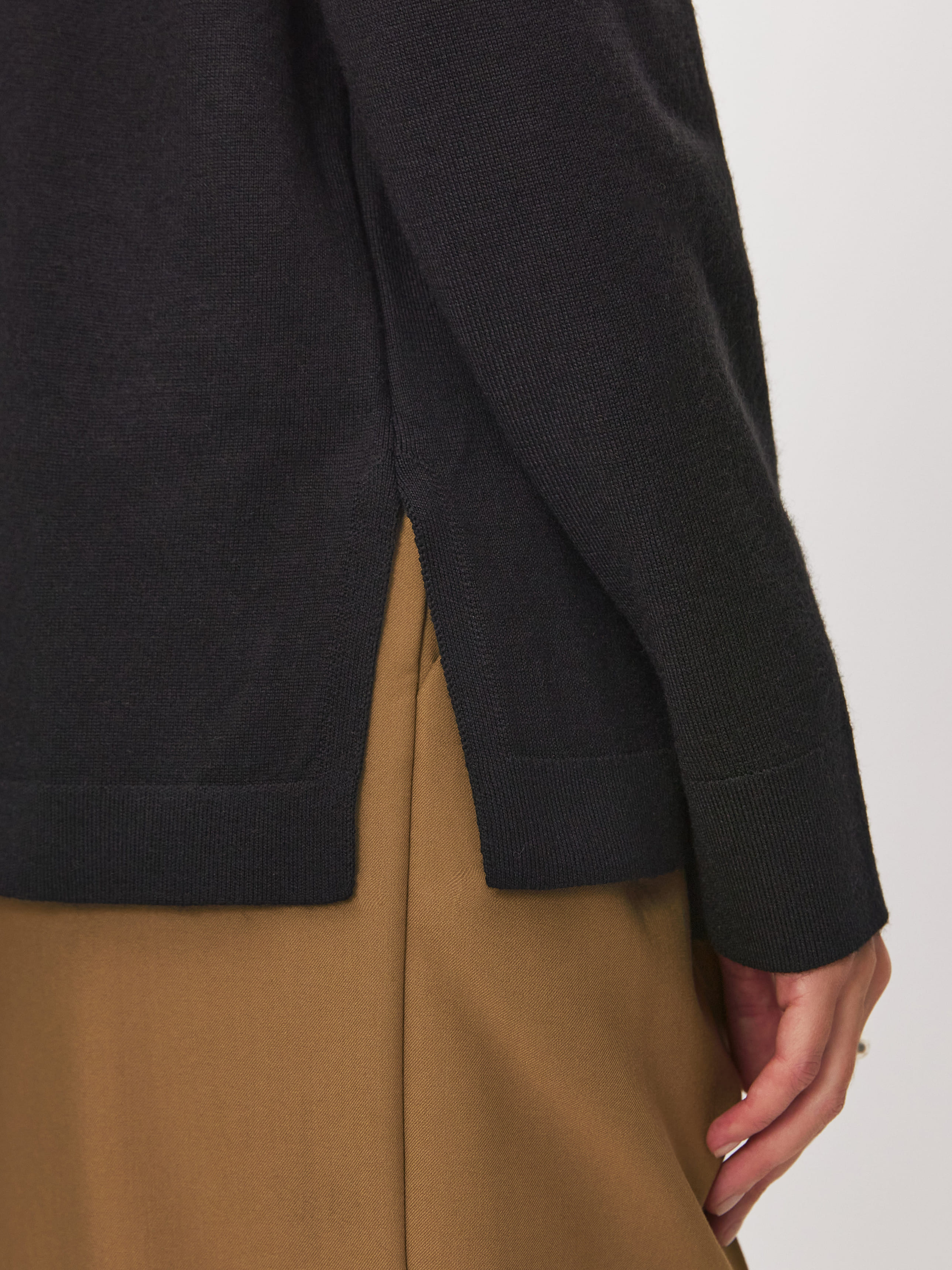 Базовый кардиган-рубашка из плотной, формоустойчивой шерсти, который прекрасно стилизуется с большинством фактур – от денима до экокожи. Спущенная линия плеча и аккуратные разрезы по бокам играют на динамичность силуэта. Приятный бонус – модель одинаково эффектно смотрится как застегнутой на все пуговицы, так и в расстегнутом виде. Главное, не забывать про дополнительный бельевой слой, который позволит натуральной шерсти лучше согревать и более комфортно восприниматься кожей.