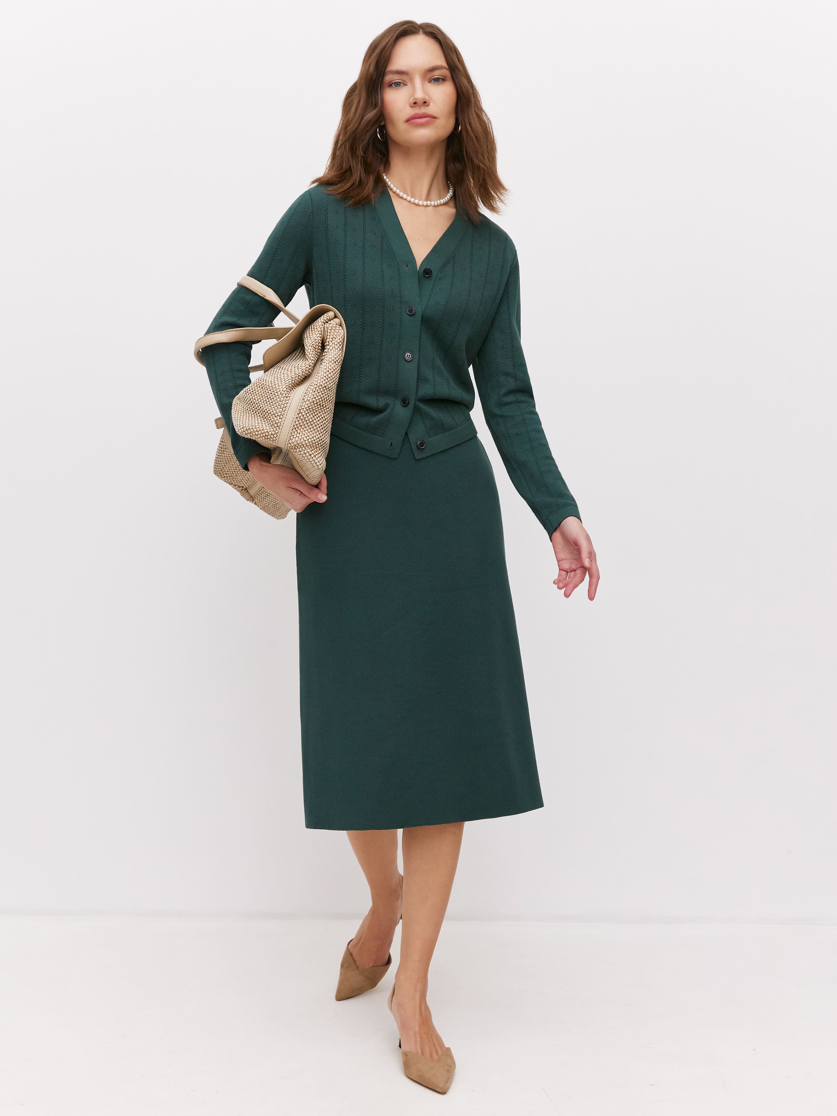 Маленький и очень тактильный кардиган из весенне-летней коллекции бренда. Утонченная классика специально для теплых вечеров. Секрет нежности трикотажа – в мягком премиальном хлопке и чувственной вискозе, объединенных в одной вещи. Нюансы модели: V-образный вырез, чуть свободная посадка и ряд роговых пуговиц. Ажурный узор вывязан по вертикали, чтобы визуально компенсировать небольшую длину изделия.