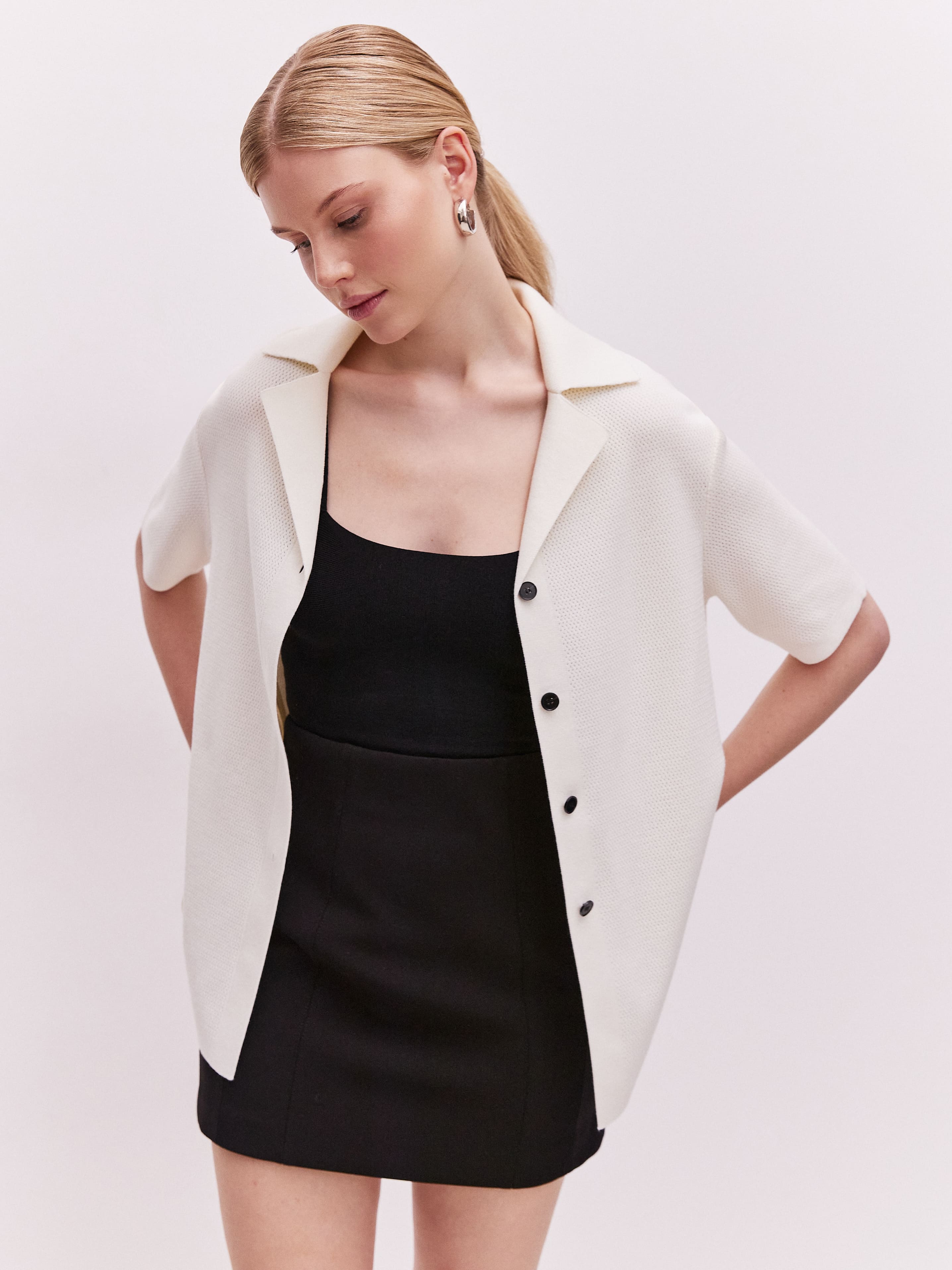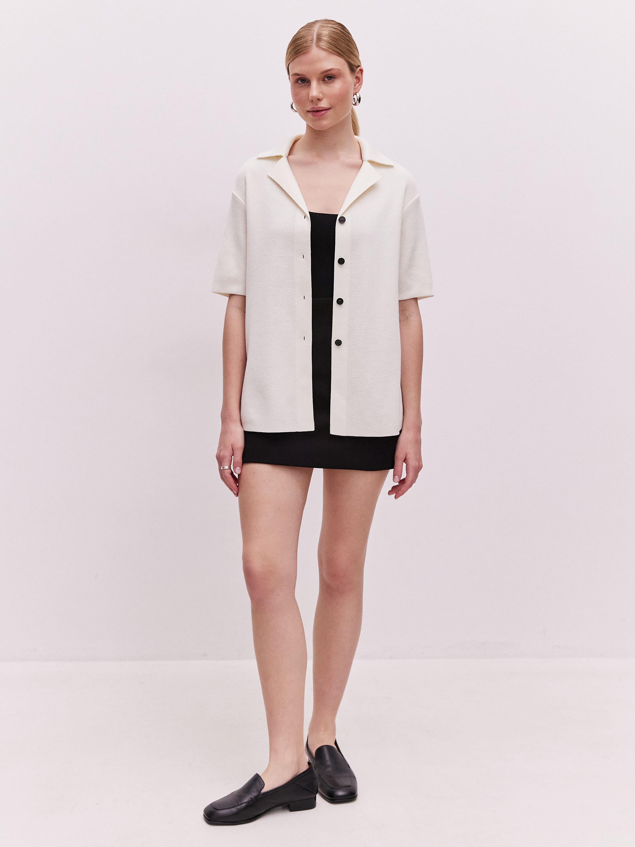 Ваш билет в комфортное лето – кардиган Эллада с коротким рукавом из тонкого премиум трикотажа. Модель расслабленно-рубашечного фасона, объединяющая мягкость натурального хлопка и легкий холодок вискозы. Застегивается на аккуратные роговые пуговицы. Линия плеча деликатно приспущена. Можно носить единственным, а также вторым слоем поверх топов и облегающих маечек. Обыгрывать короткий рукав рекомендуем массивными аксессуарами на запястье.