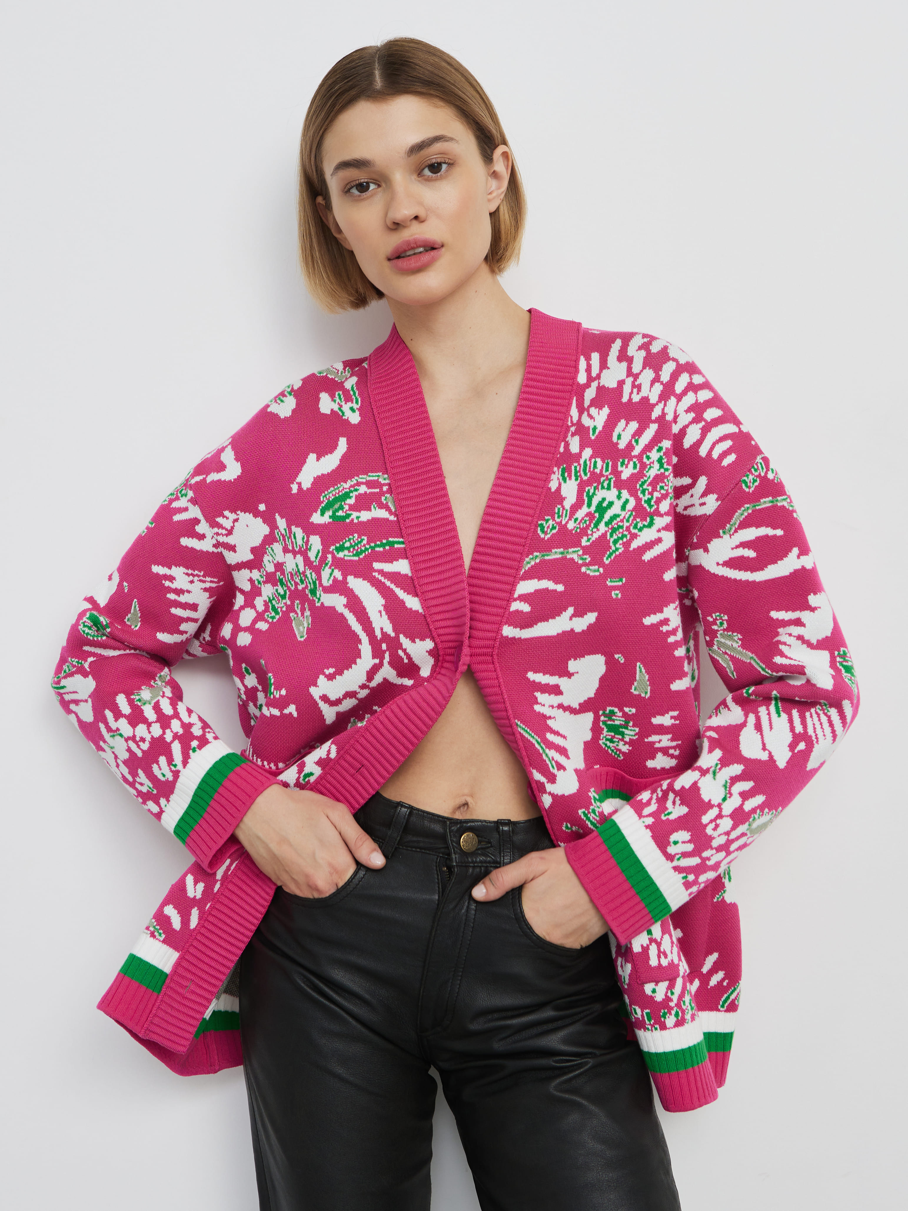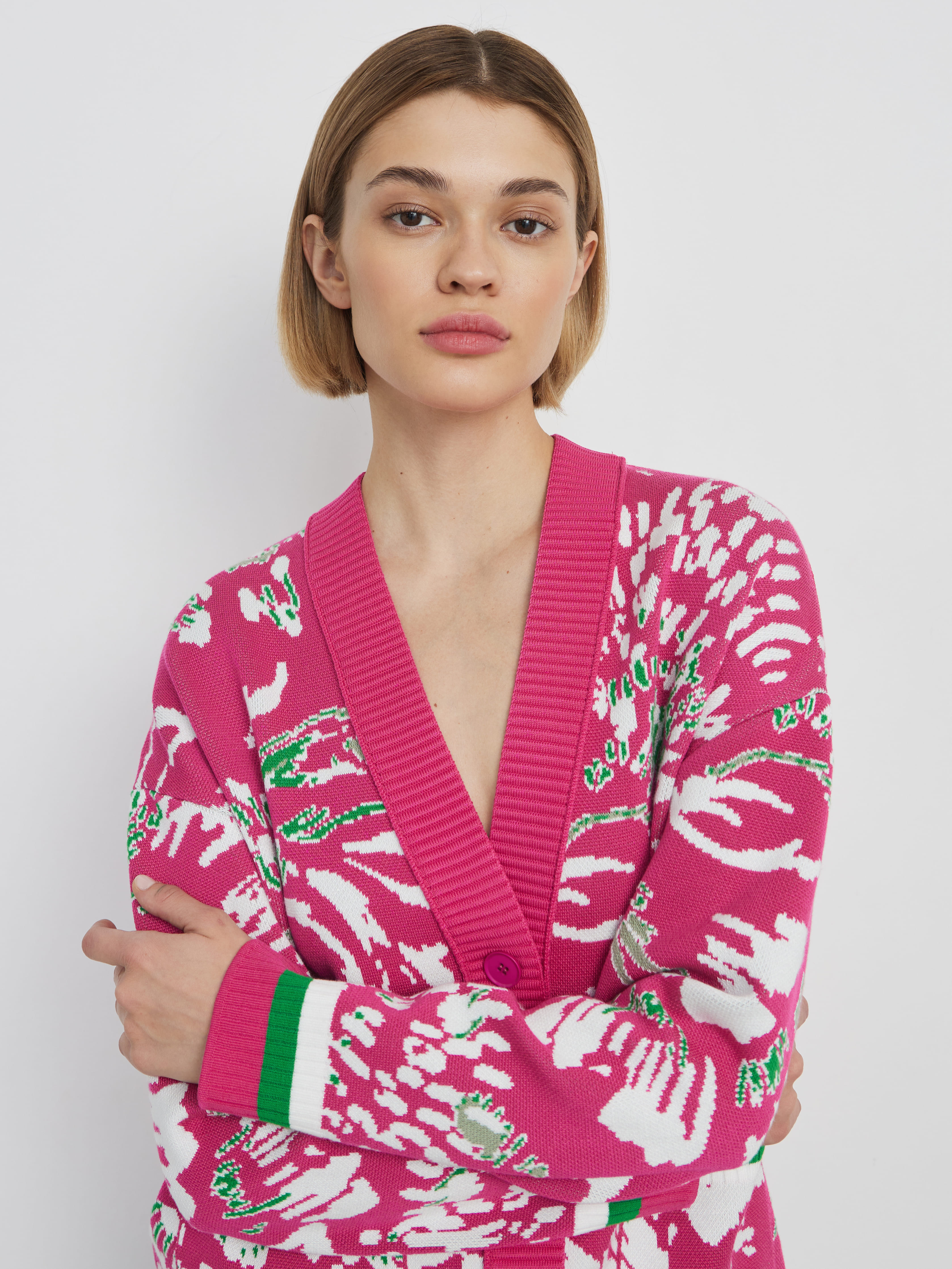 Благородный оверсайз кардиган с абстрактным принтом, вошедший в топовую пятерку самых продаваемых вещей бренда. Мы рекомендуем его в качестве второго слоя на лето и позднюю весну, поскольку модель на 90% состоит из нежной вискозы, отвечающей за охлаждающий эффект и дыхание трикотажа. Кардиган выпущен в самых сочных и нежных оттенках, чтобы вы легко нашли среди них свою.