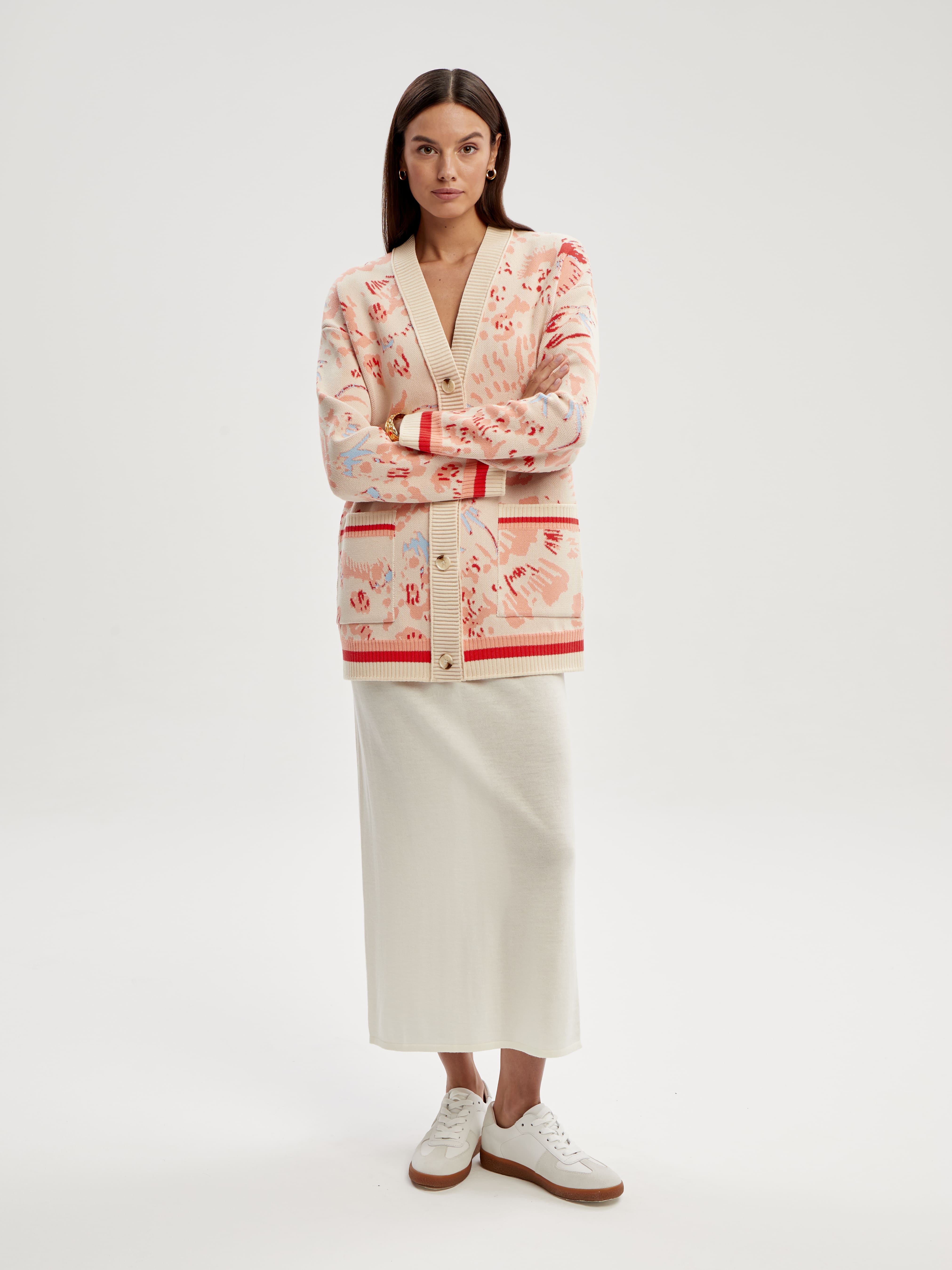 Благородный оверсайз кардиган с абстрактным принтом, вошедший в топовую пятерку самых продаваемых вещей бренда. Мы рекомендуем его в качестве второго слоя на лето и позднюю весну, поскольку модель на 90% состоит из нежной вискозы, отвечающей за охлаждающий эффект и дыхание трикотажа. Кардиган выпущен в самых сочных и нежных оттенках, чтобы вы легко нашли среди них свою.
