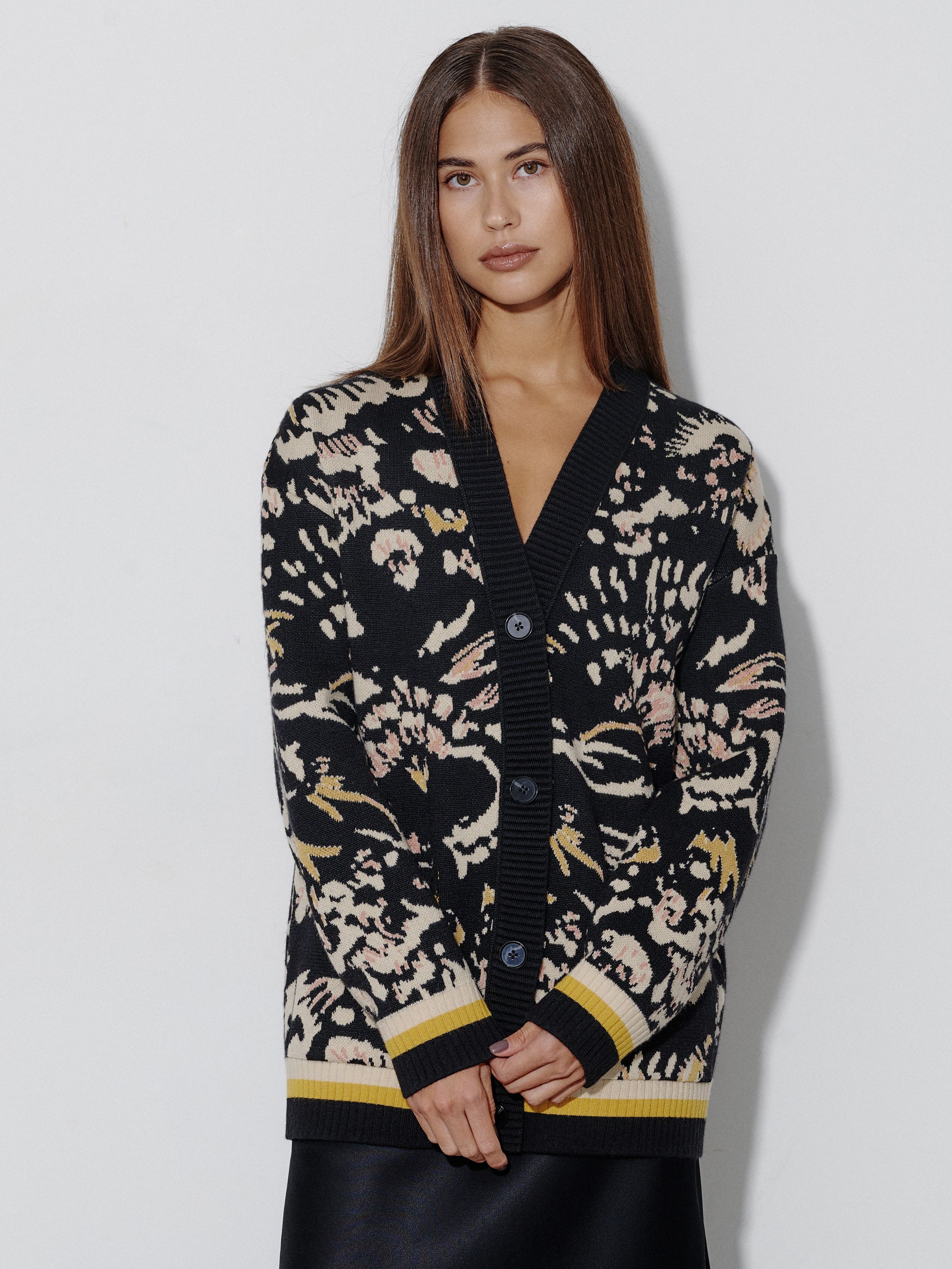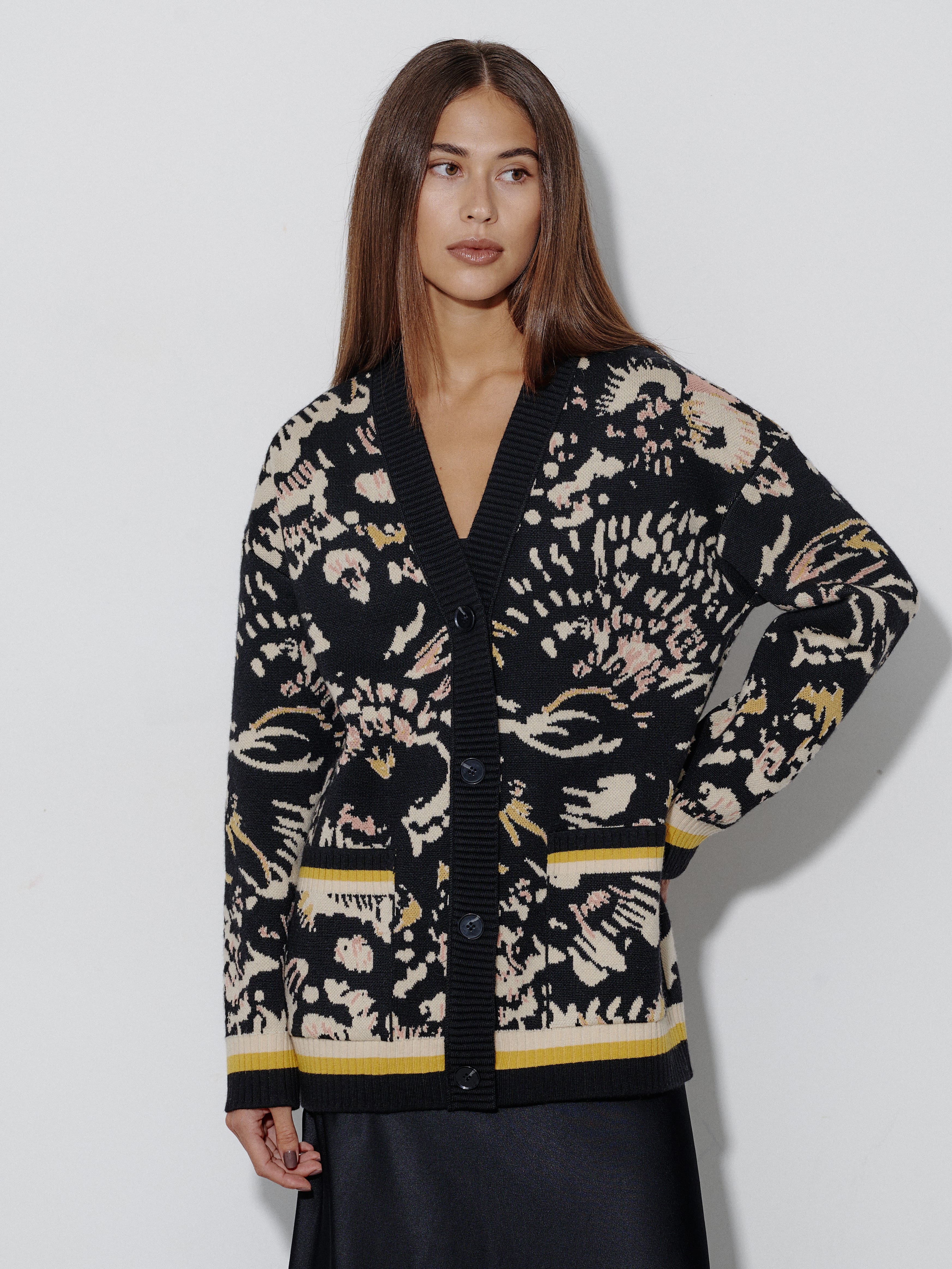 Кардиган из шерсти мериноса с авторским принтом Горизонт