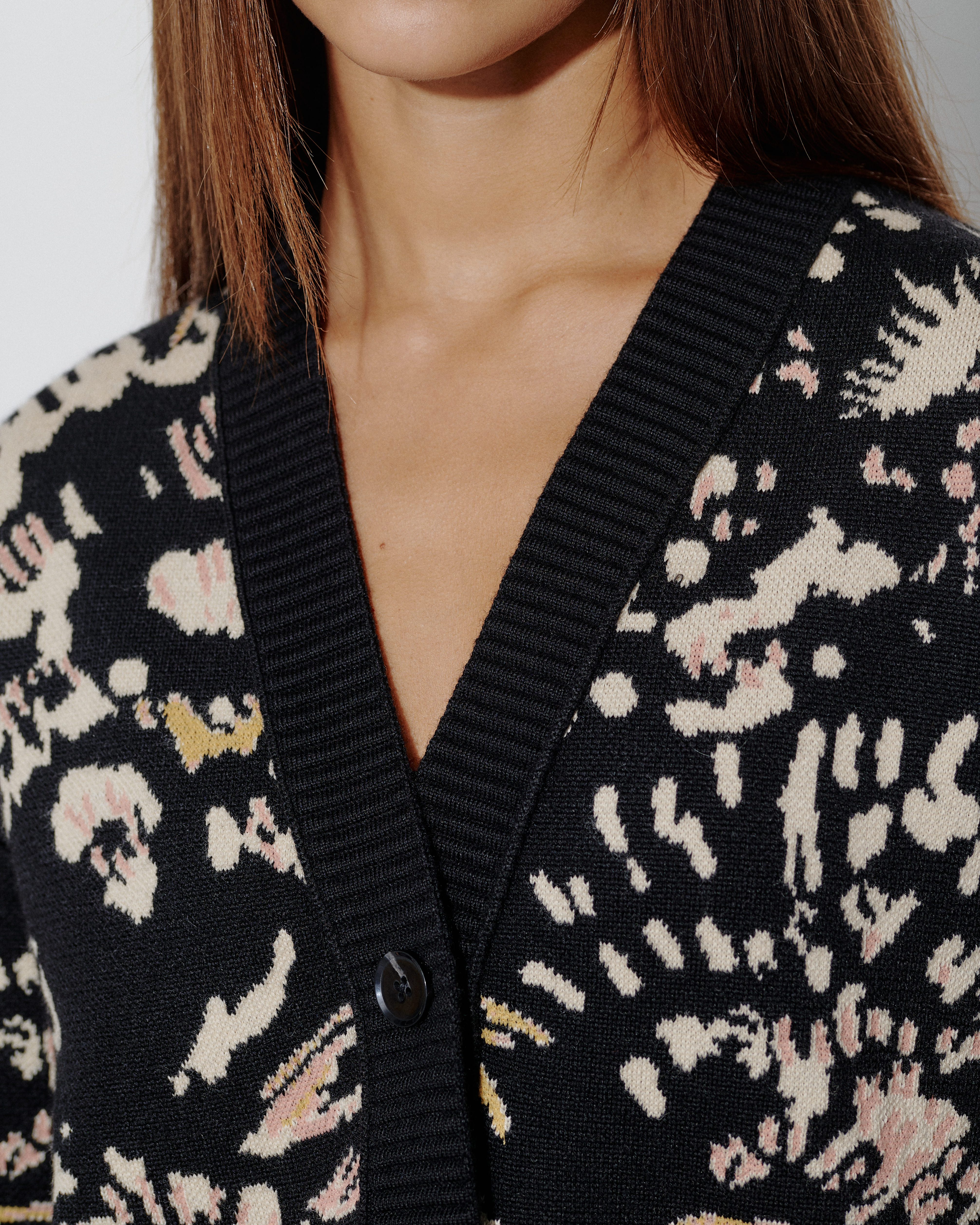 Уютный объемный кардиган, вдохновленный пожеланиями поклонниц бренда. Мы создали его как более теплую альтернативу топовой модели Гарда. Для этого вискозу в составе трикотажа заменили тонковолокнистой мериносовой шерстью, которую, для оптимального баланса, усилили легким акрилом. Авторский принт, ставший визиткой бренда, прекрасно впишется в осенние прогулки и зимние праздники в семейном кругу.