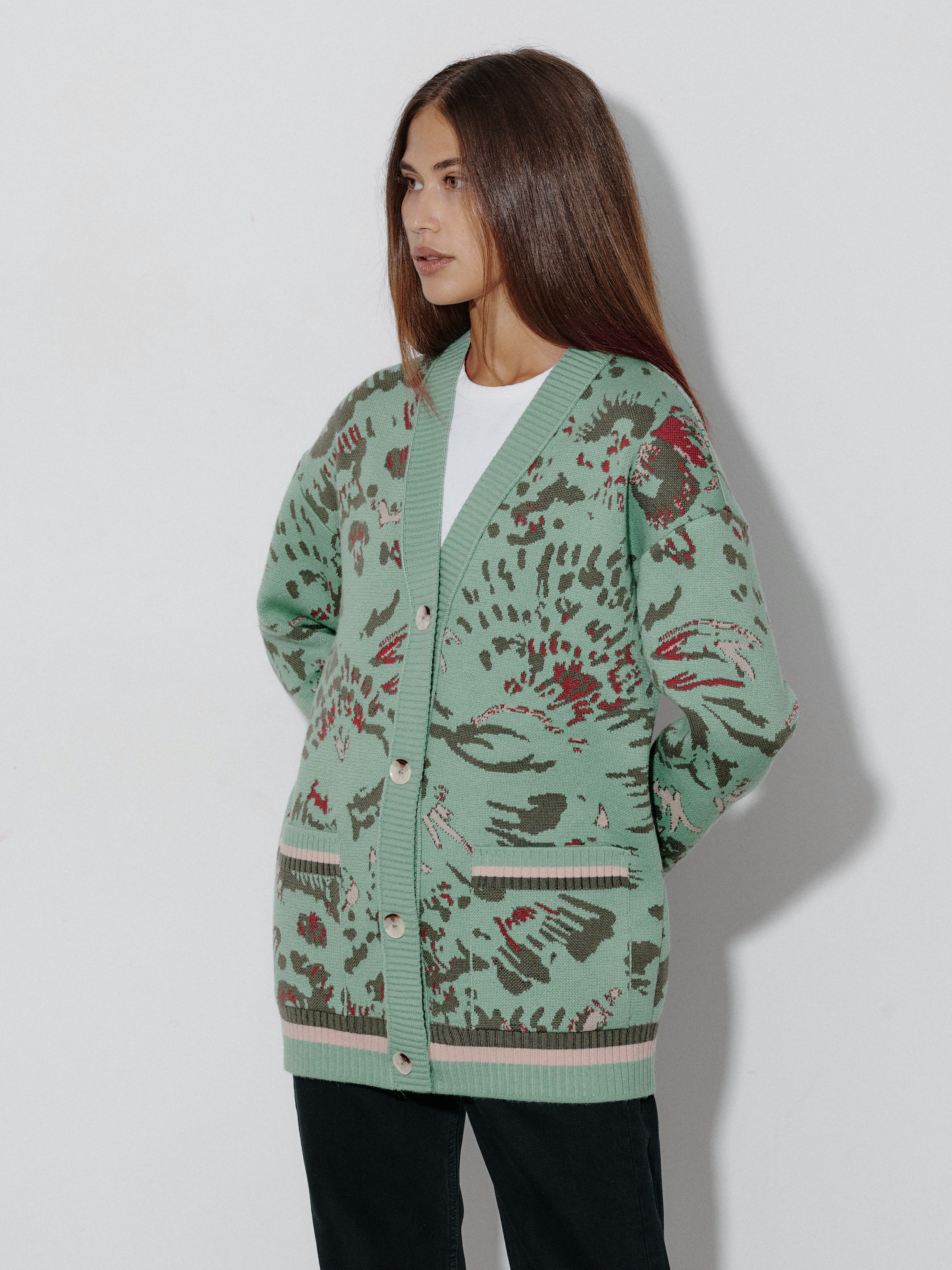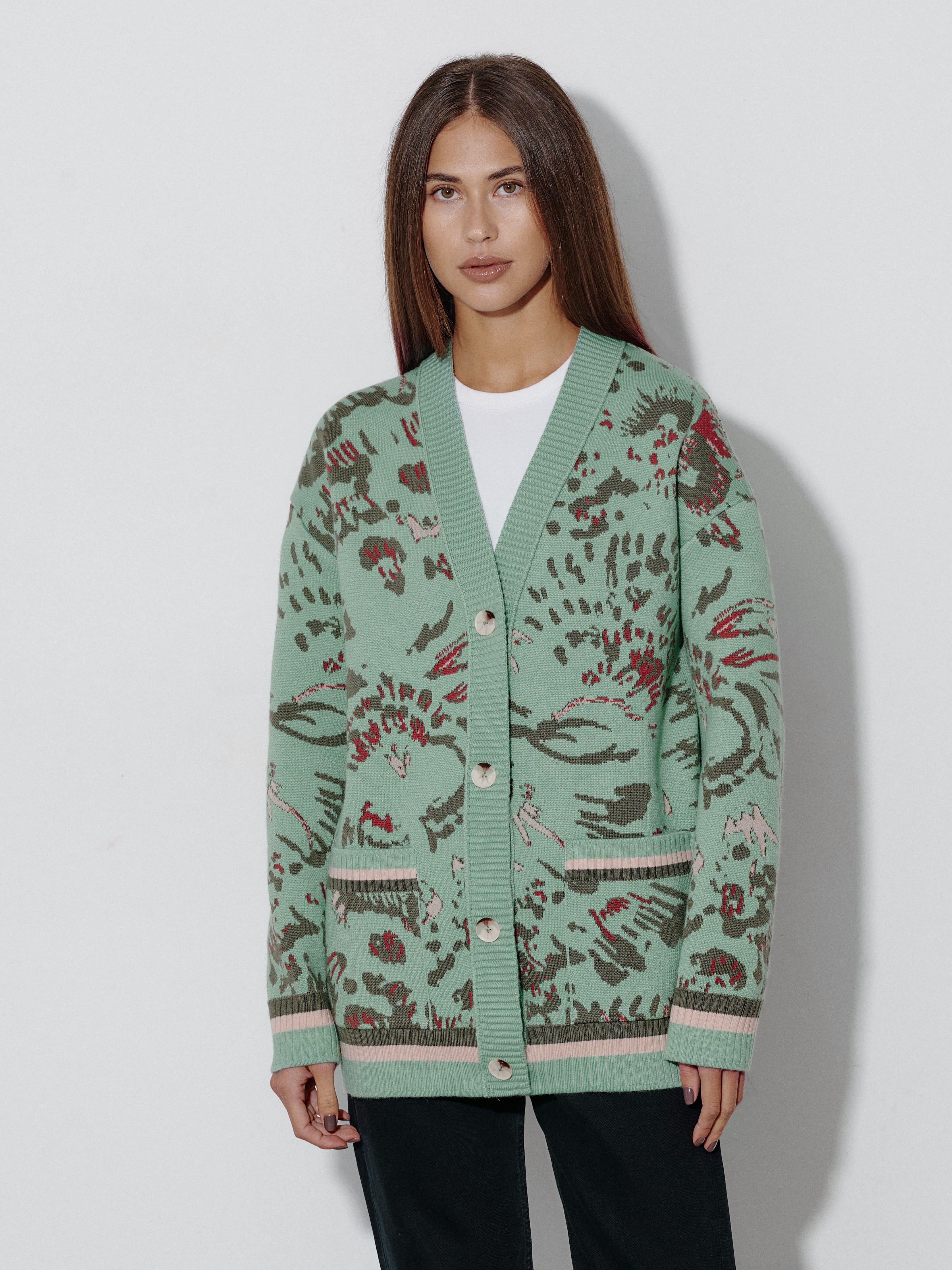 Уютный объемный кардиган, вдохновленный пожеланиями поклонниц бренда. Мы создали его как более теплую альтернативу топовой модели Гарда. Для этого вискозу в составе трикотажа заменили тонковолокнистой мериносовой шерстью, которую, для оптимального баланса, усилили легким акрилом. Авторский принт, ставший визиткой бренда, прекрасно впишется в осенние прогулки и зимние праздники в семейном кругу.