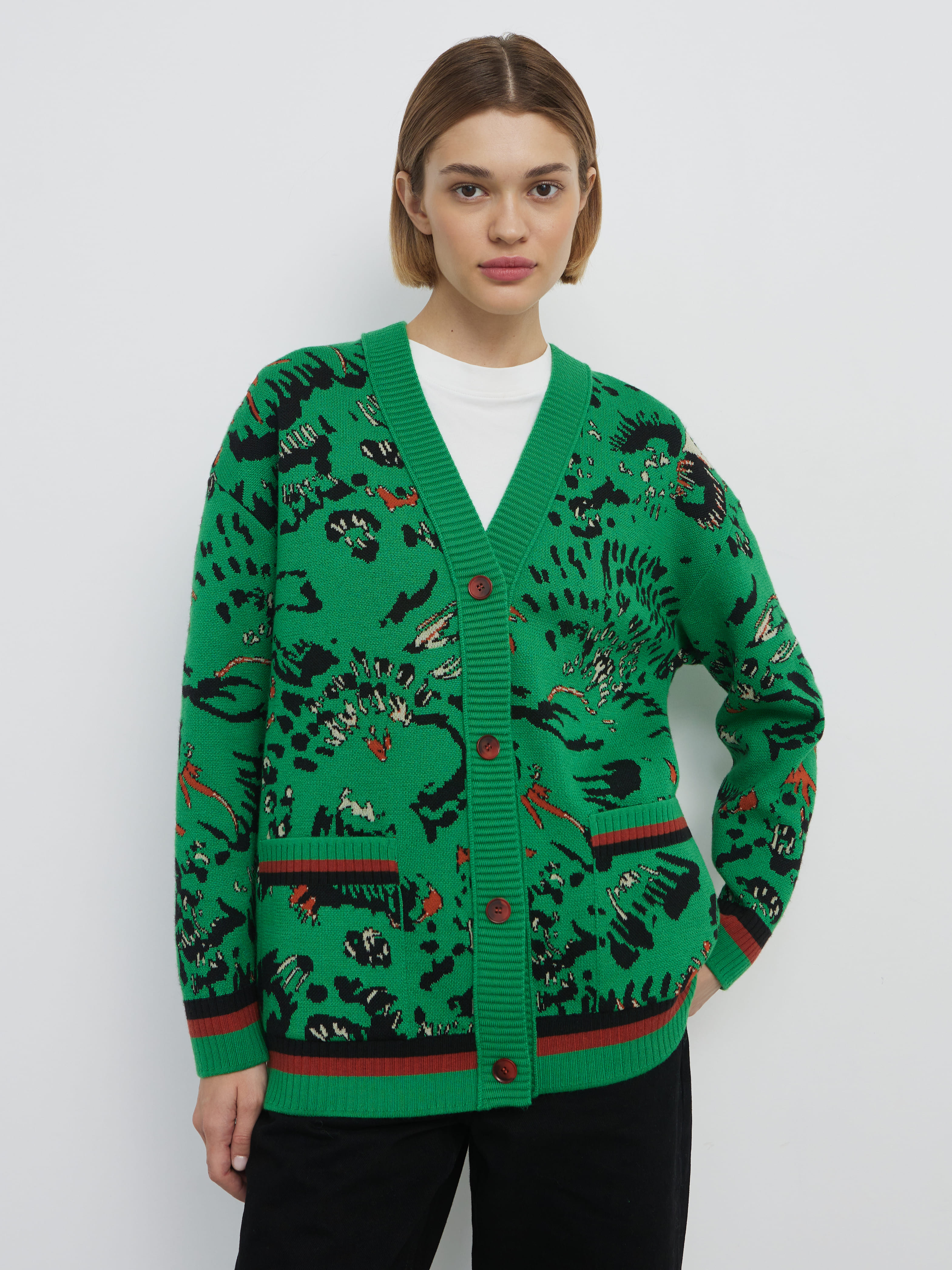 Уютный объемный кардиган, вдохновленный пожеланиями поклонниц бренда. Мы создали его как более теплую альтернативу топовой модели Гарда. Для этого вискозу в составе трикотажа заменили тонковолокнистой мериносовой шерстью, которую, для оптимального баланса, усилили легким акрилом. Авторский принт, ставший визиткой бренда, прекрасно впишется в осенние прогулки и зимние праздники в семейном кругу.