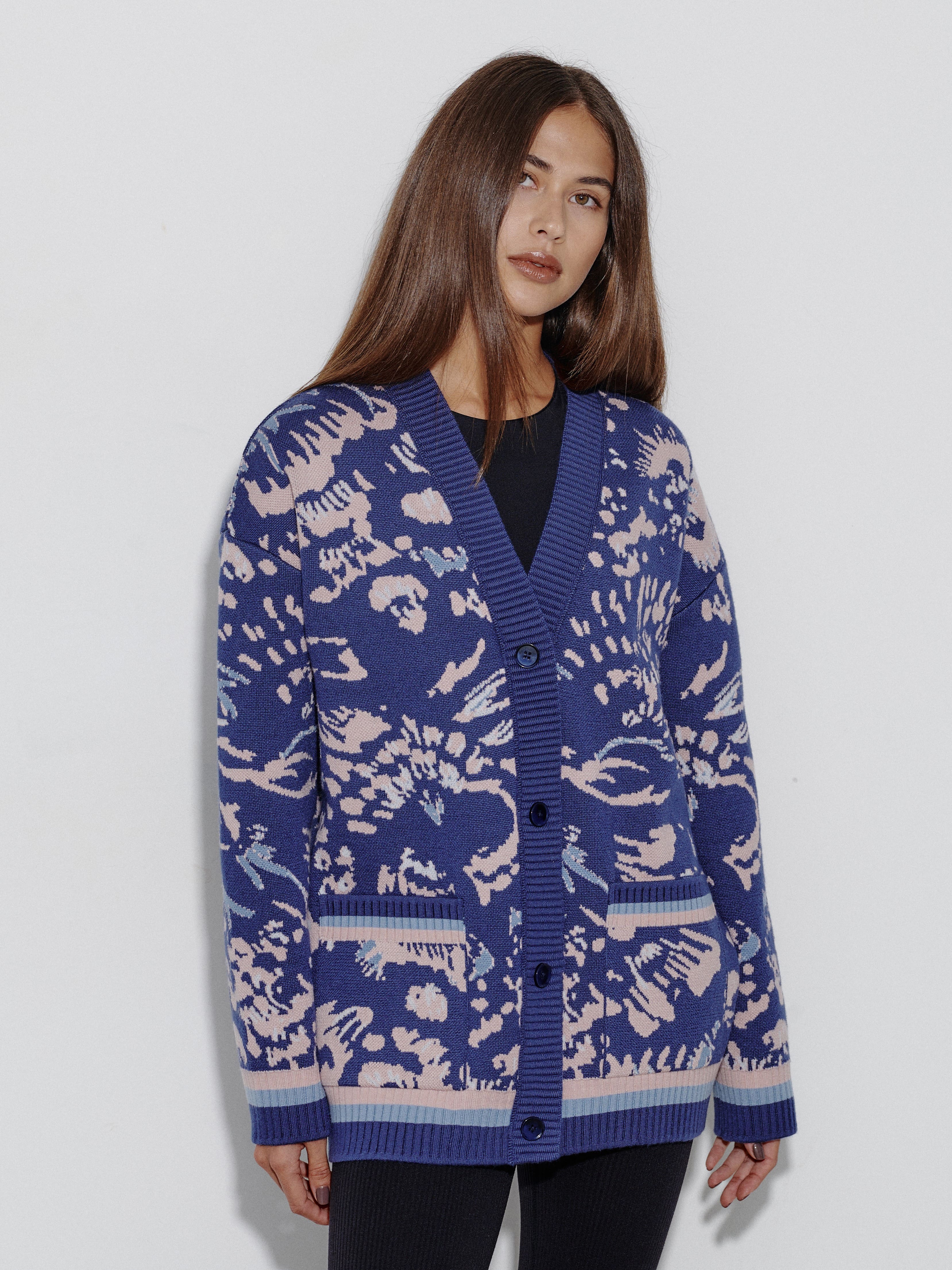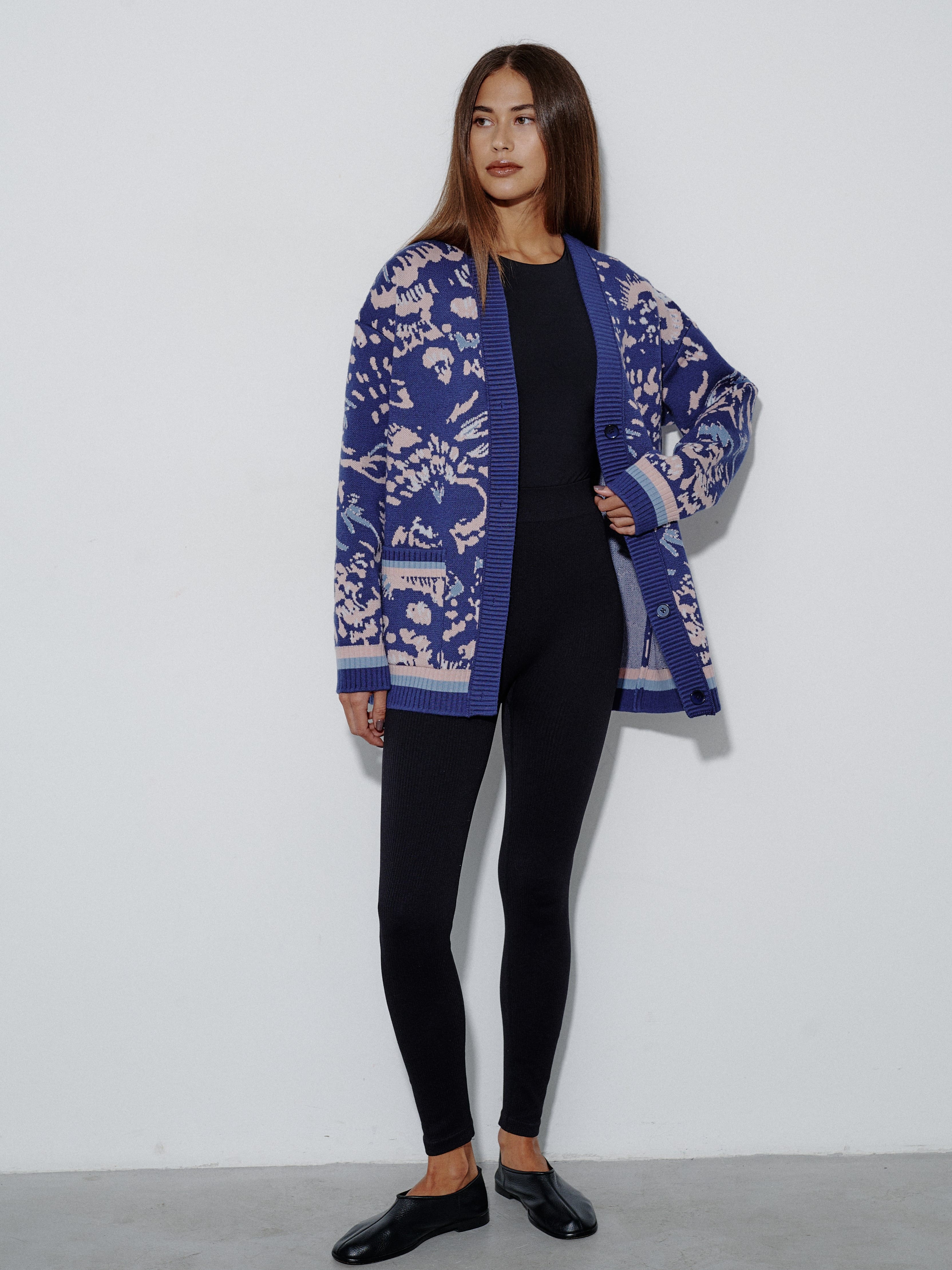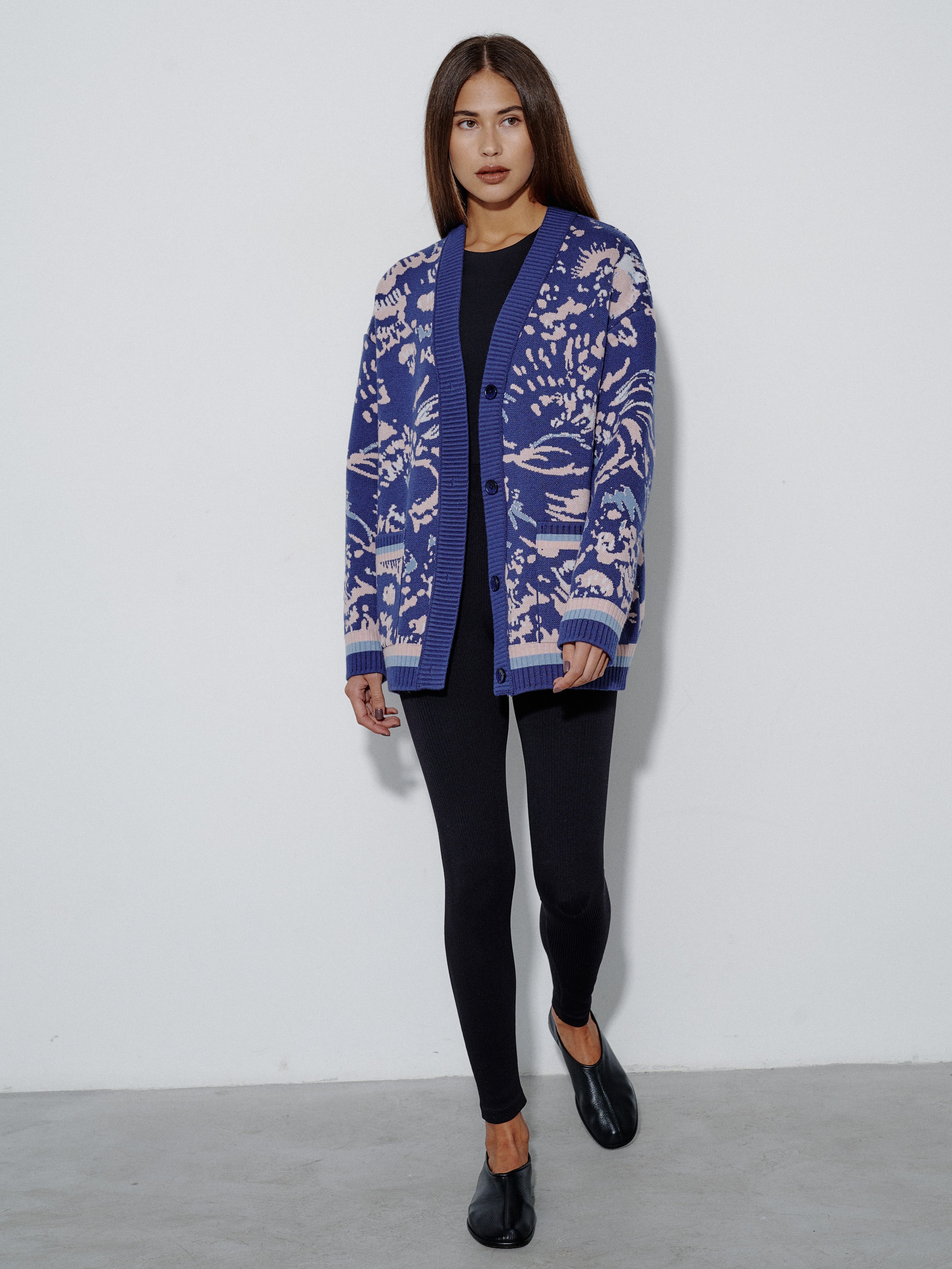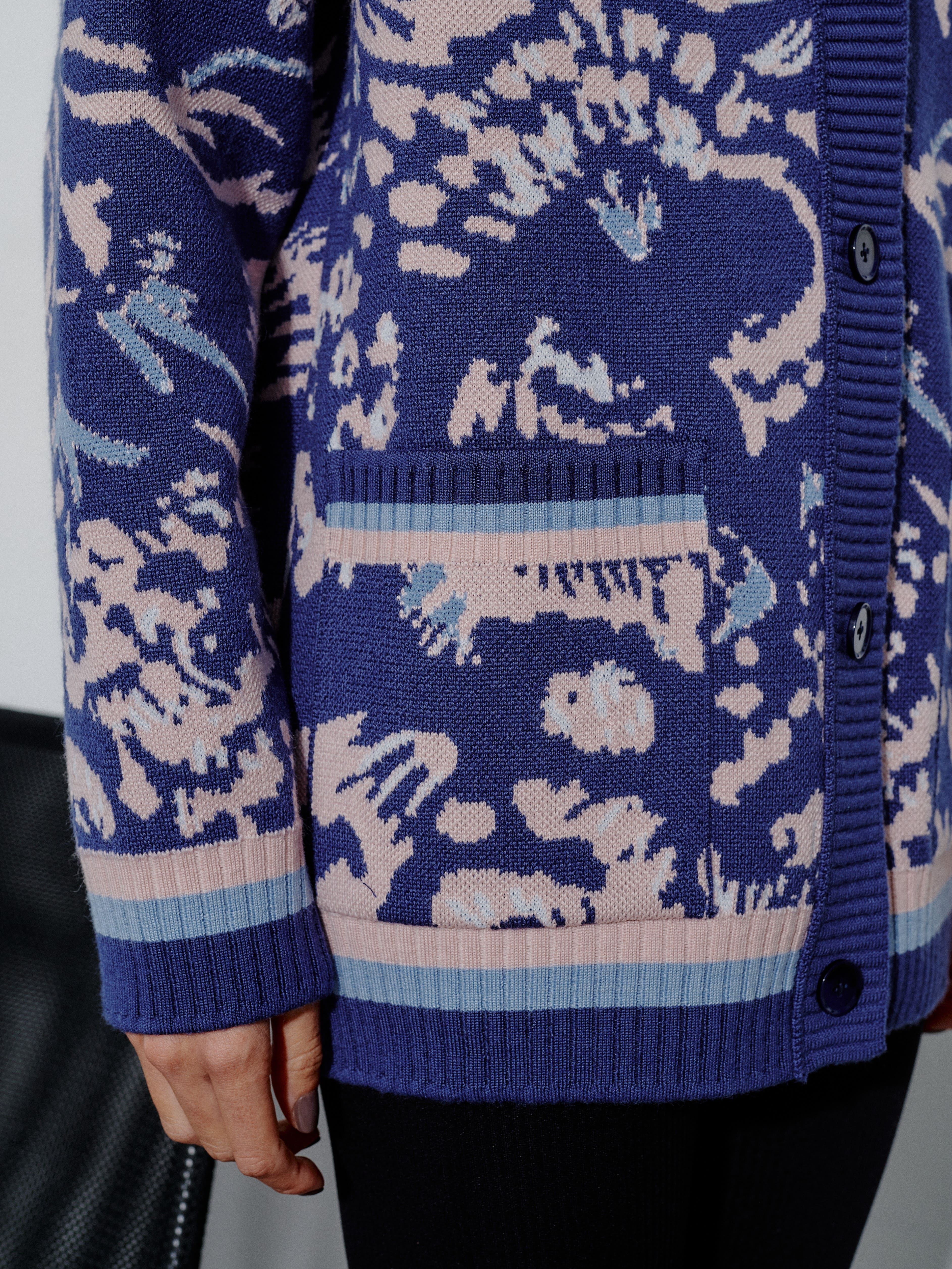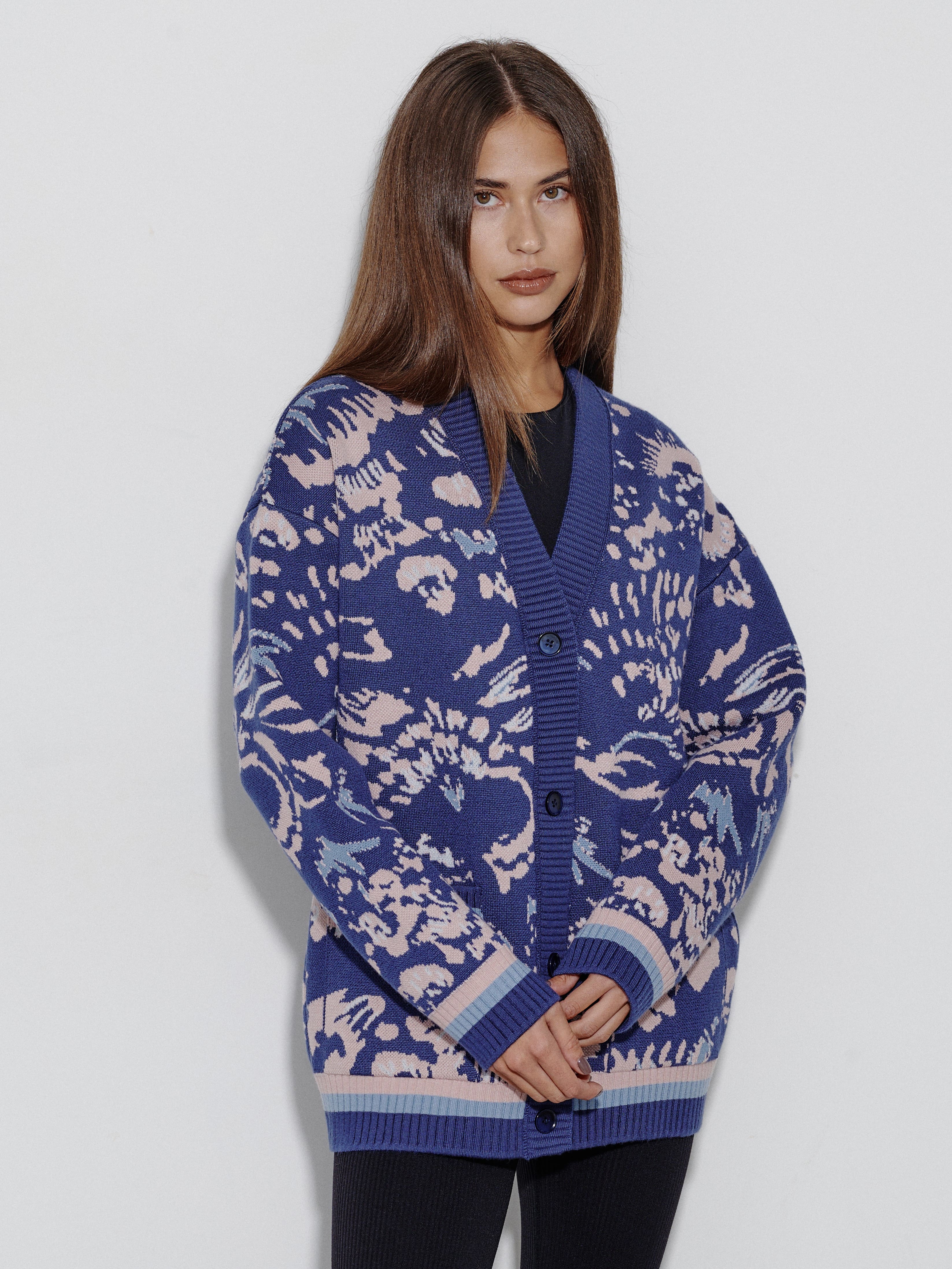 Уютный объемный кардиган, вдохновленный пожеланиями поклонниц бренда. Мы создали его как более теплую альтернативу топовой модели Гарда. Для этого вискозу в составе трикотажа заменили тонковолокнистой мериносовой шерстью, которую, для оптимального баланса, усилили легким акрилом. Авторский принт, ставший визиткой бренда, прекрасно впишется в осенние прогулки и зимние праздники в семейном кругу.