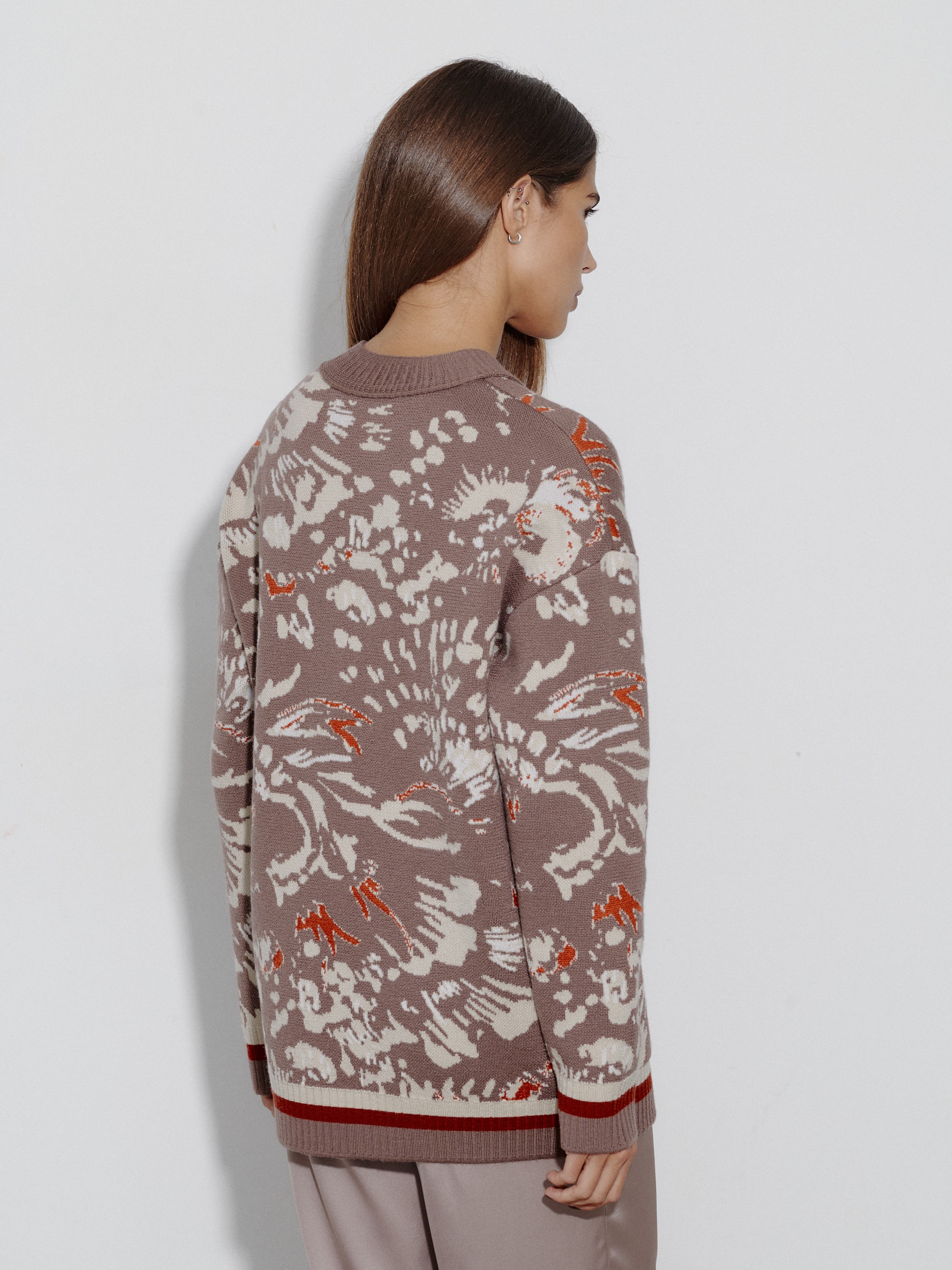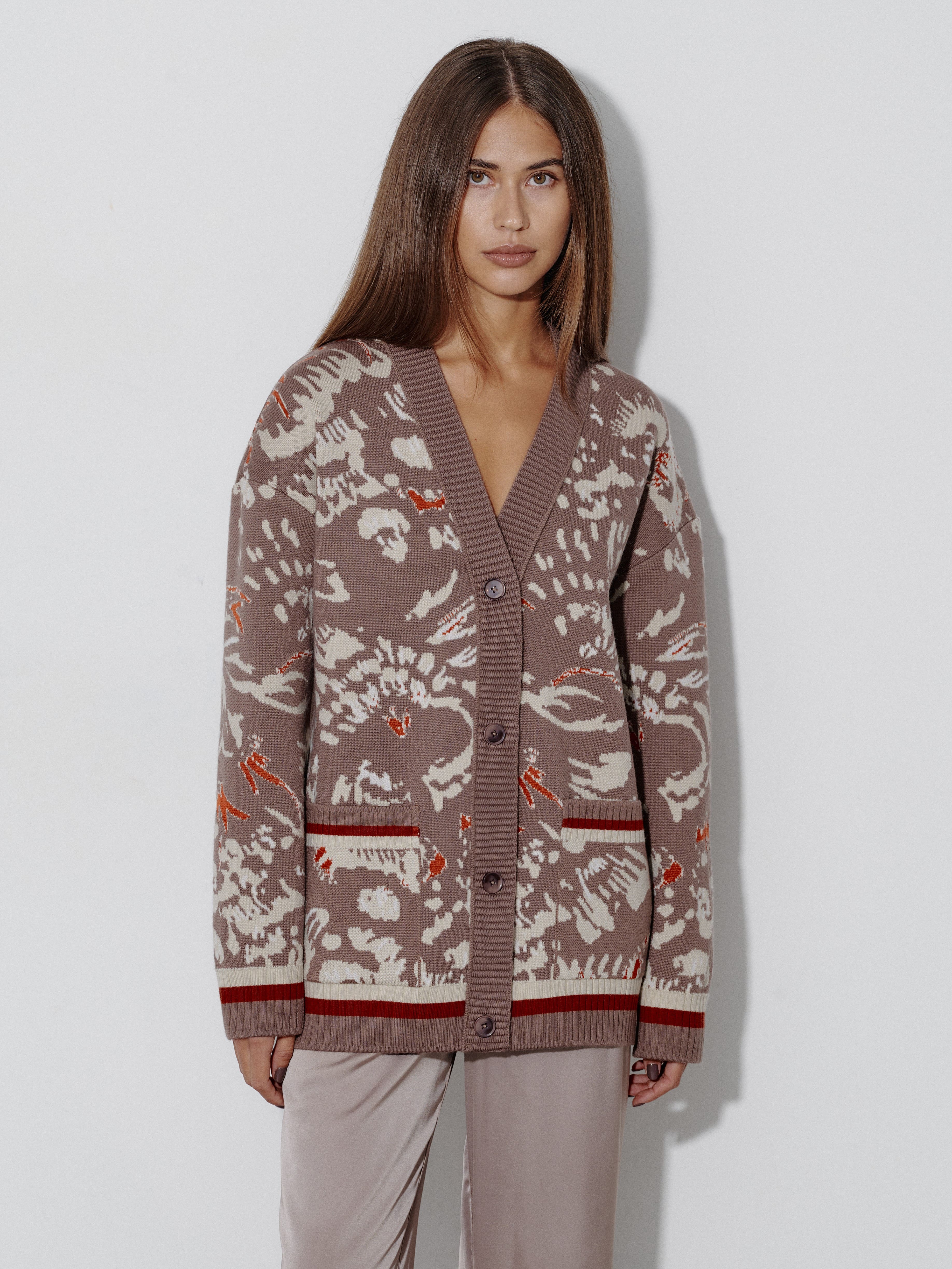Кардиган из шерсти мериноса с авторским принтом Горизонт