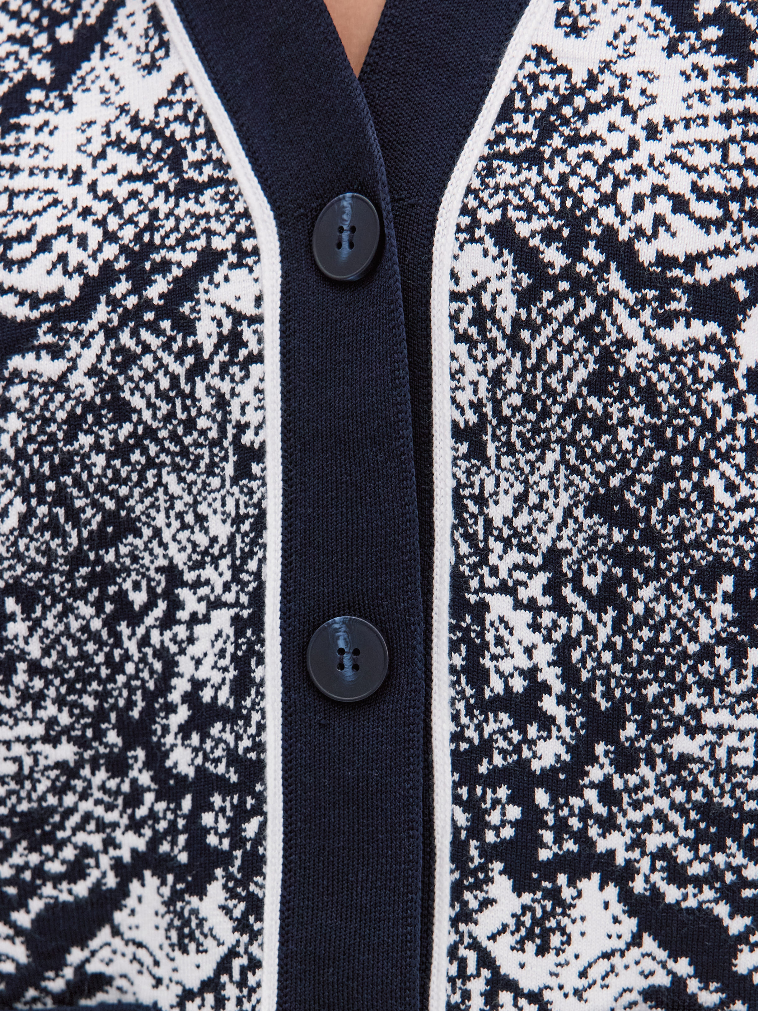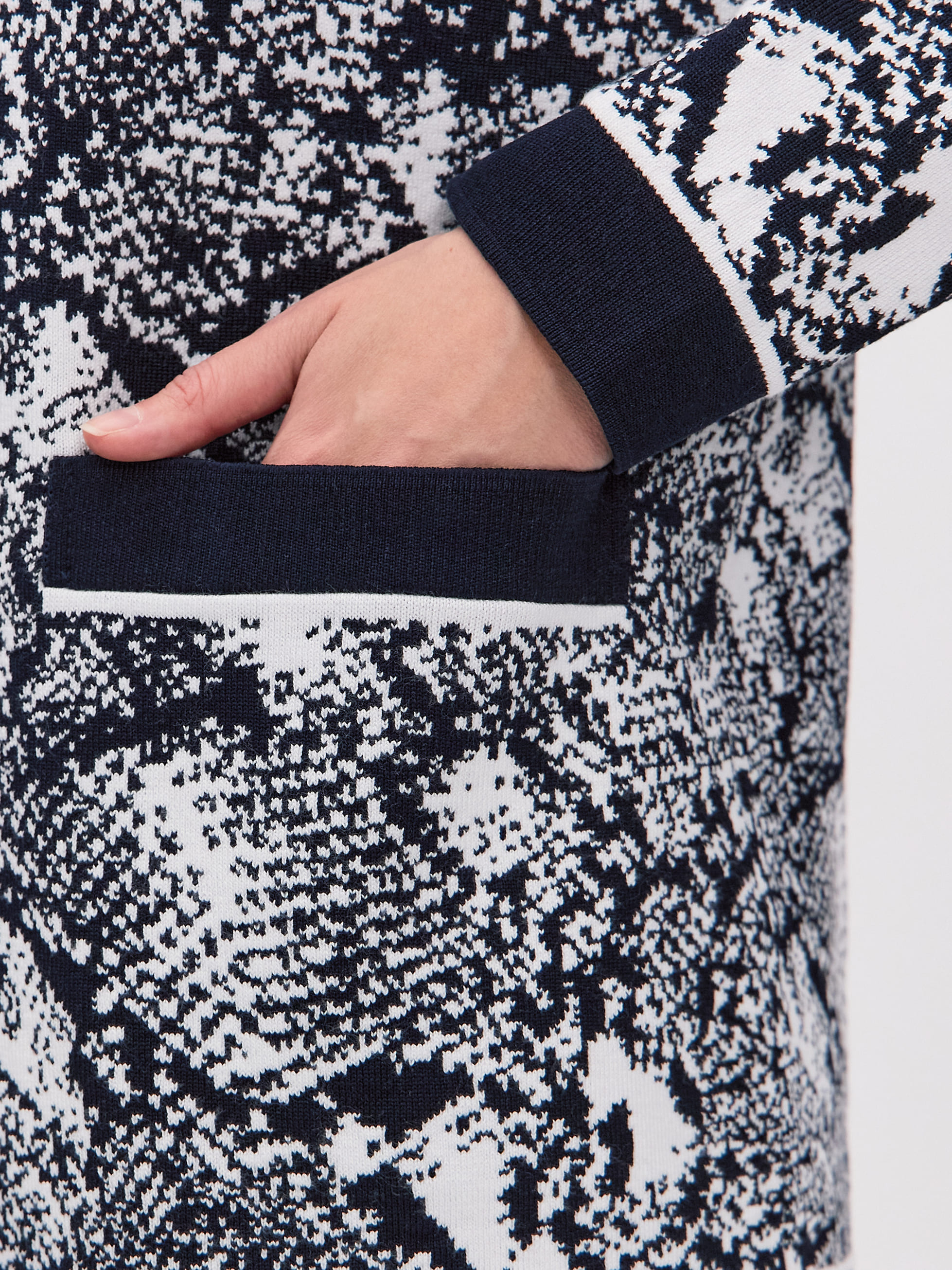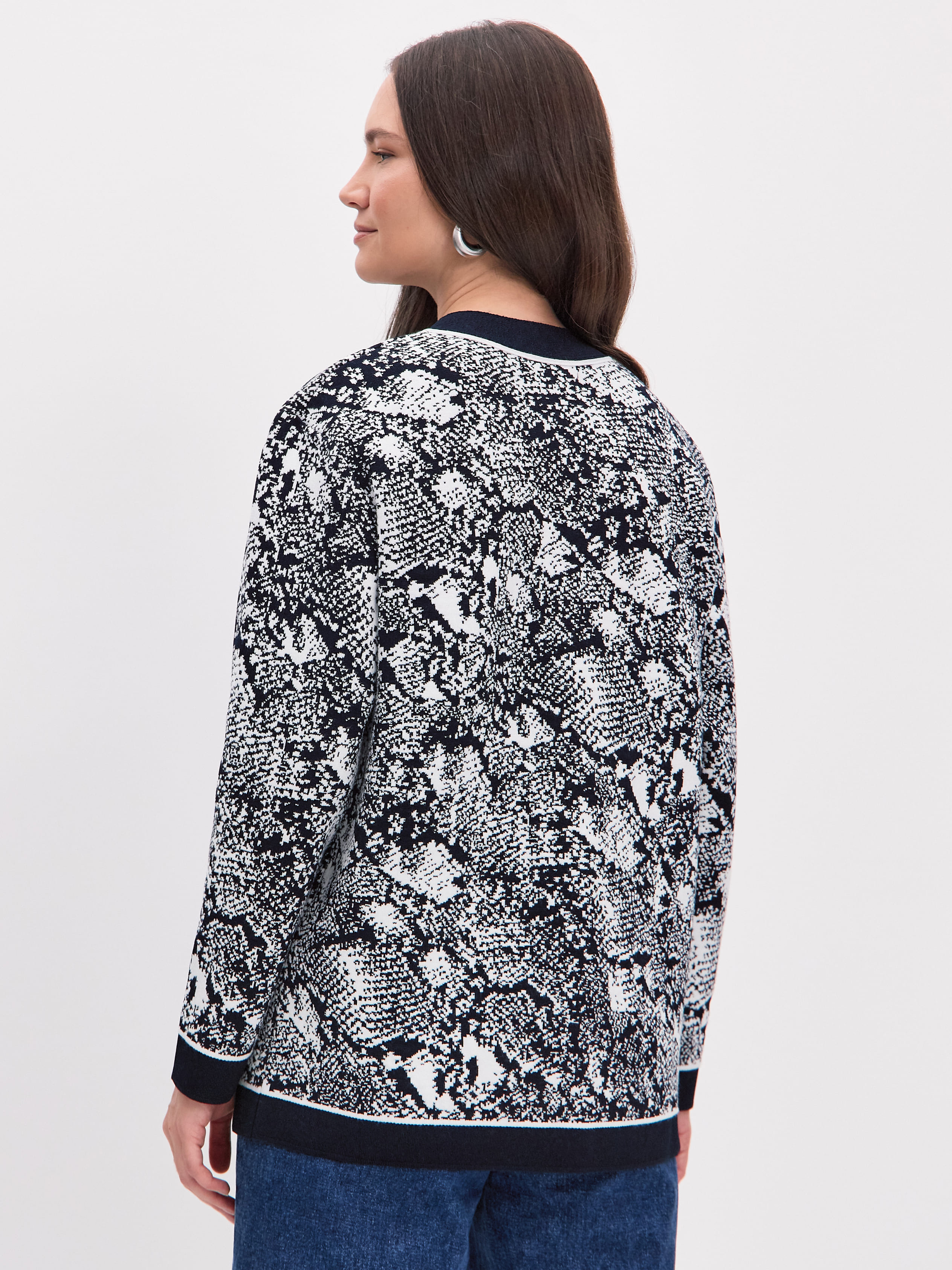 Стильный кардиган из шелковистой, приятной телу вискозы создавался, чтобы поддержать тренд на тактильность. В итоге трикотаж приобрел оптимальную плотность, но остался невероятно комфортным на ощупь. Удлиненная модель дополнительно усилена сложным принтом, так что станет ярким акцентом в любом повседневном образе.