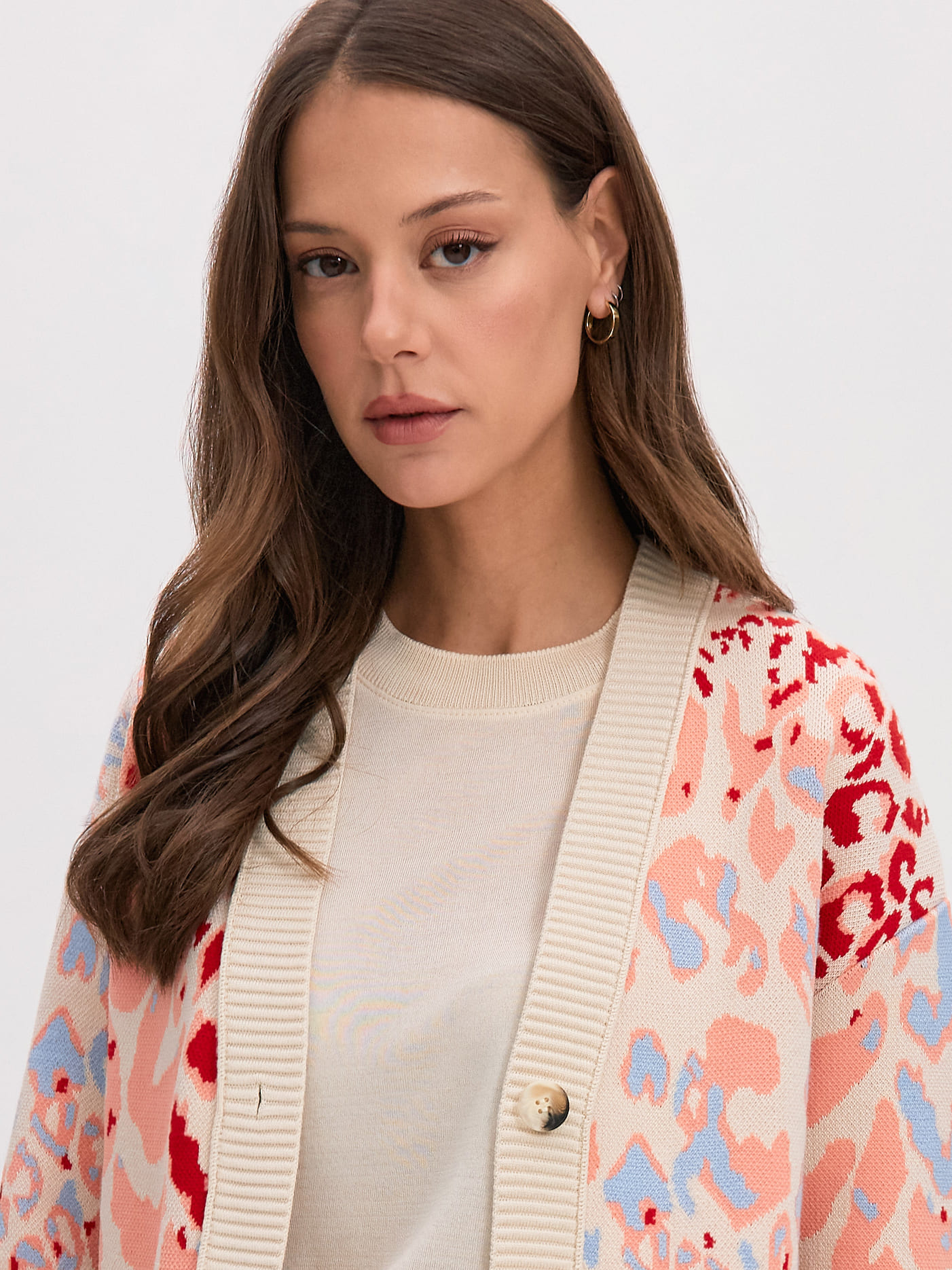 Благородный оверсайз кардиган с абстрактным принтом, вошедший в топовую пятерку самых продаваемых вещей бренда. Мы рекомендуем его в качестве второго слоя на лето и позднюю весну, поскольку модель на 90% состоит из нежной вискозы, отвечающей за охлаждающий эффект и дыхание трикотажа. Кардиган выпущен в самых сочных и нежных оттенках, чтобы вы легко нашли среди них свою.