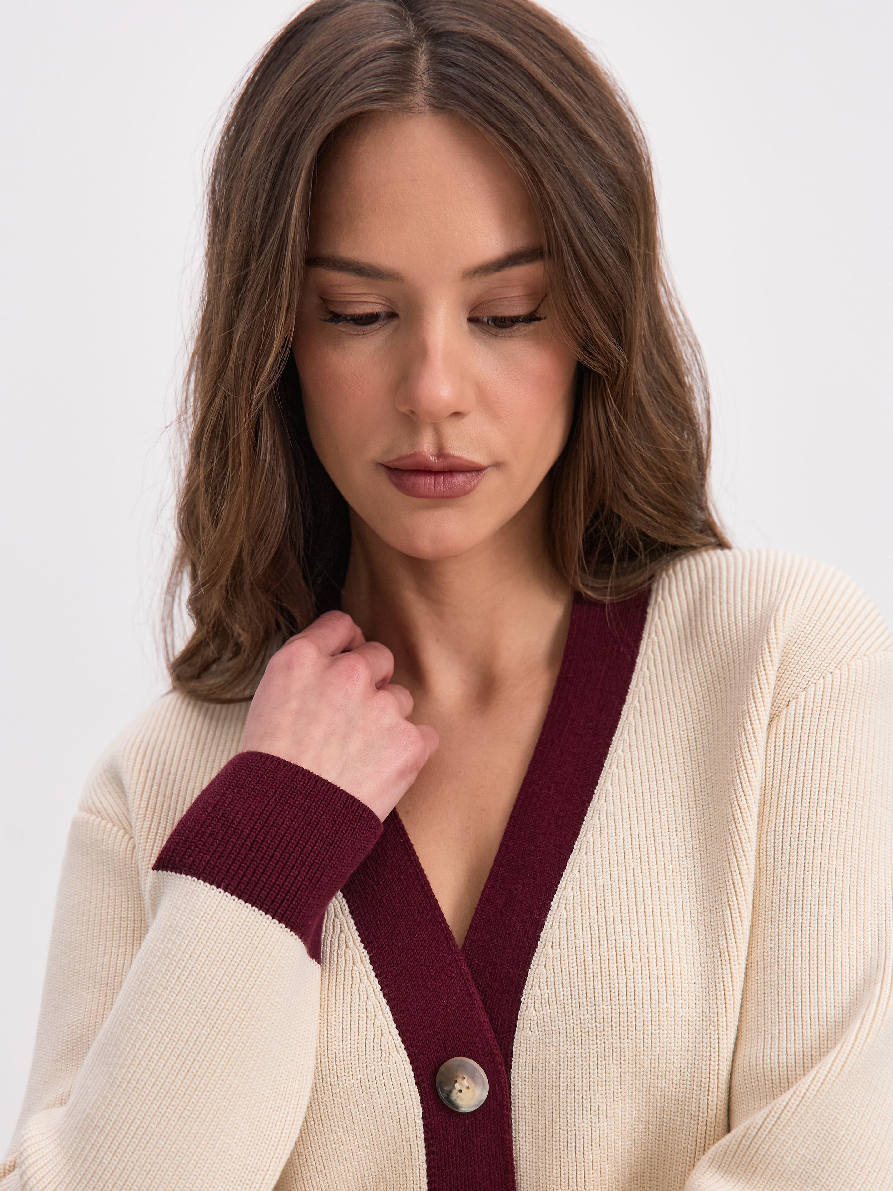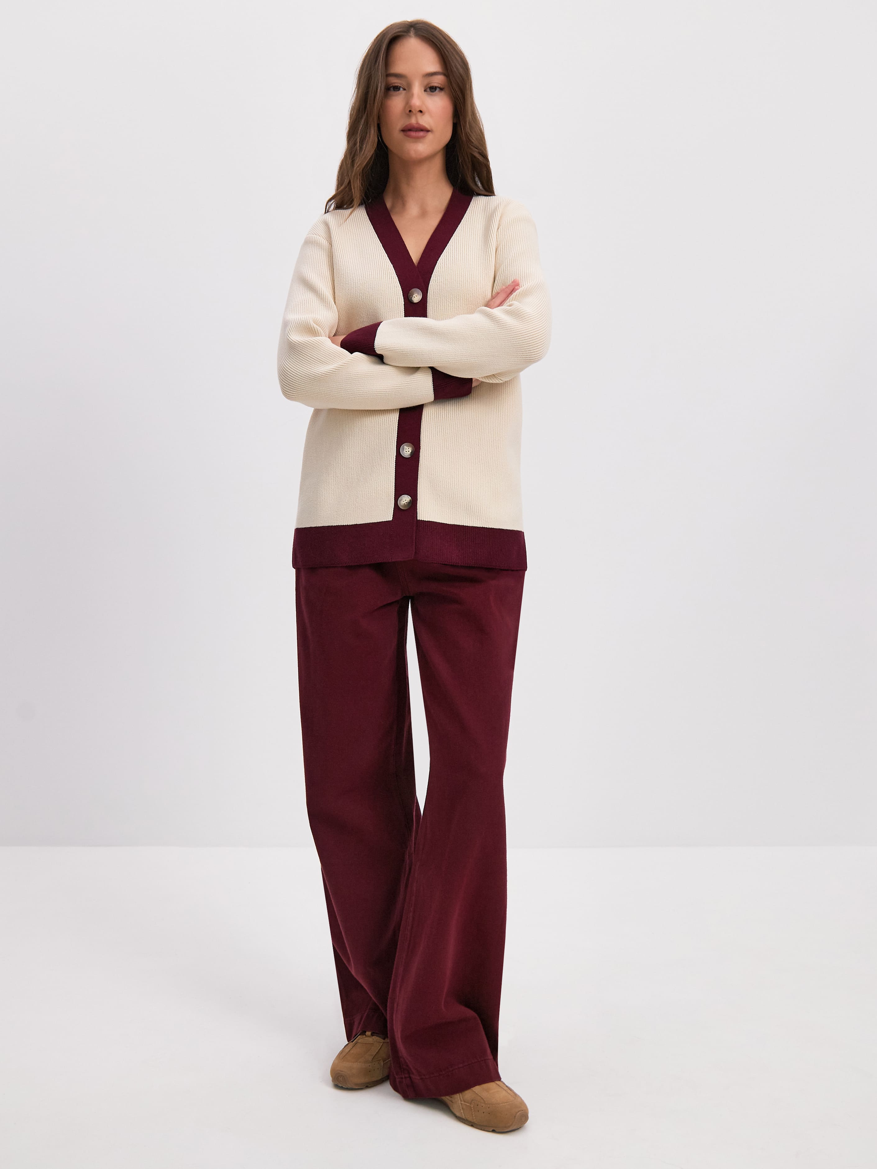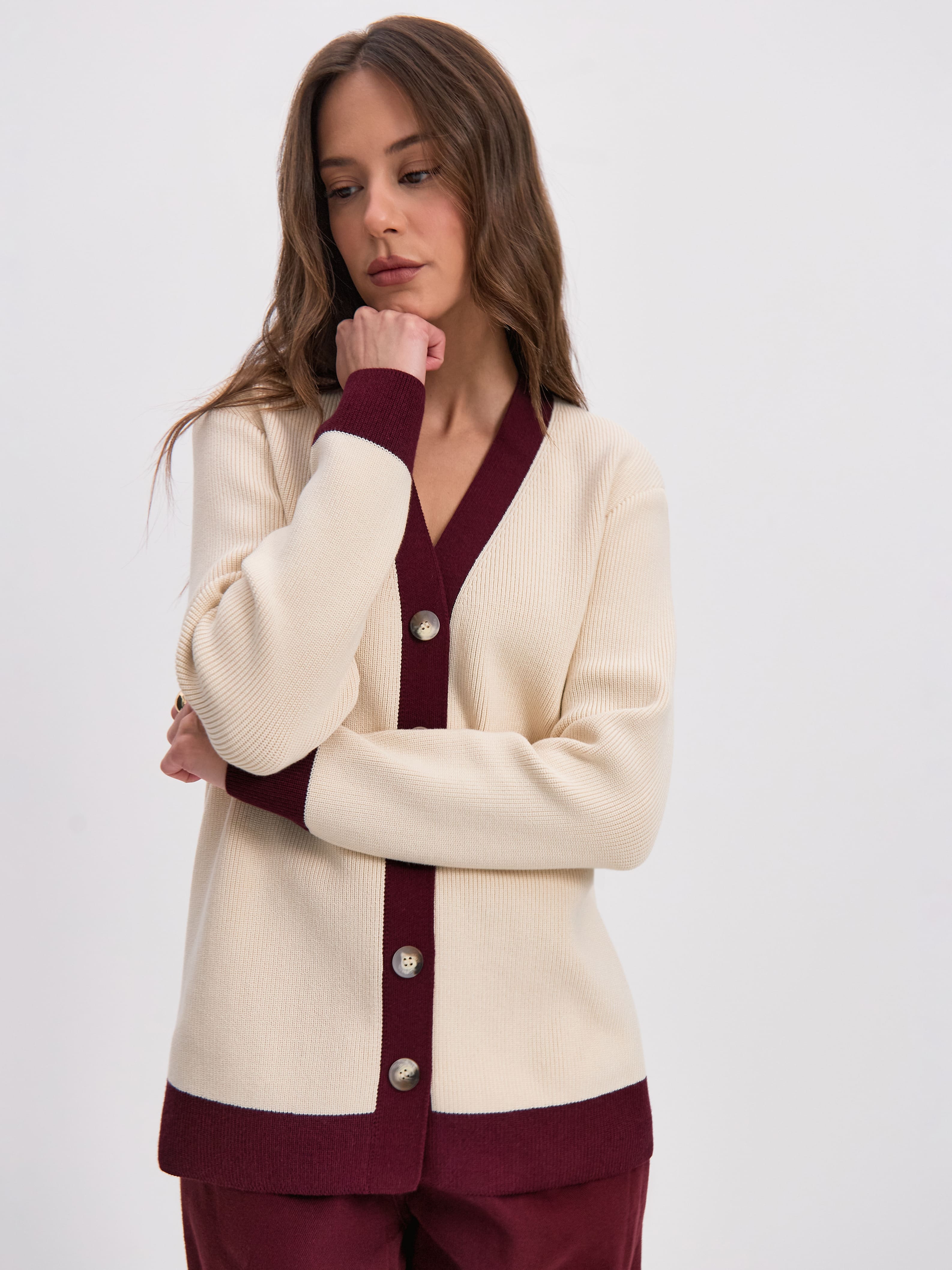 Родос кардиган трикотажный (кремовый/бордо, 44-46)